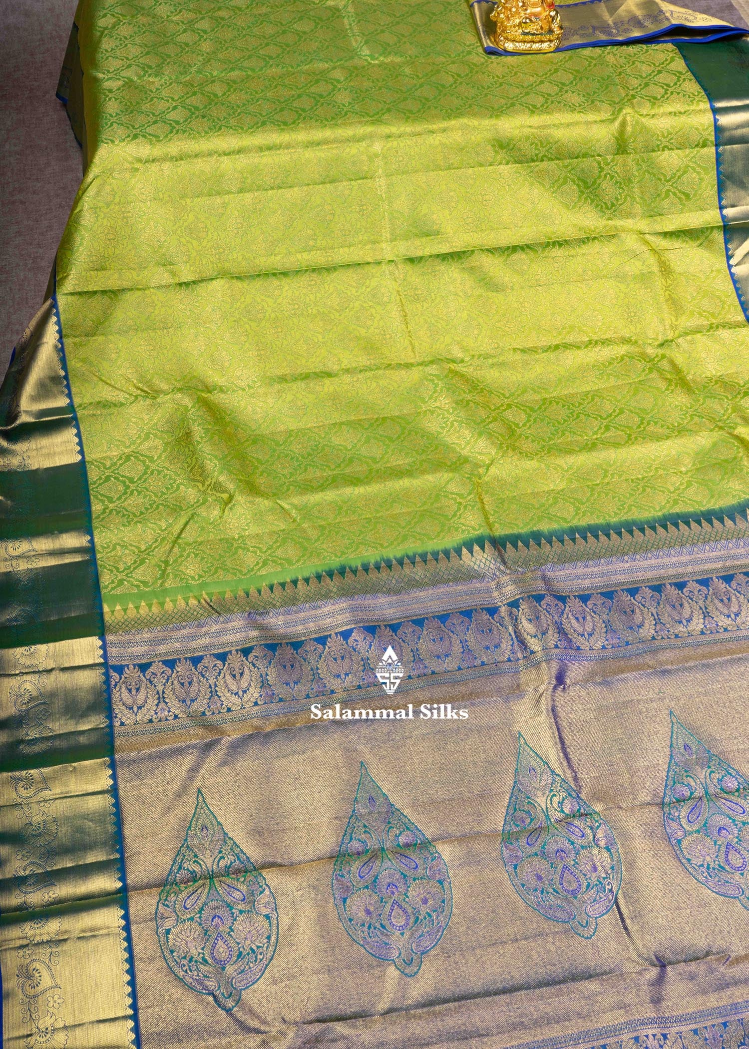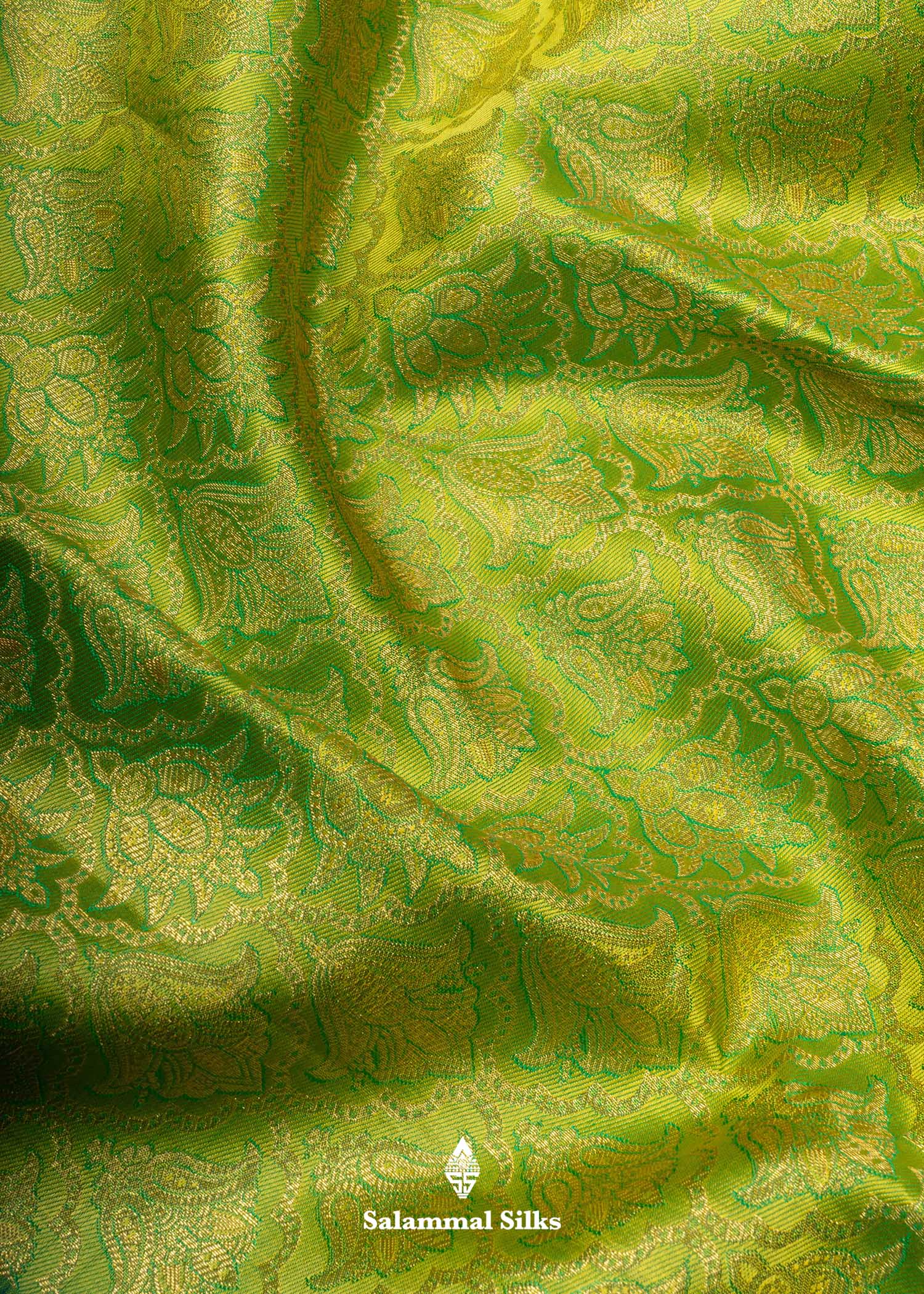 Kanjivaram Parrot Green Silk Saree With Grand Blouse