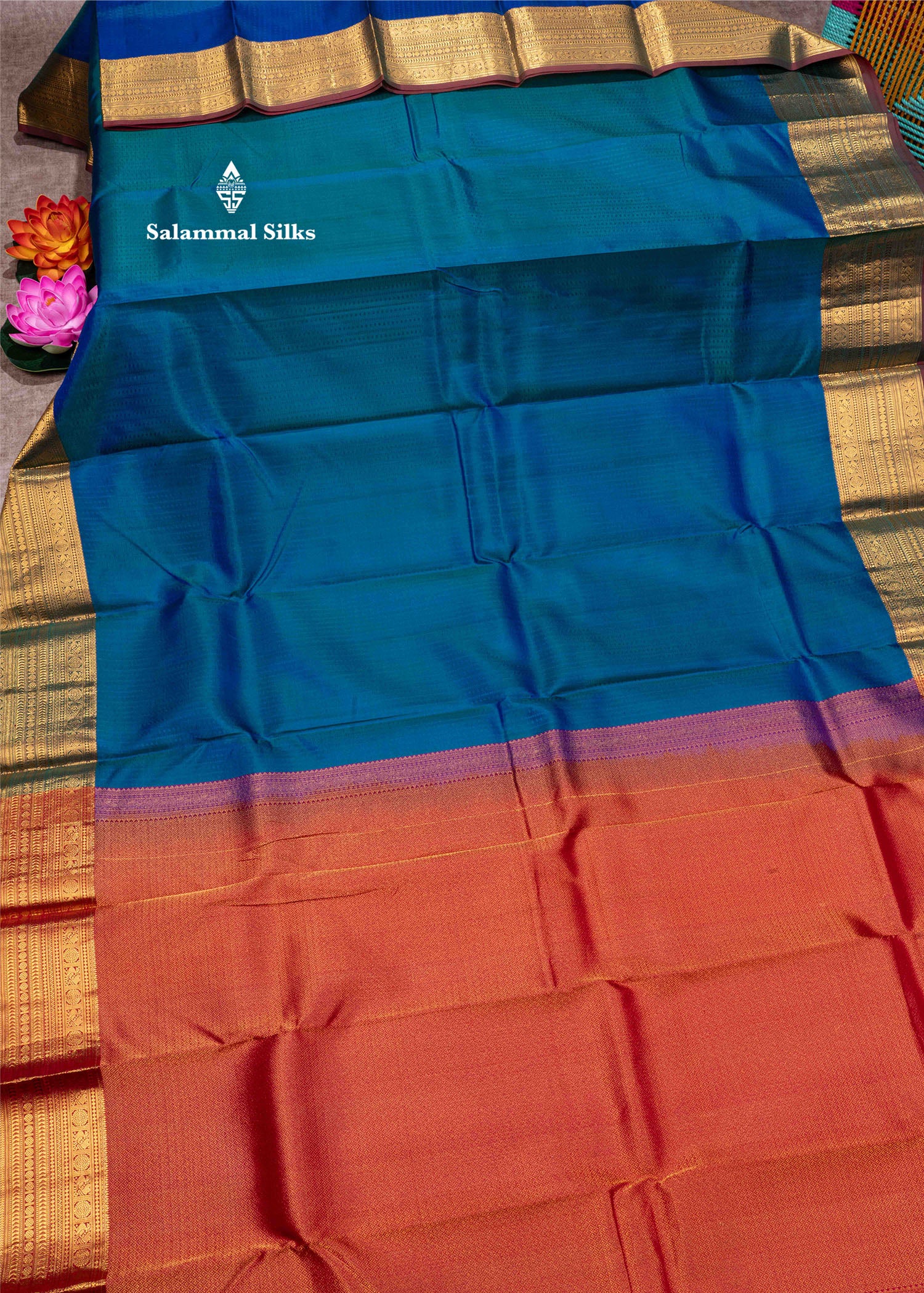 Salammal is known for its handloom sarees. In some sarees, there is cross-weaving between the body and the pallu, which is a sign of pure handloom sarees. This can be seen in Kanchipuram embossed sarees.