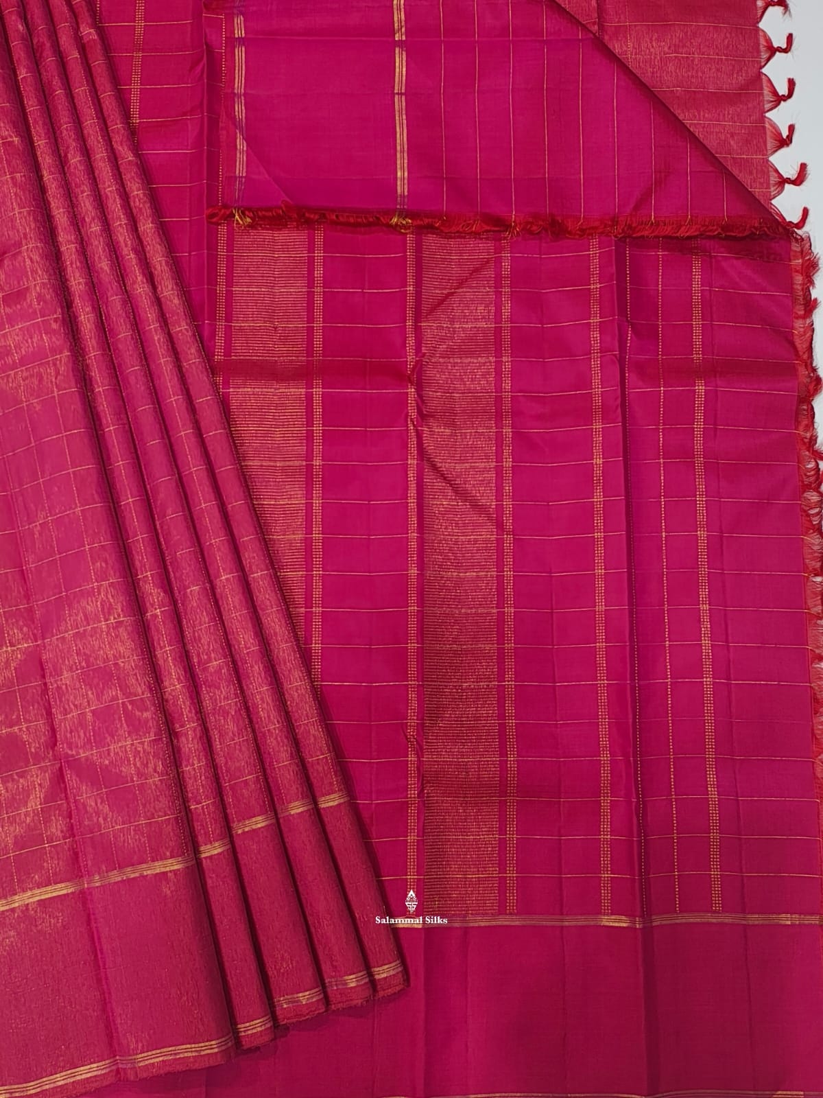 Salammal is known for its handloom sarees. In some sarees, there is cross-weaving between the body and the pallu, which is a sign of pure handloom sarees. This can be seen in Kanchipuram embossed sarees.