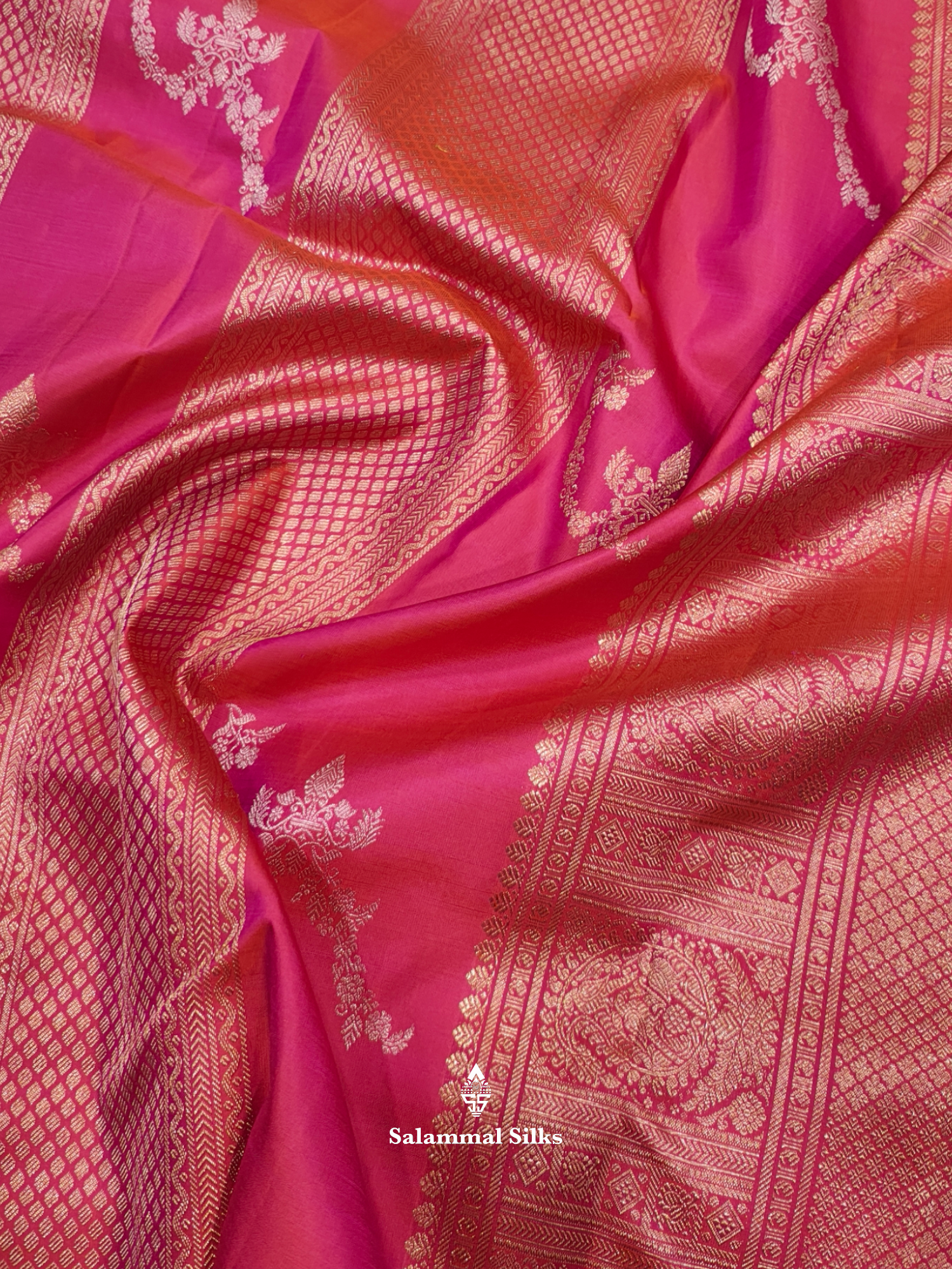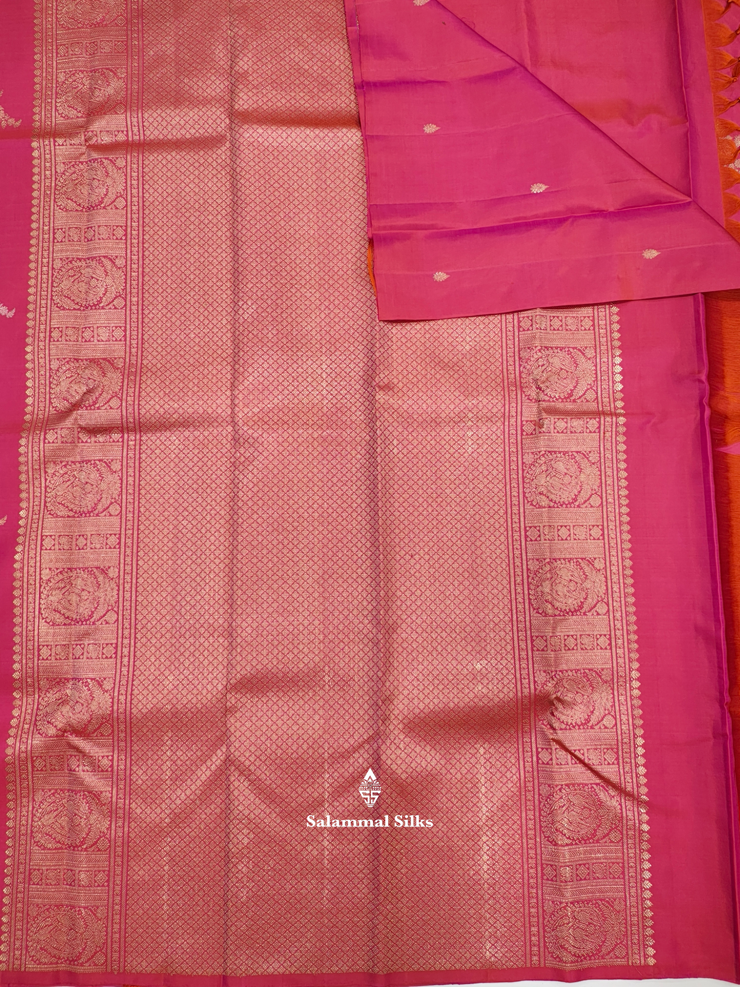 Kanjivaram Pinkish Orange Fancy Pure Silk Saree Without Border