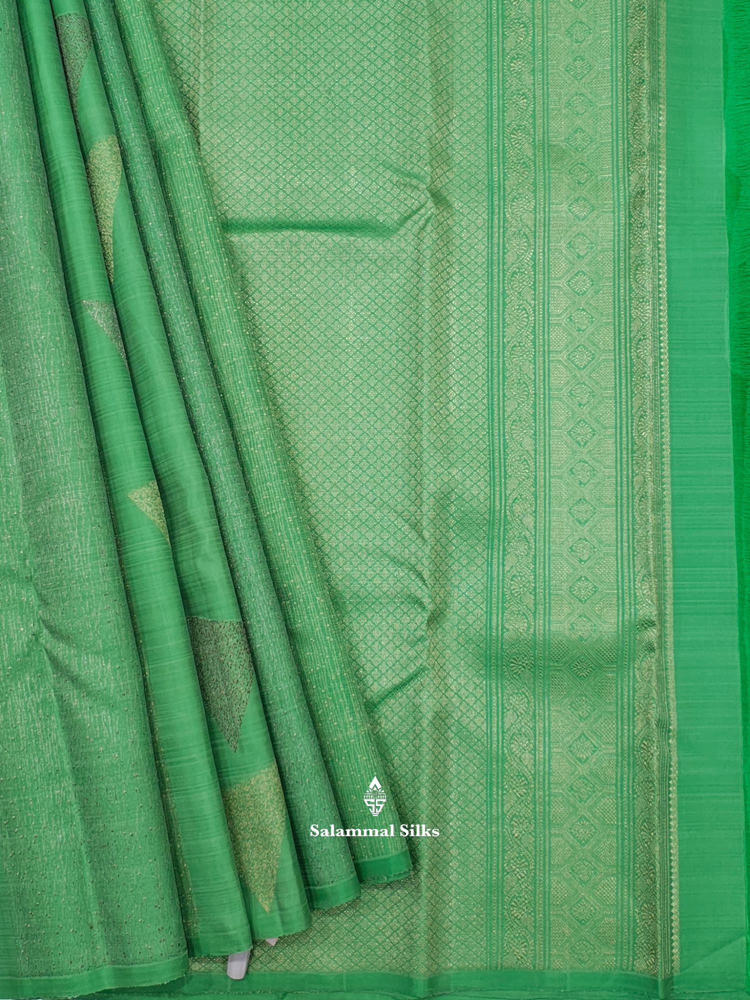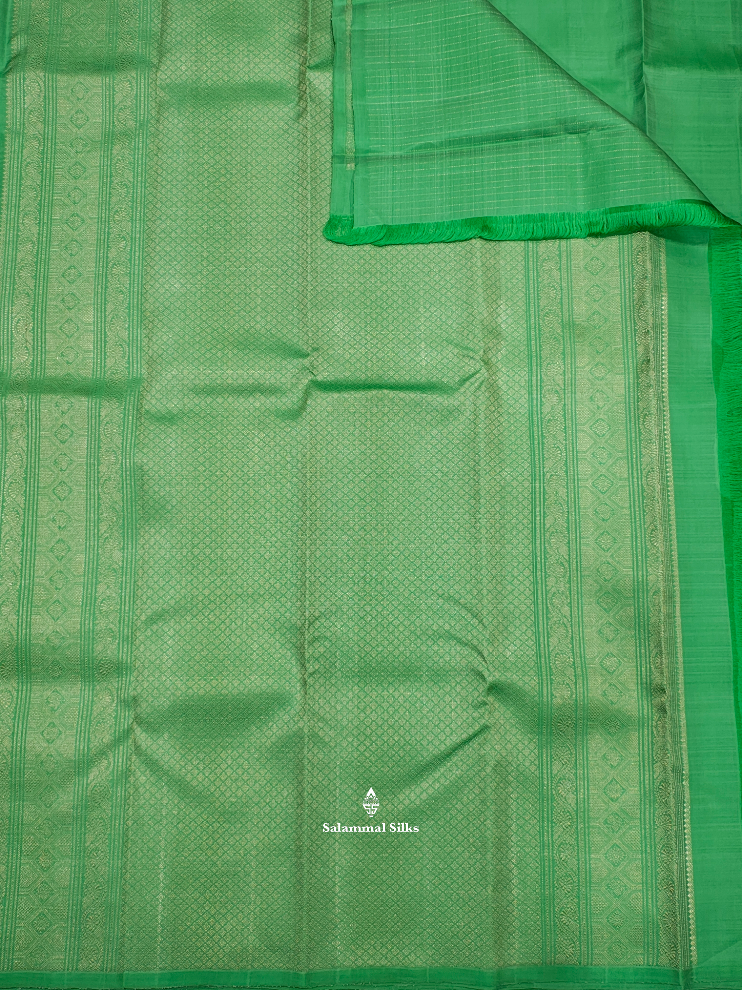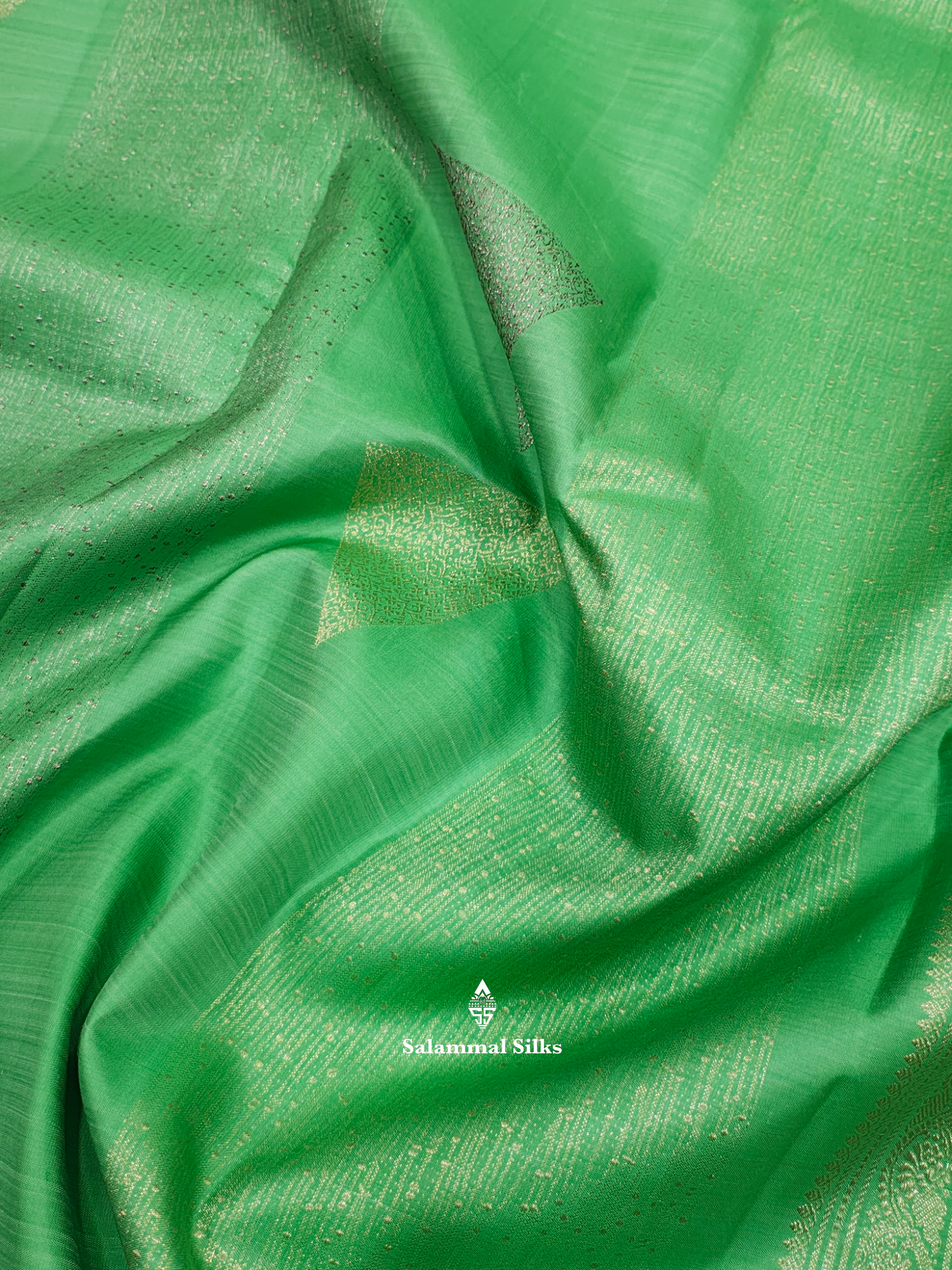 Kanjivaram Pista Green Fancy Silk Saree With Silver Zari Stripes Blouse