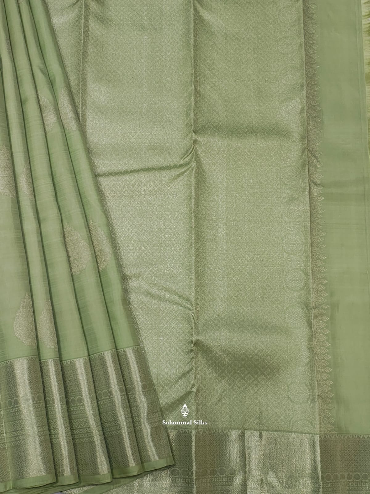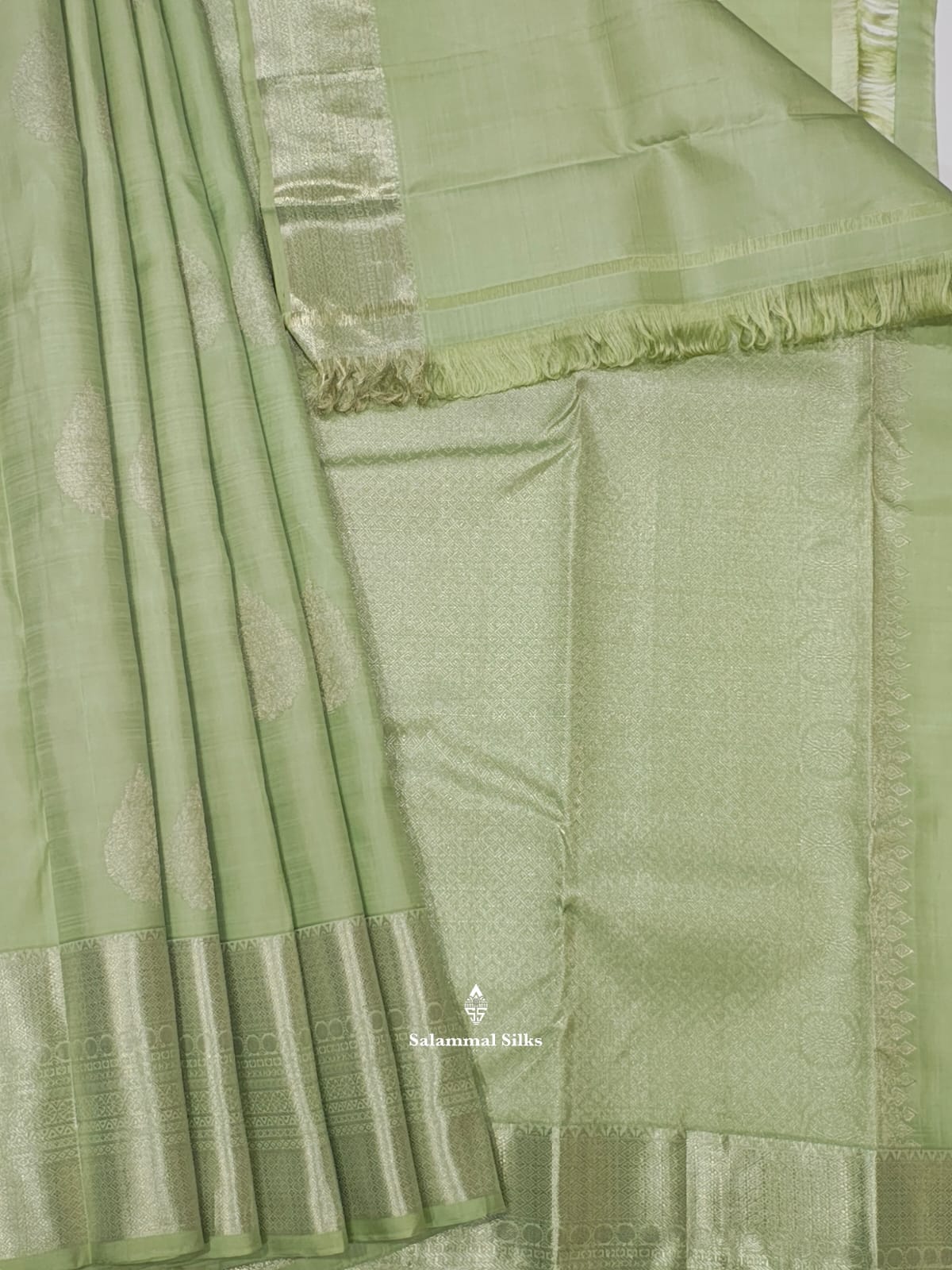 Kanjivaram Pista Green Pure Silk Saree With Blouse