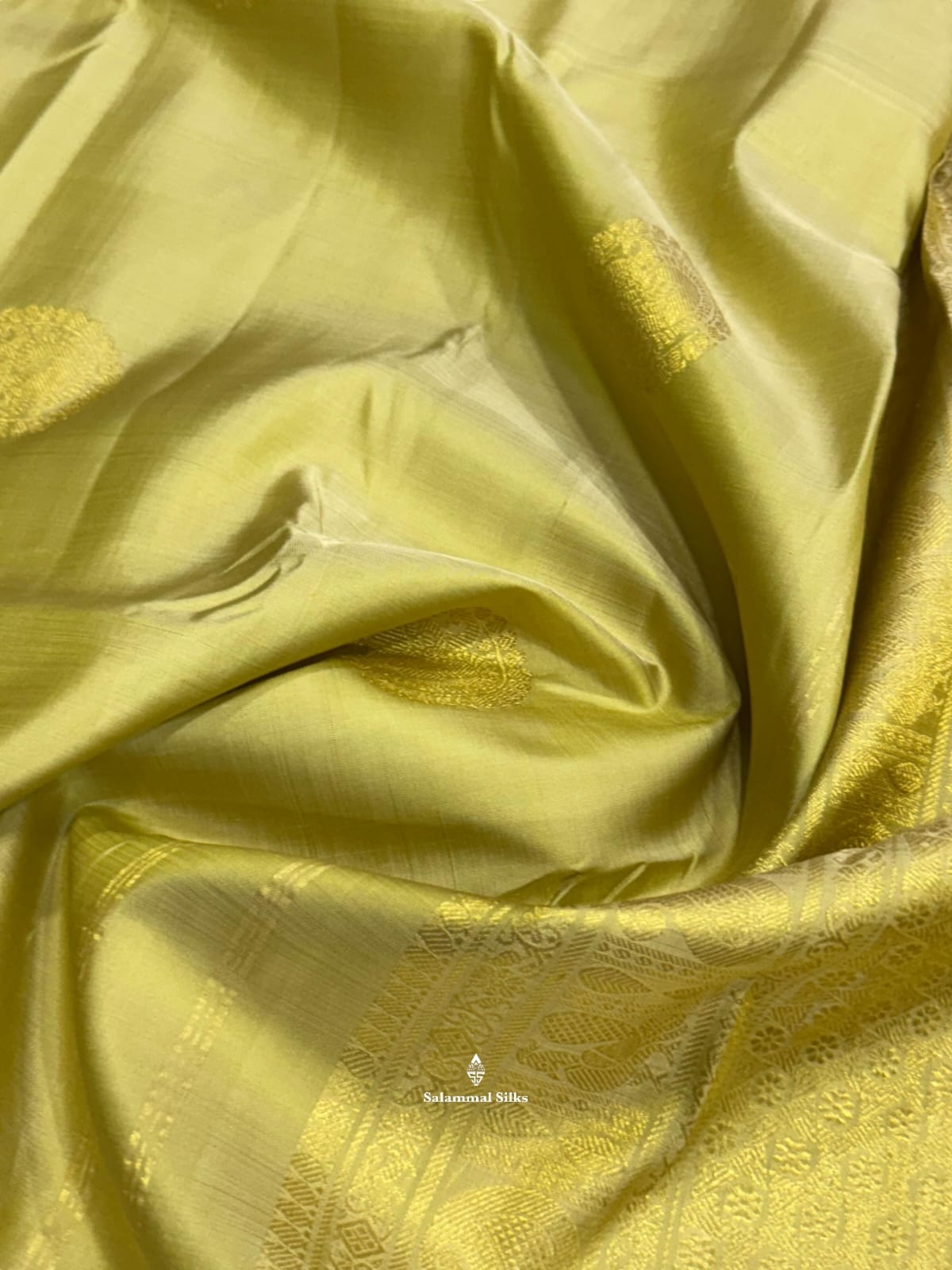 Kanjivaram Pista Green Pure Silk Saree With Gold Zari Border