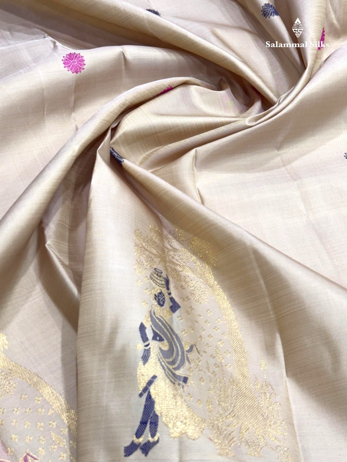 Salammal is known for its handloom sarees. In some sarees, there is cross-weaving between the body and the pallu, which is a sign of pure handloom sarees. This can be seen in Kanchipuram embossed sarees.