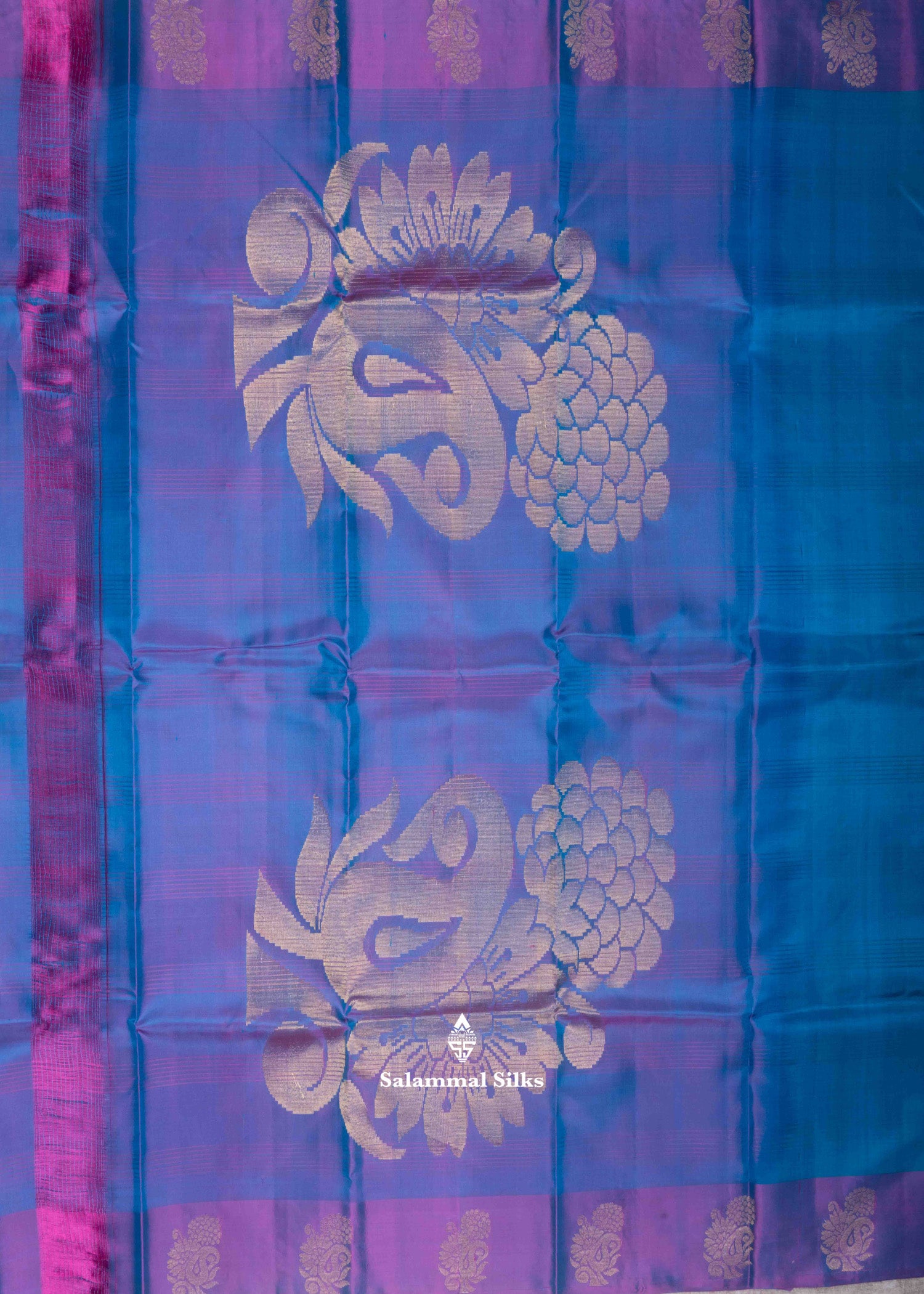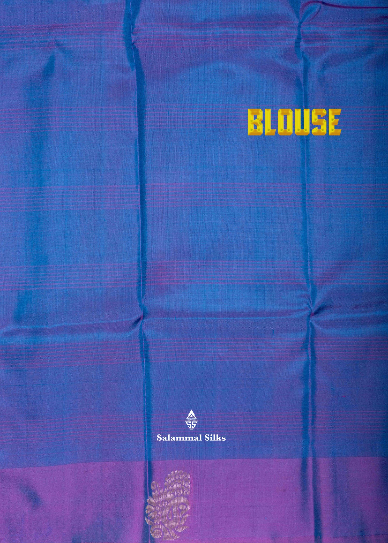 Kanjivaram Pure Silk Saree Blue With Pink Shade Blouse