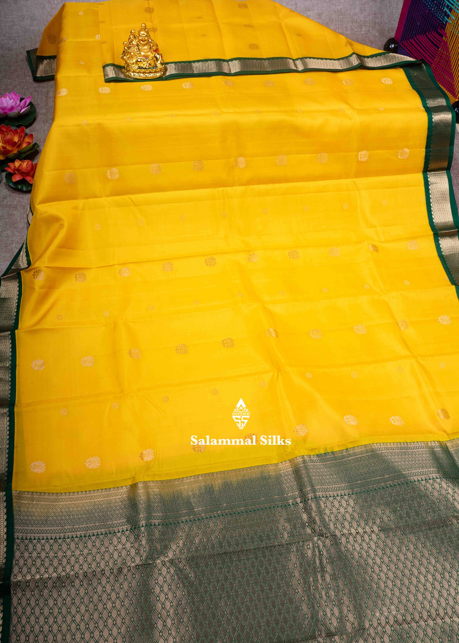 Salammal is known for its handloom sarees. In some sarees, there is cross-weaving between the body and the pallu, which is a sign of pure handloom sarees. This can be seen in Kanchipuram embossed sarees.