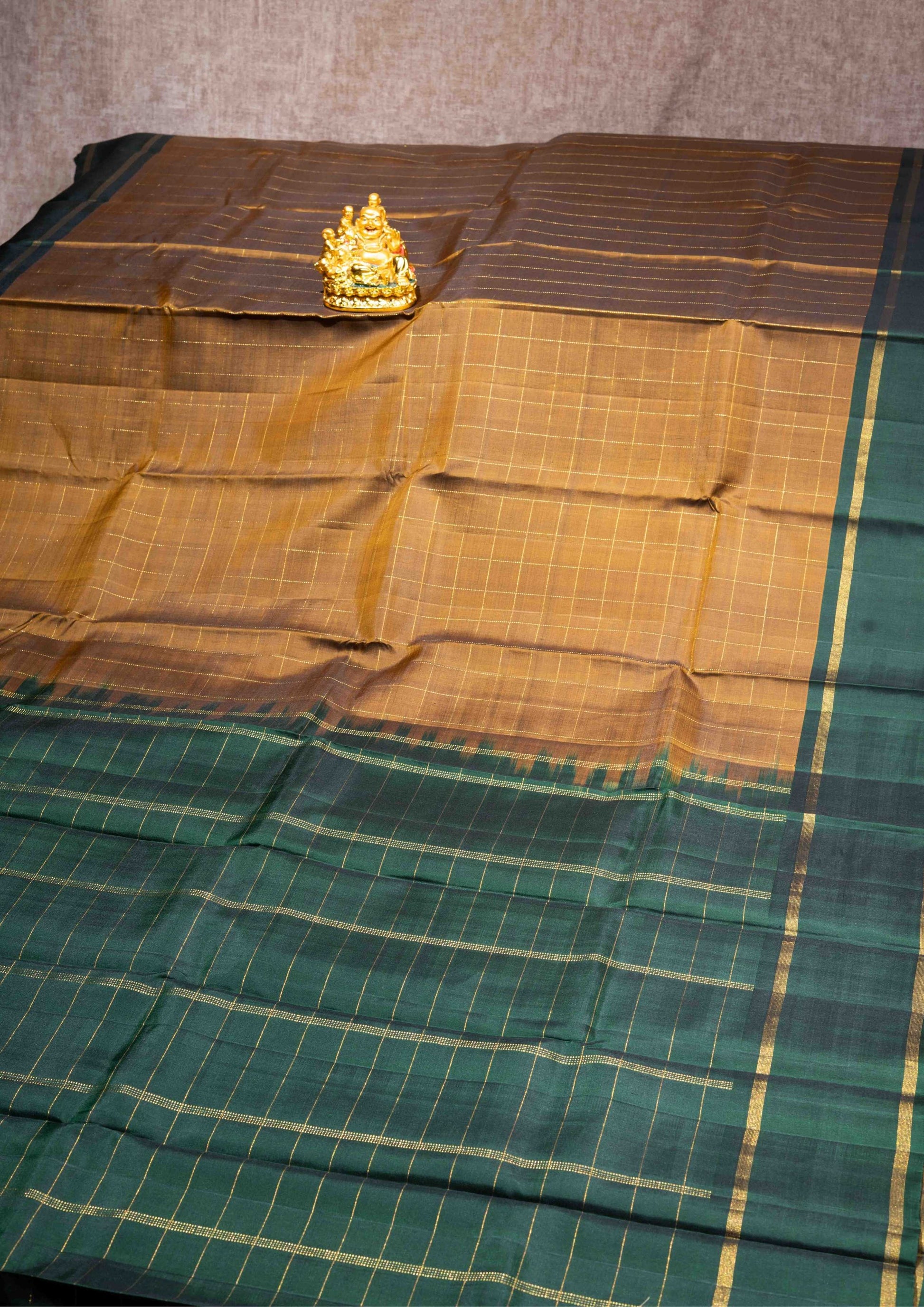 Kanjivaram Pure Silk Saree Olive Mustard Yellow With Bottle Green Blouse