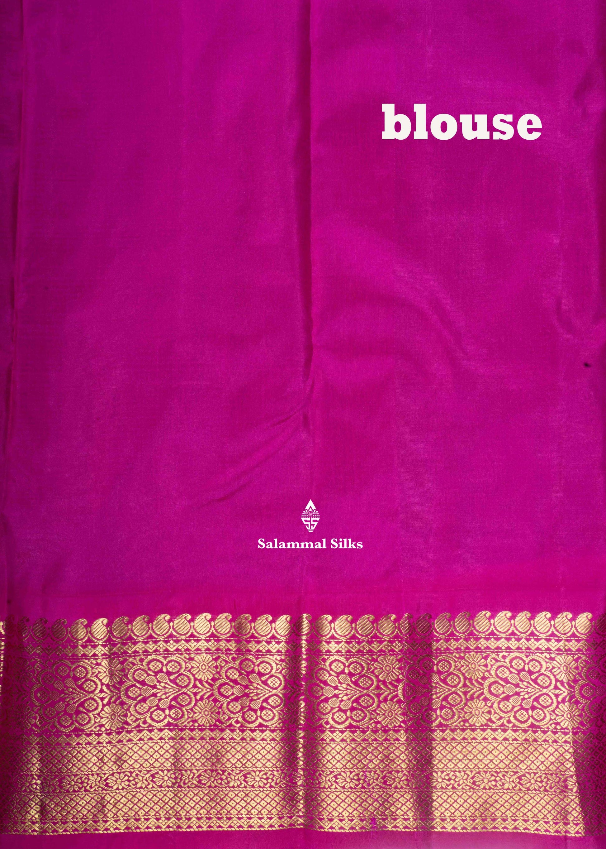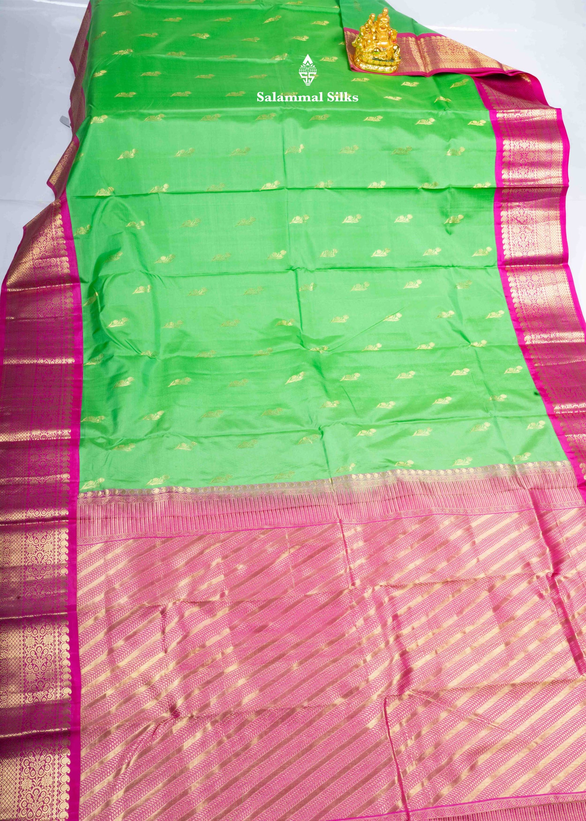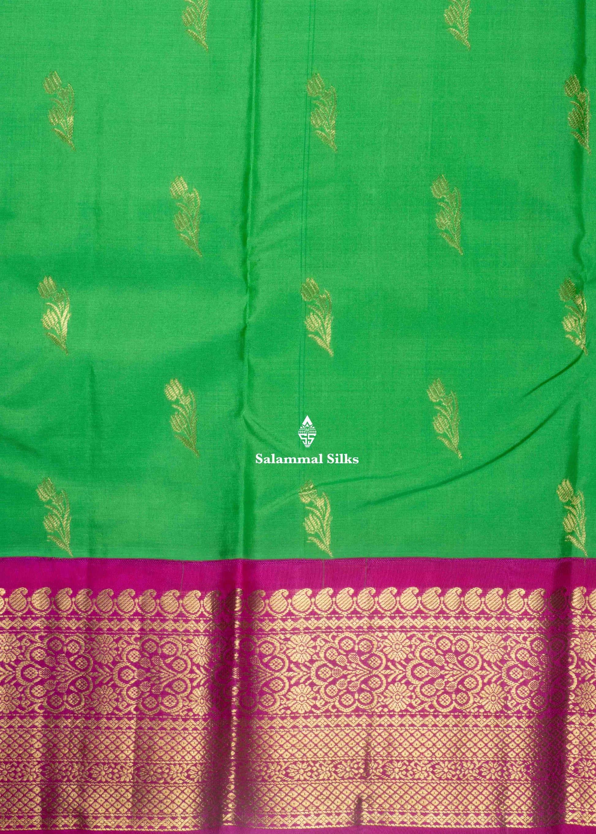 Kanjivaram Pure Silk Saree Parrot Green With Magenta Pink Blouse