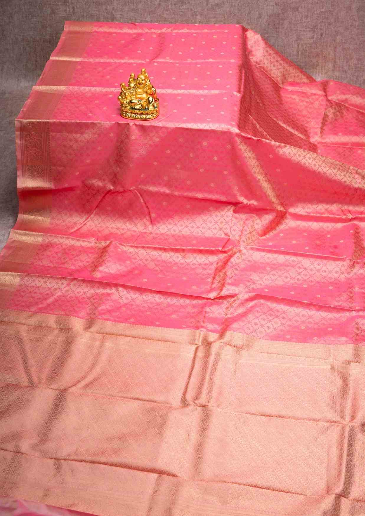 Kanjivaram Pure Silk Saree Peach With Gold Zari Border