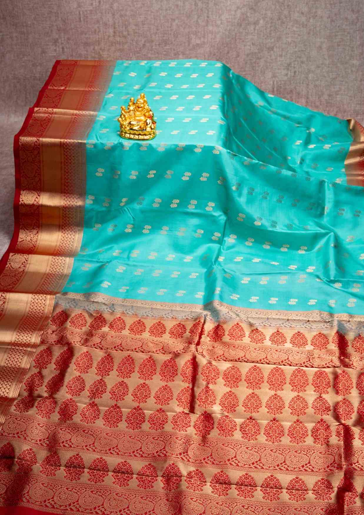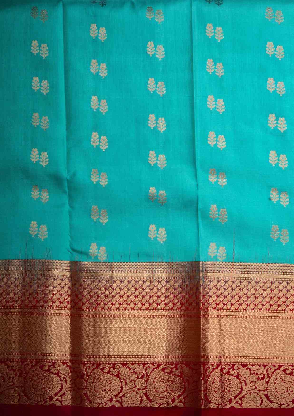 Kanjivaram Pure Silk Saree Sea Green With Maroon Blouse