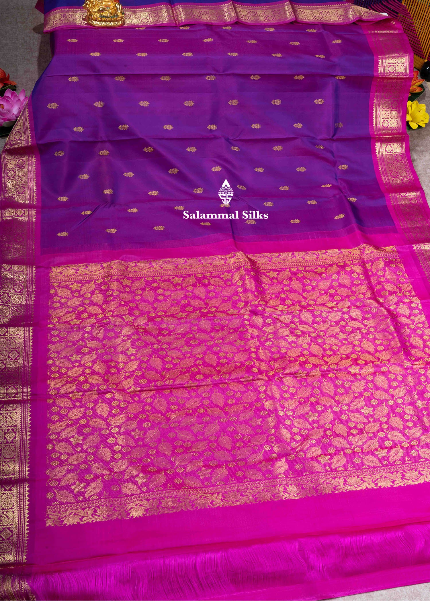 Kanjivaram Pure Silk Saree Violet With Pink Blouse