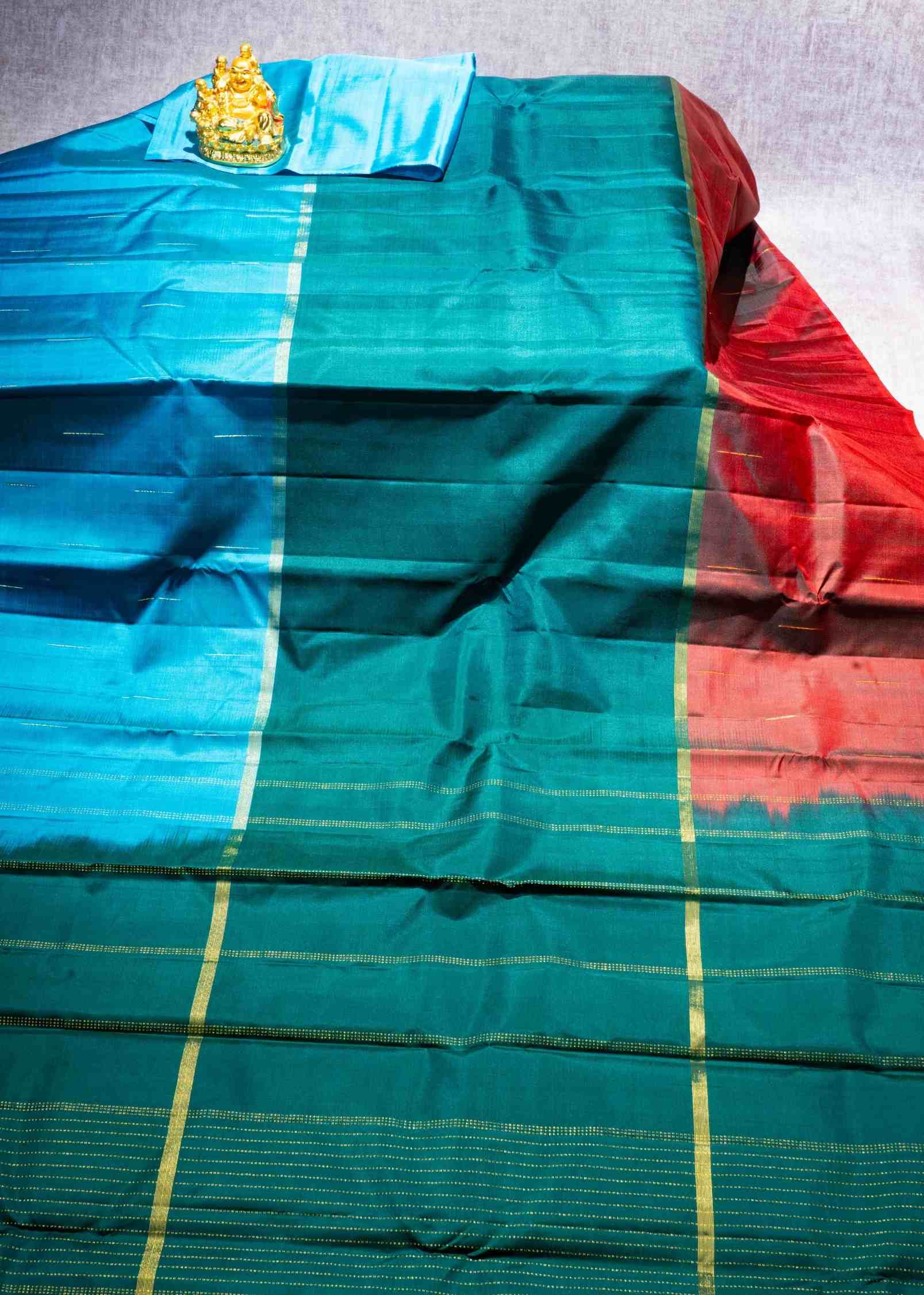 Kanjivaram Pure Silk Three Colour Saree With Blouse