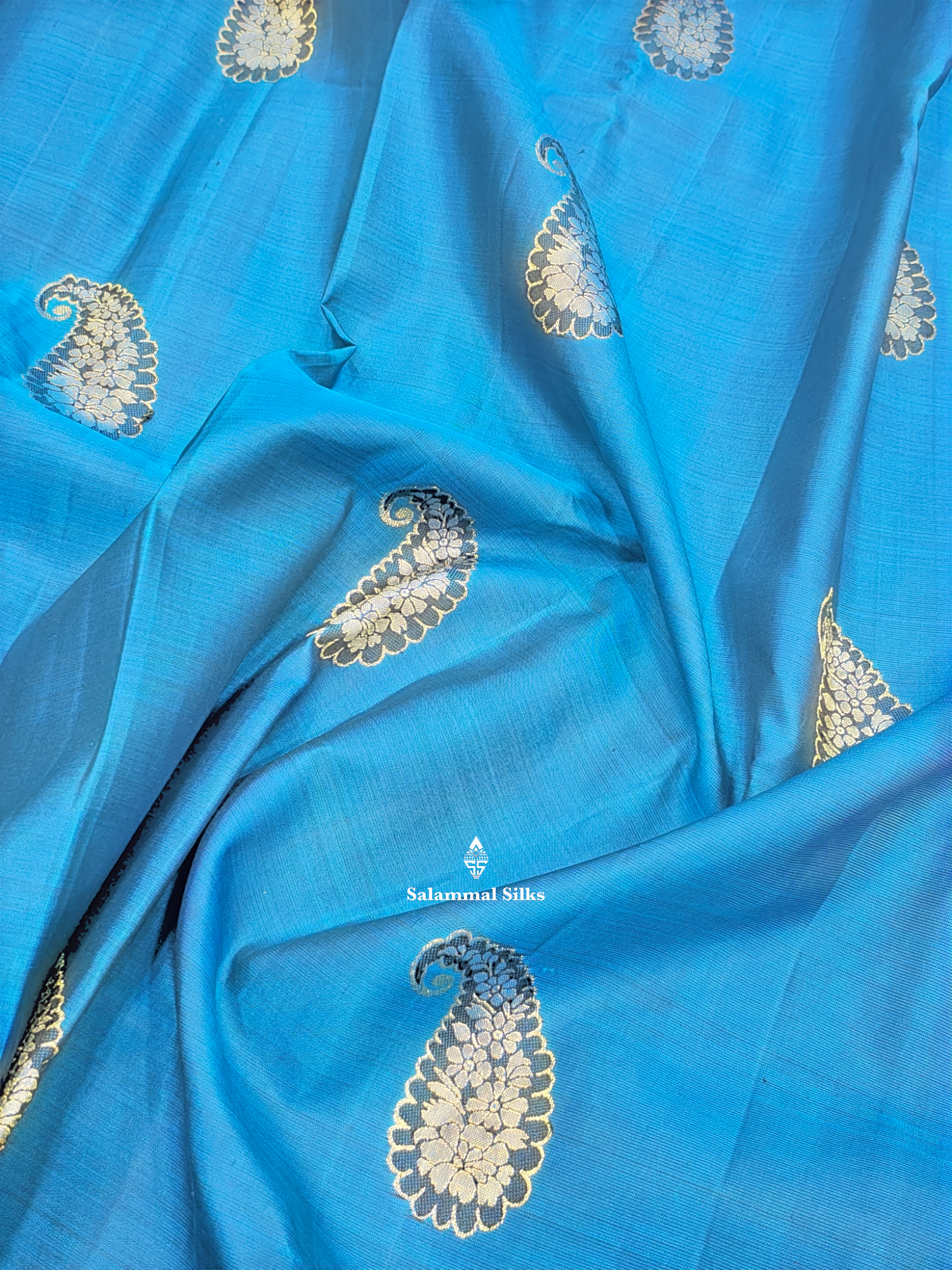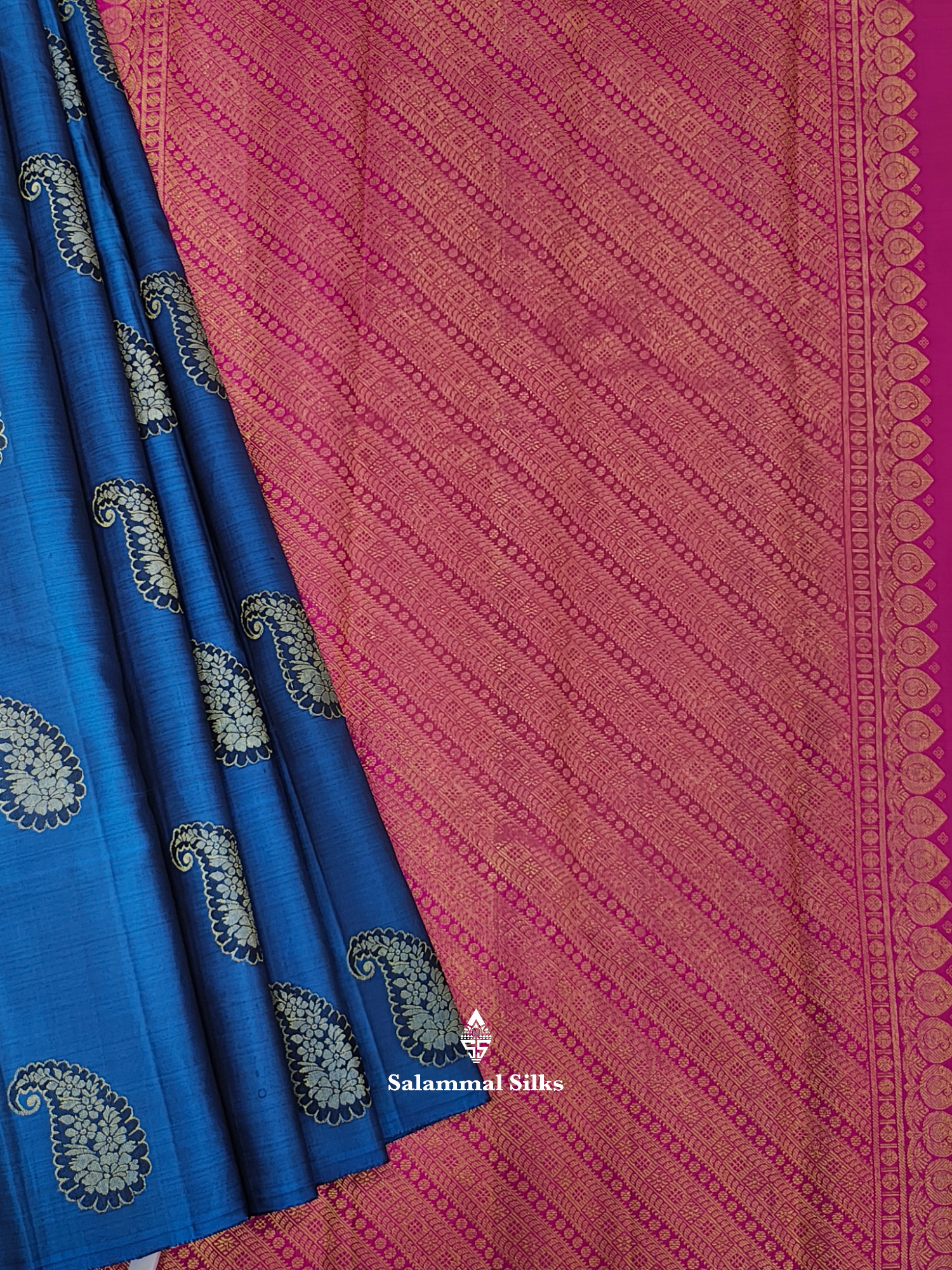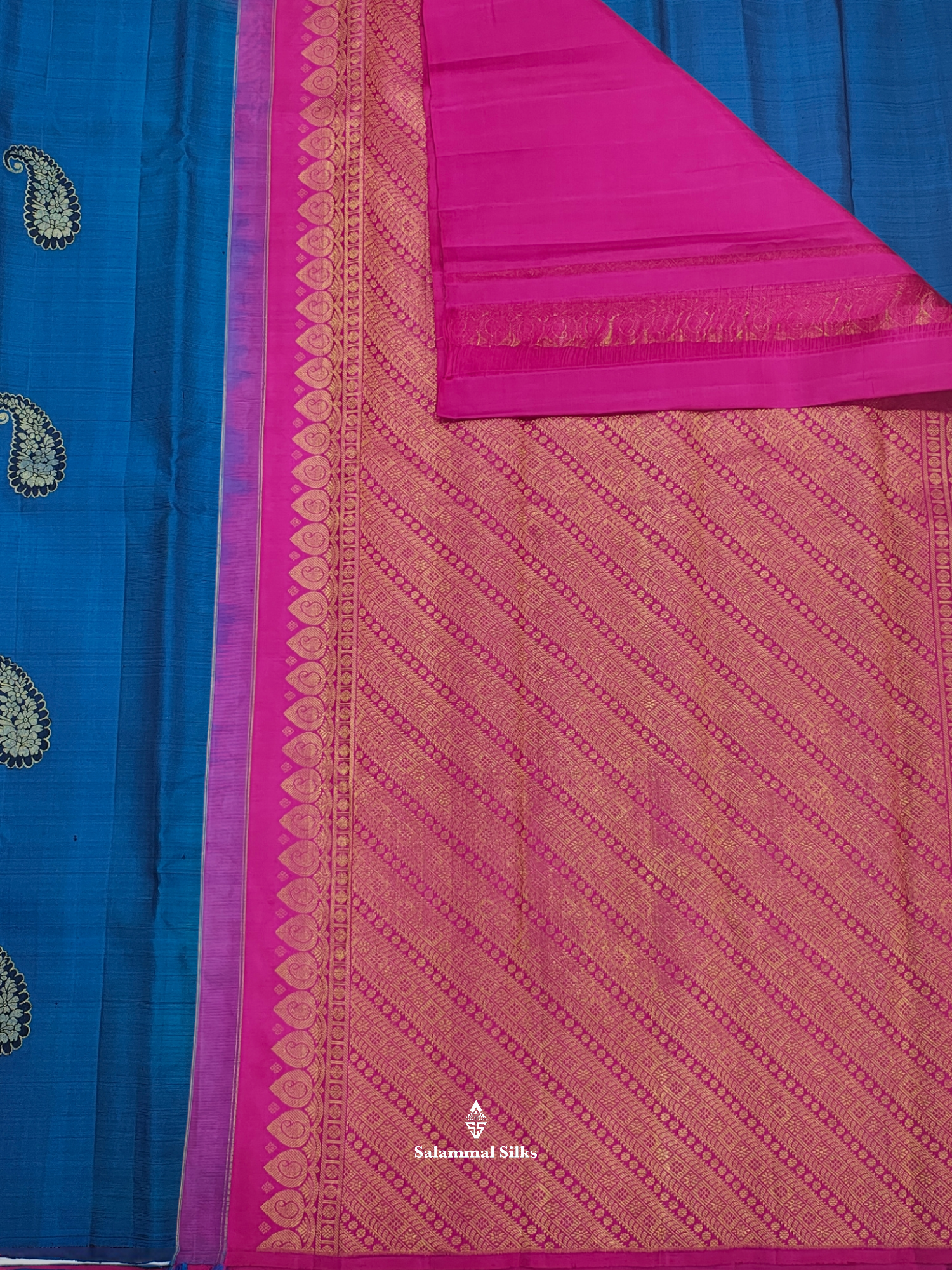 Kanjivaram Ramar Blue Pure Silk Saree With Magenta Rose Blouse