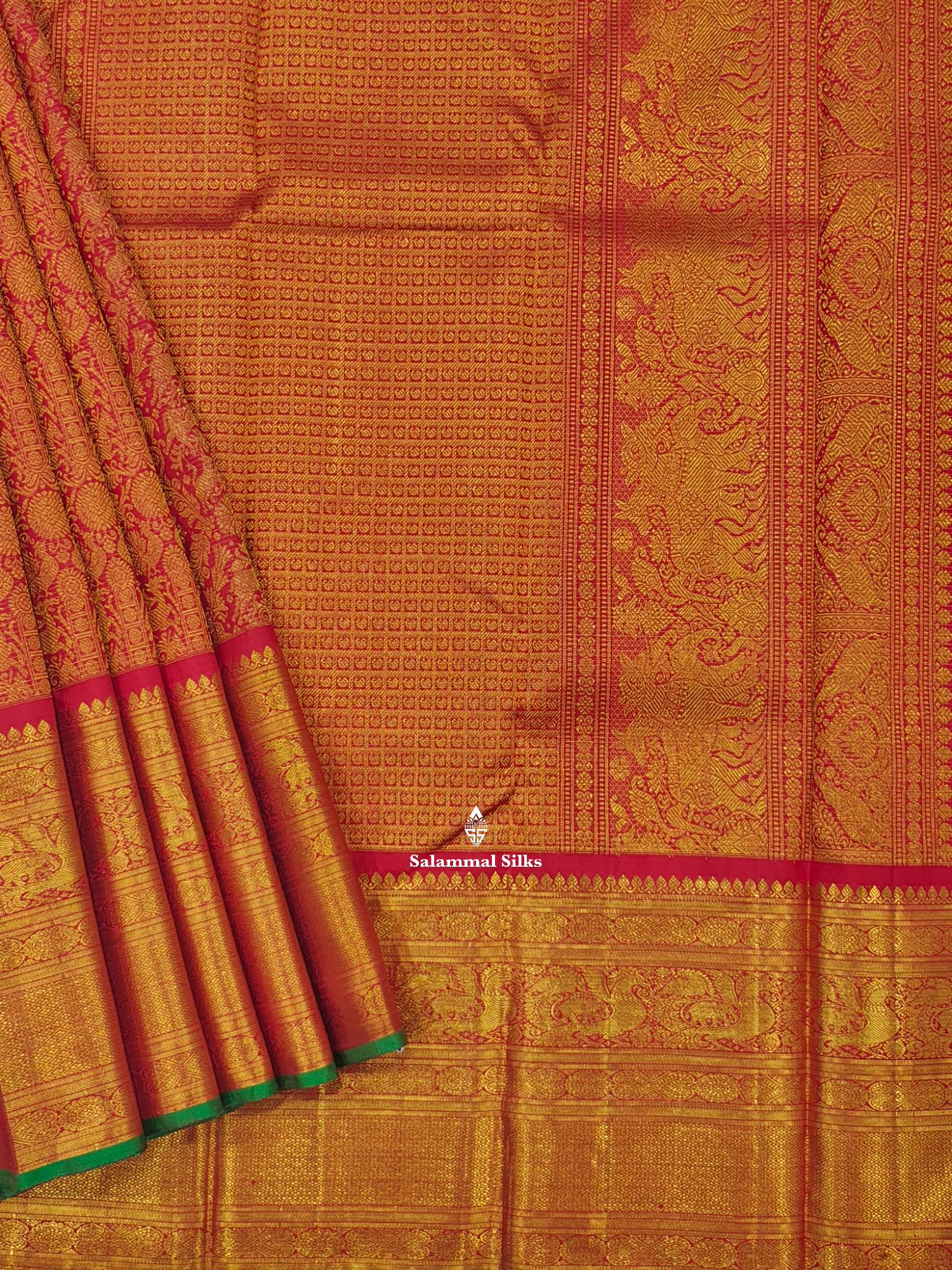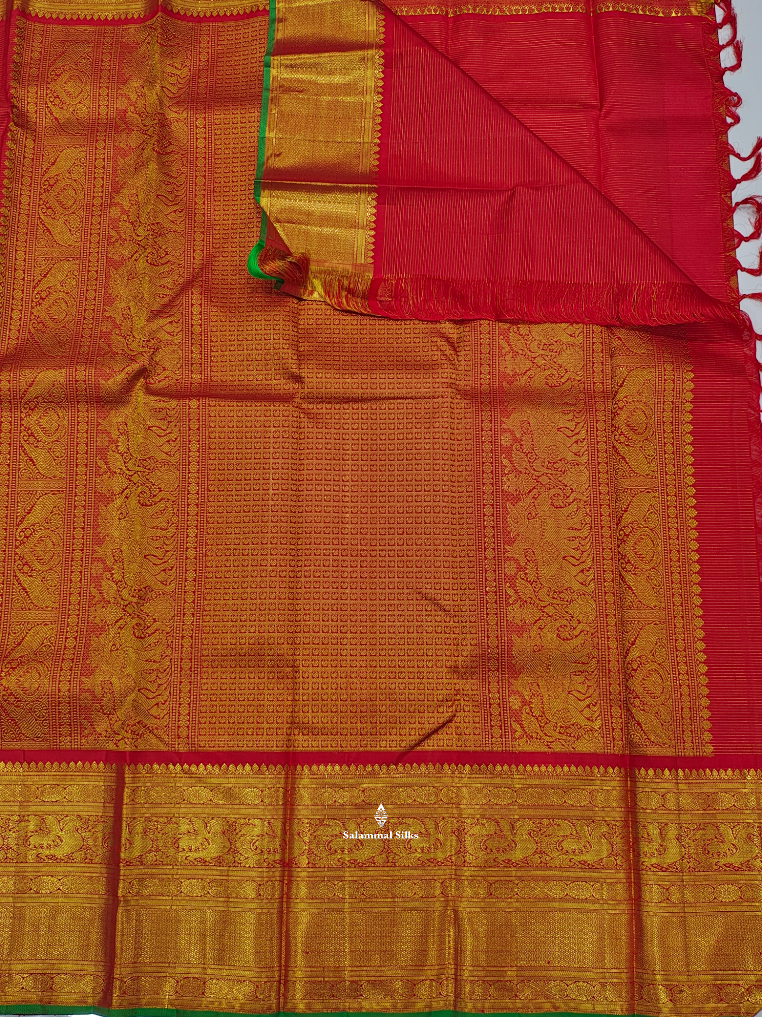 Kanjivaram Red Vairaoosi 2G Zari Beautiful Pure Silk Saree With Blouse