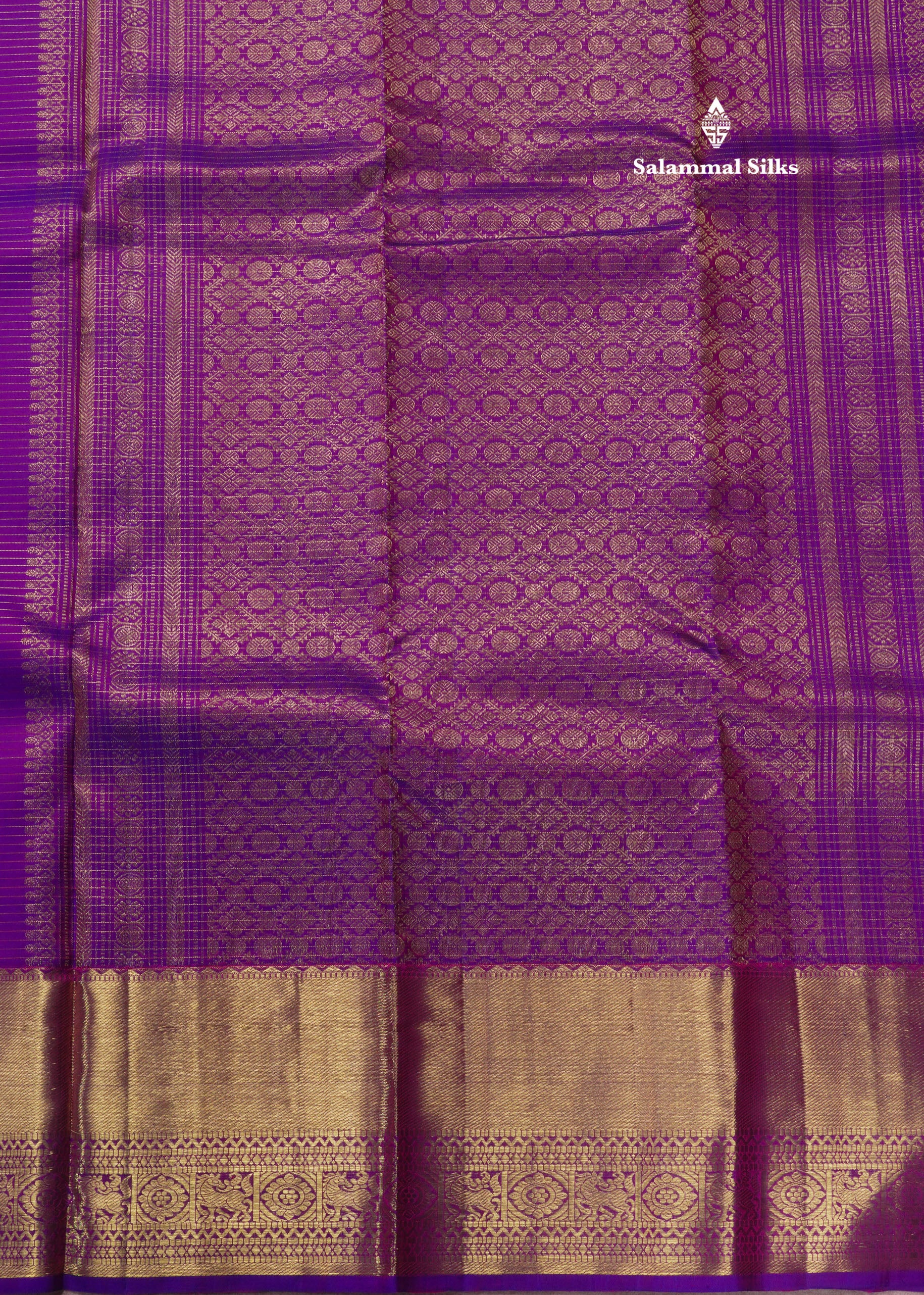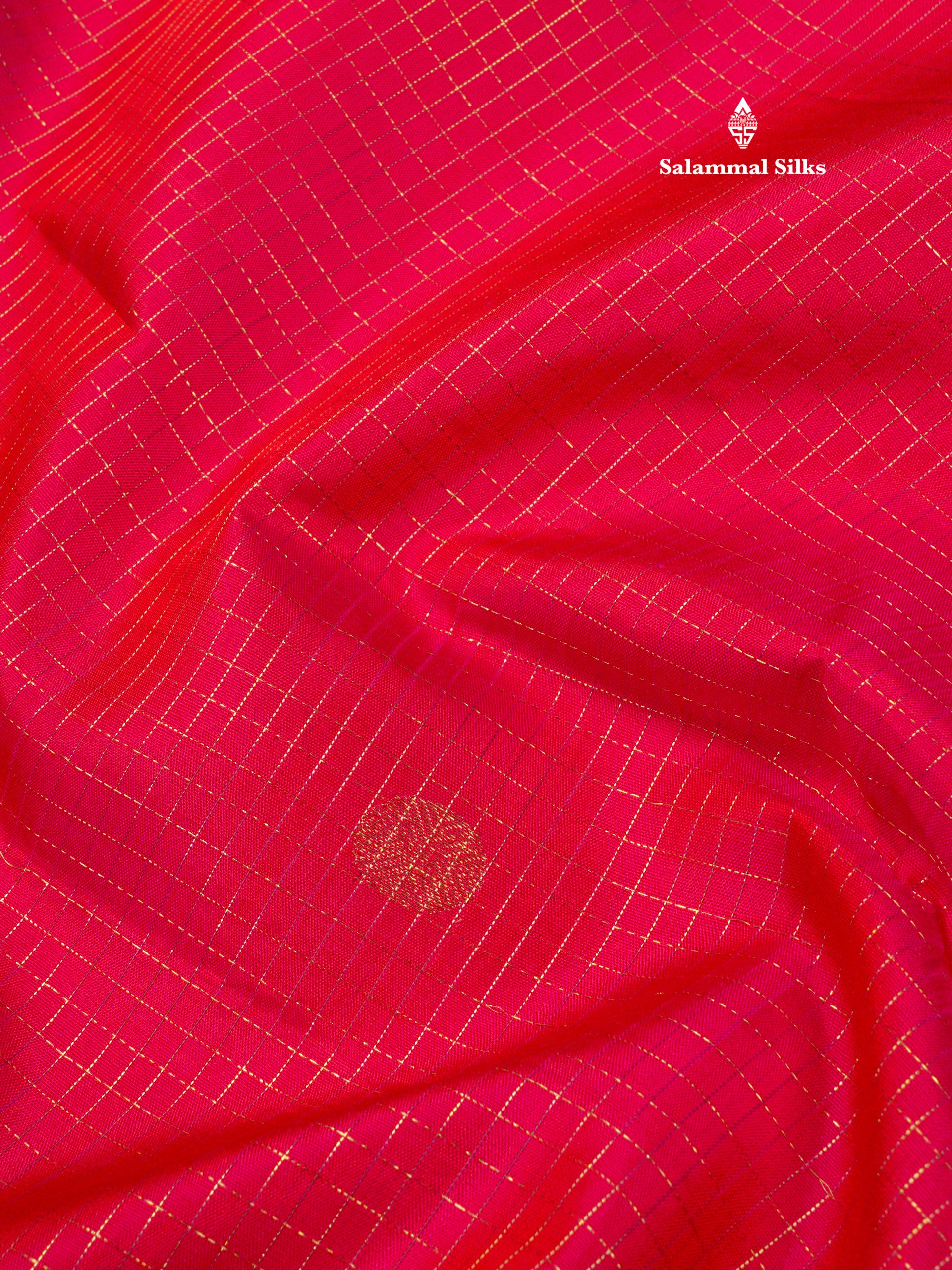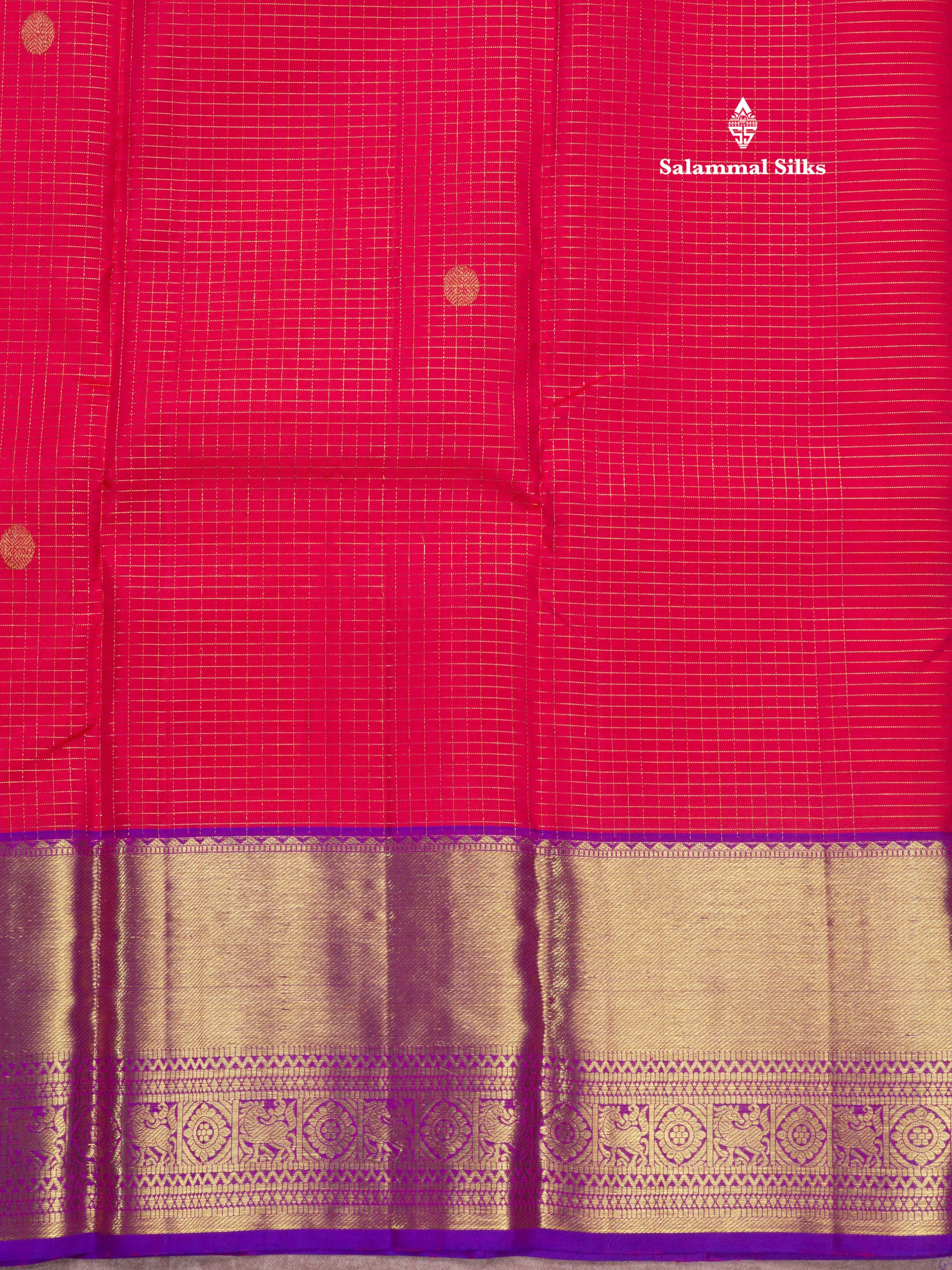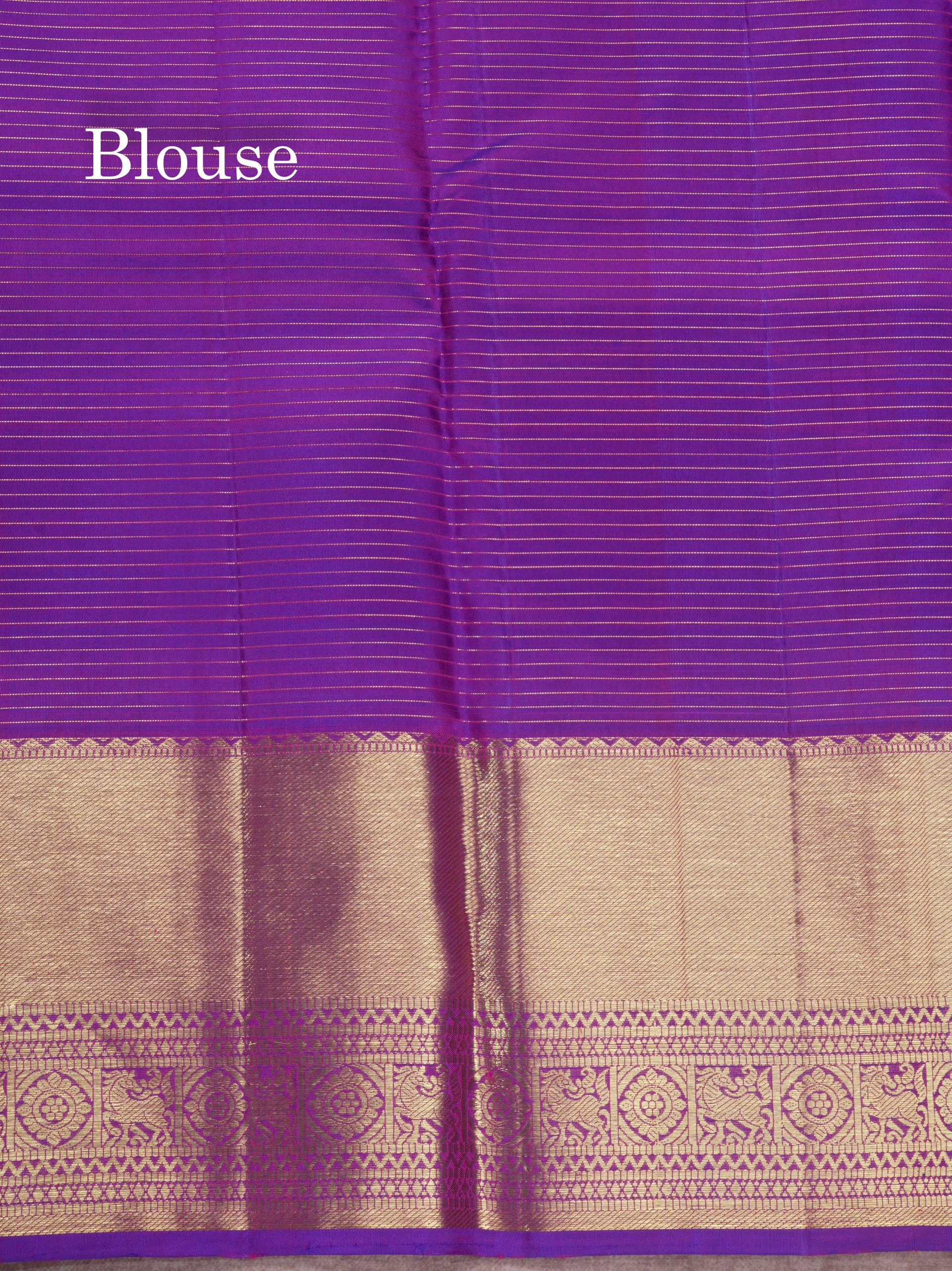 Kanjivaram Reddish Pink Pure Silk Saree With Contrast Violet Traditional Border