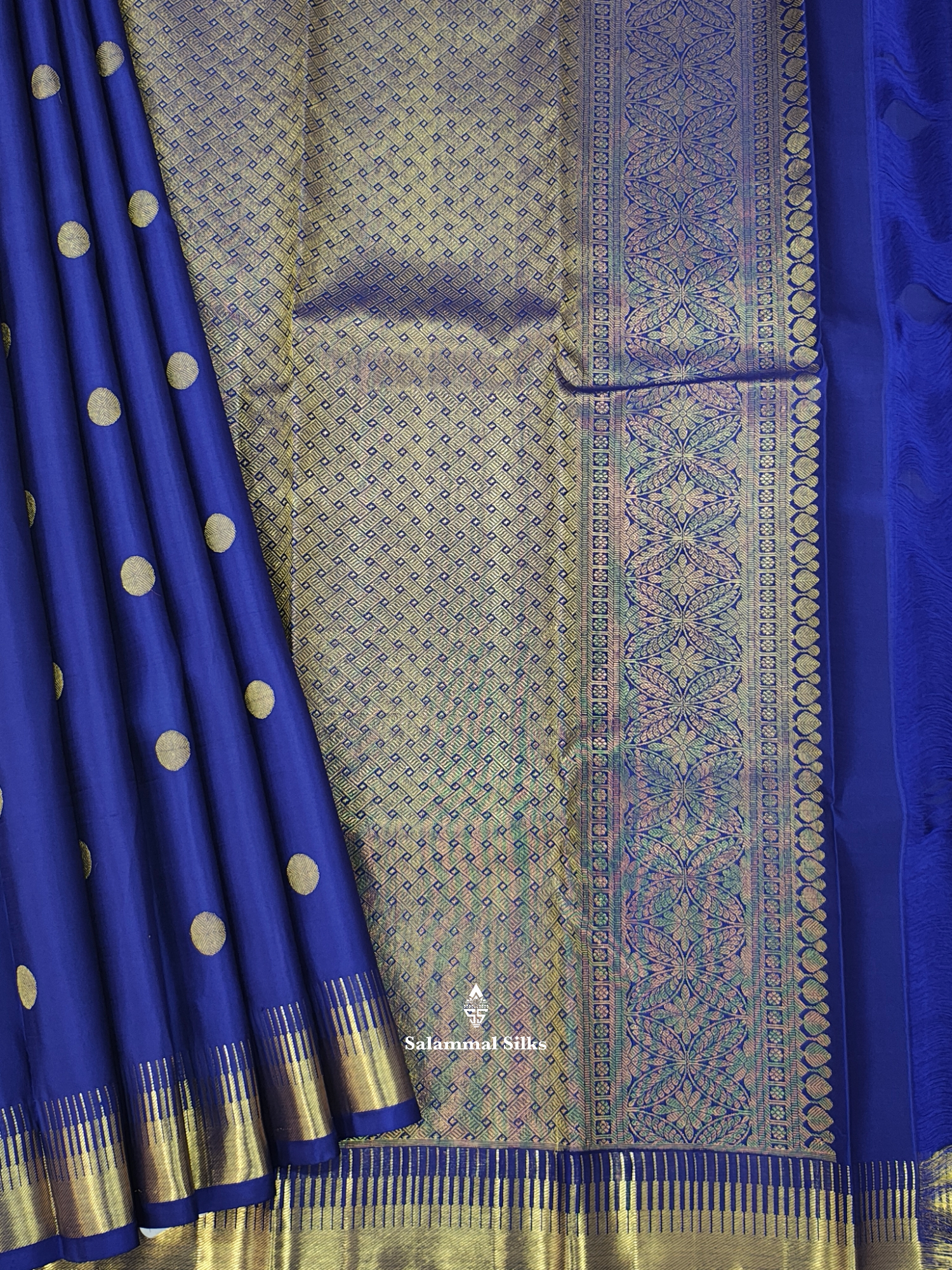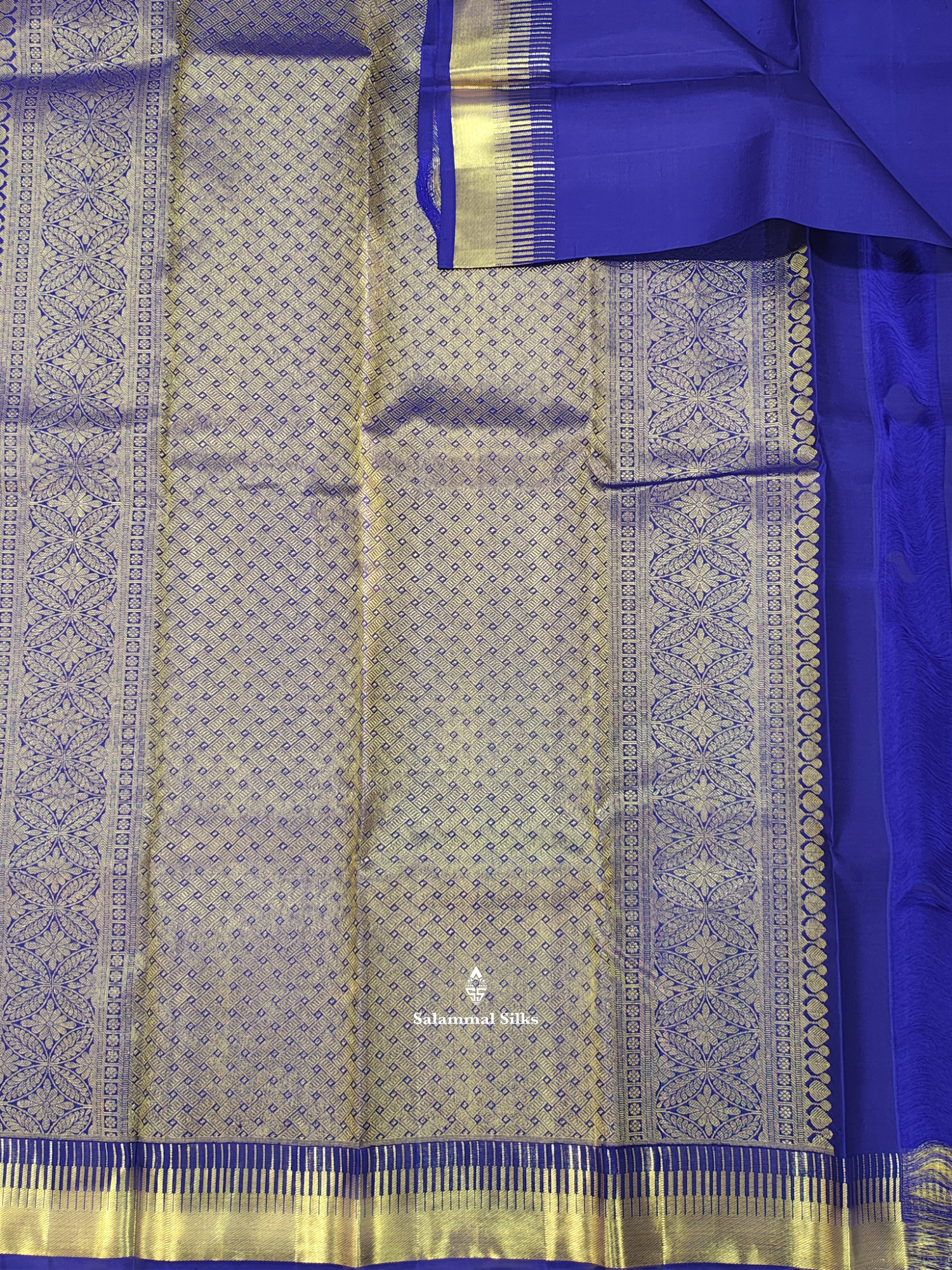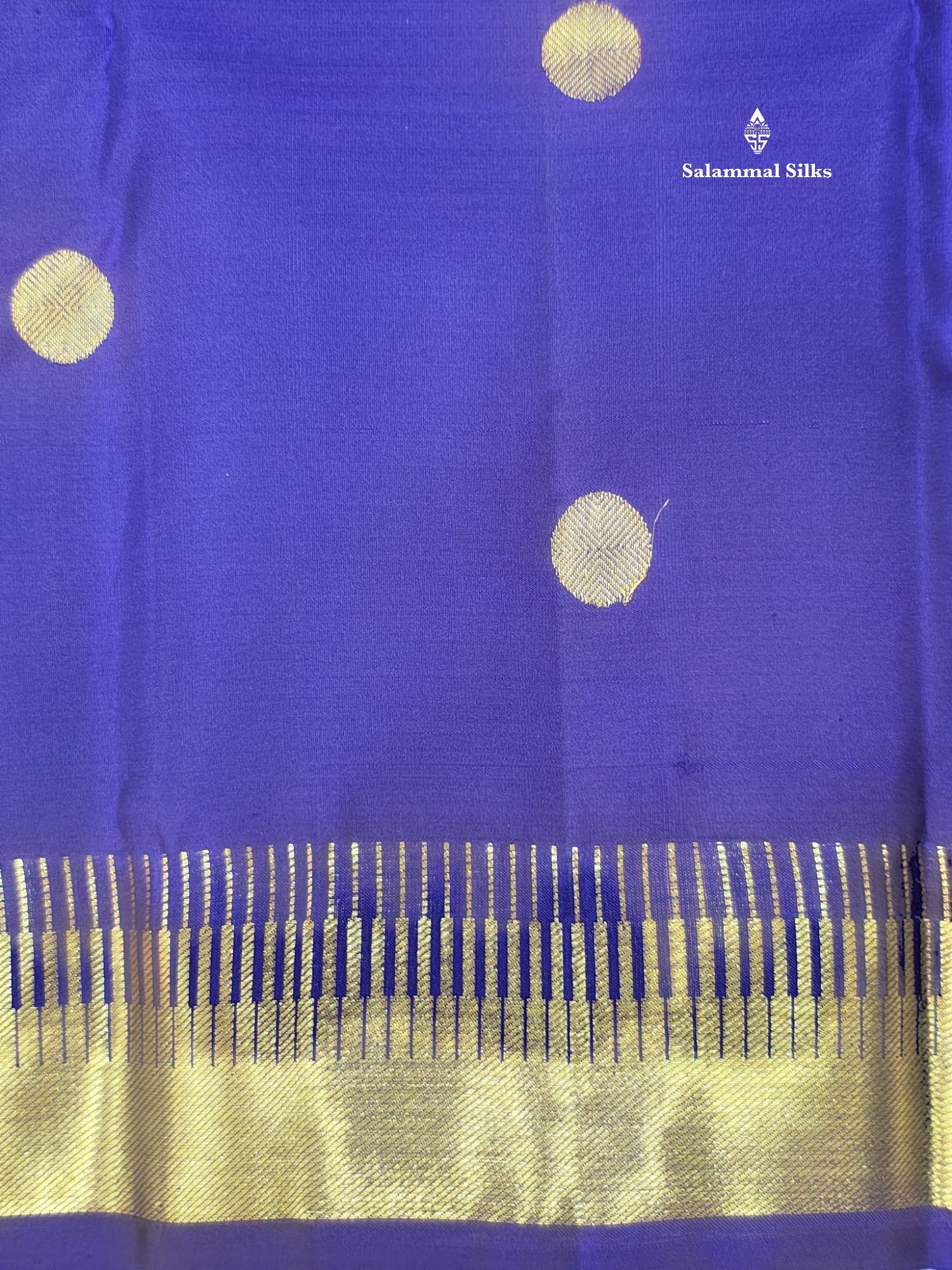 Salammal is known for its handloom sarees. In some sarees, there is cross-weaving between the body and the pallu, which is a sign of pure handloom sarees. This can be seen in Kanchipuram embossed sarees.