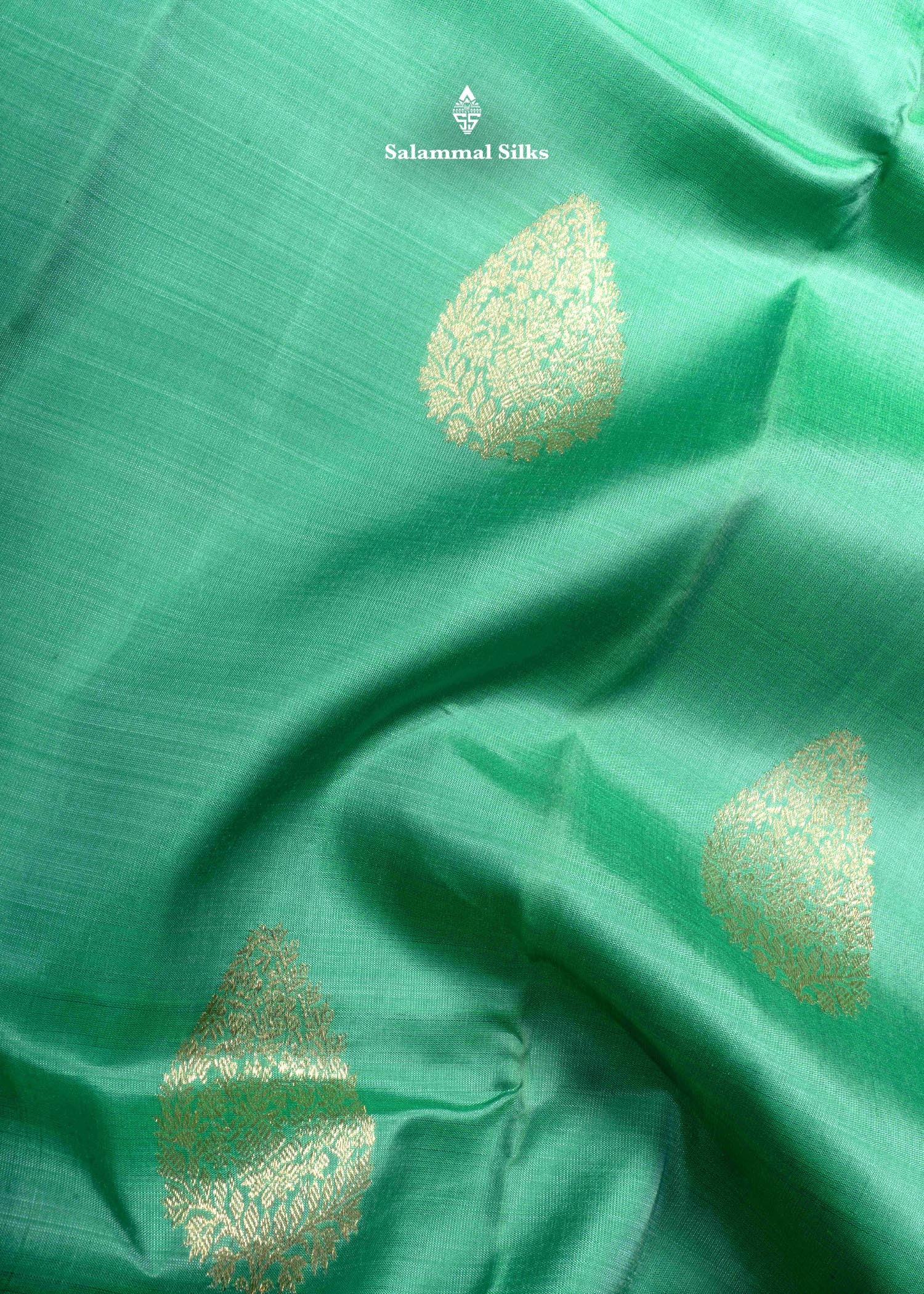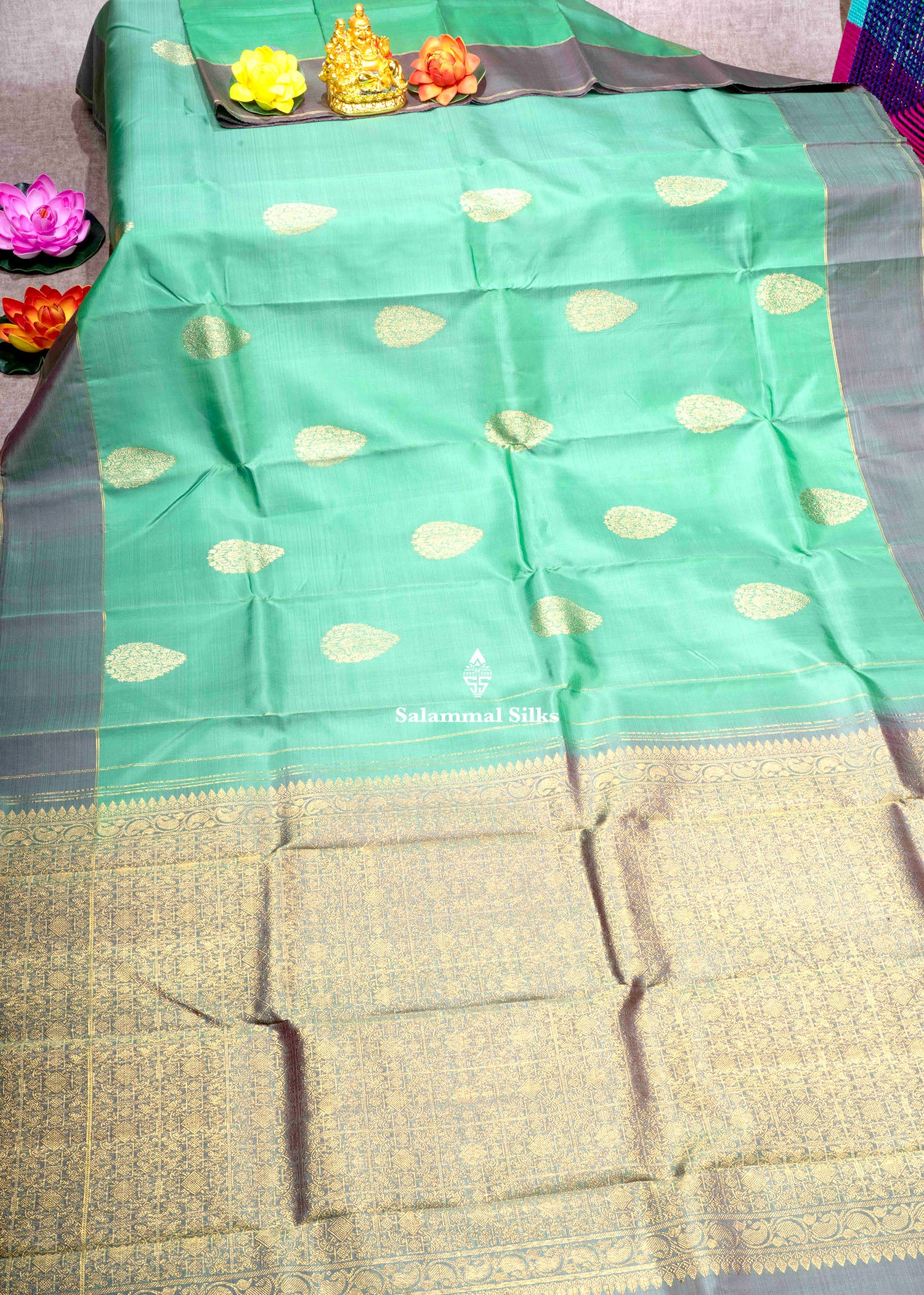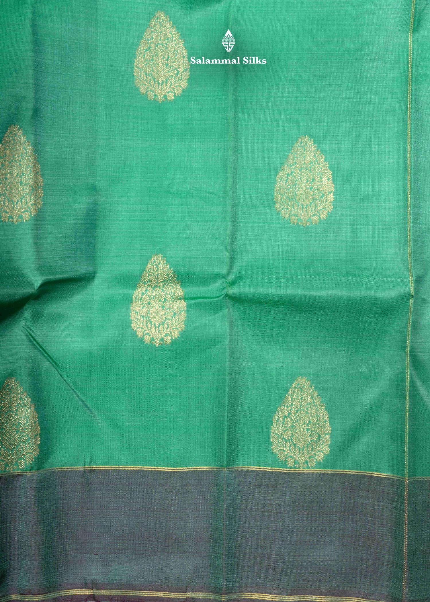 Kanjivaram Saffire Green Pure Silk Saree With Olive Green Blouse