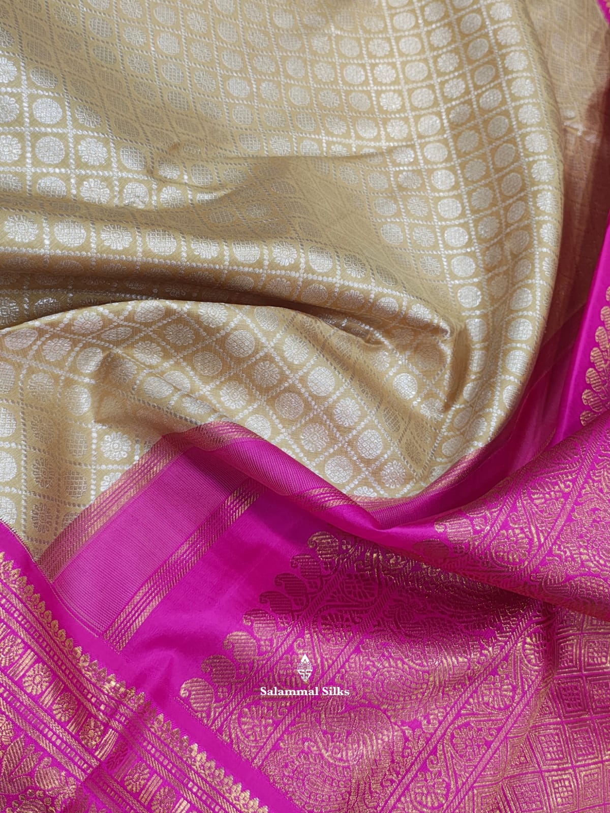 Kanjivaram Sandal 2G Zari Pure Silk Saree With Magenta Rose