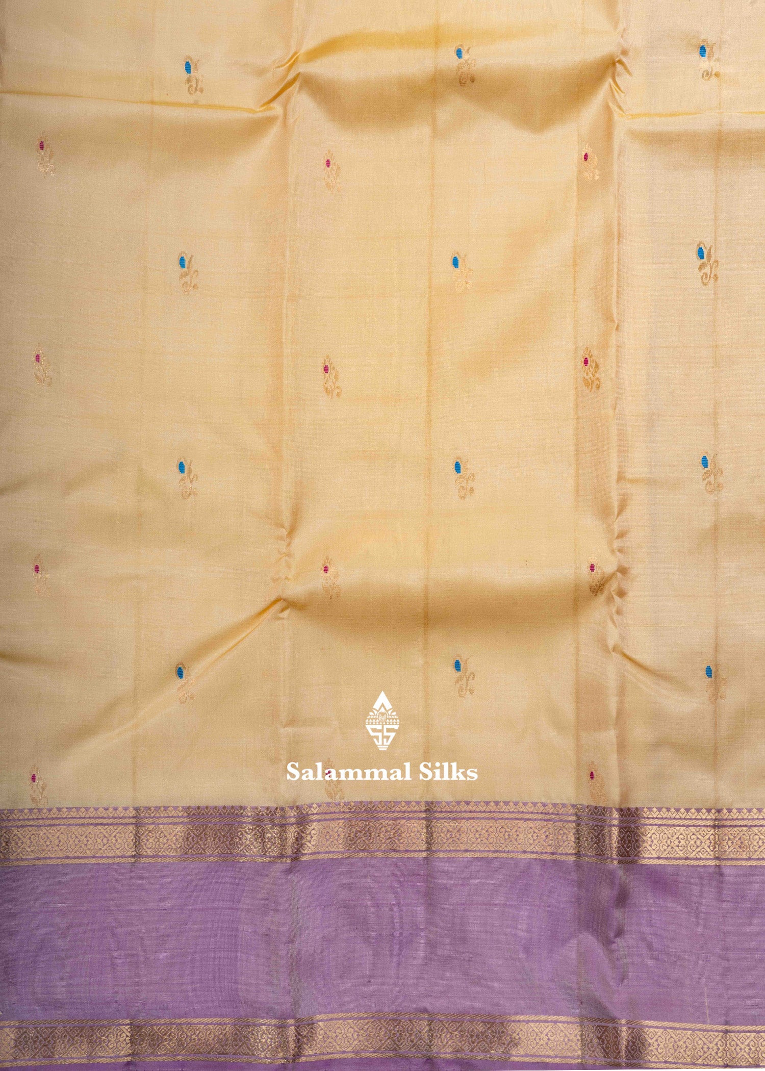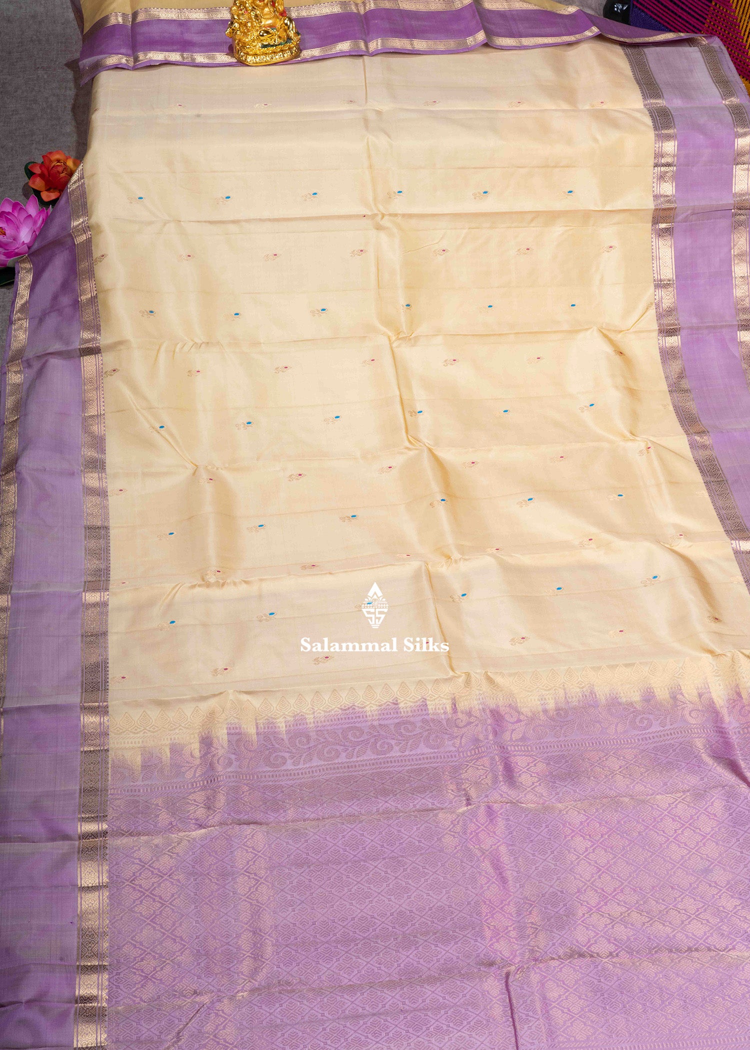 Kanjivaram Sandal Pure Silk Saree With Cream Lavender Blouse