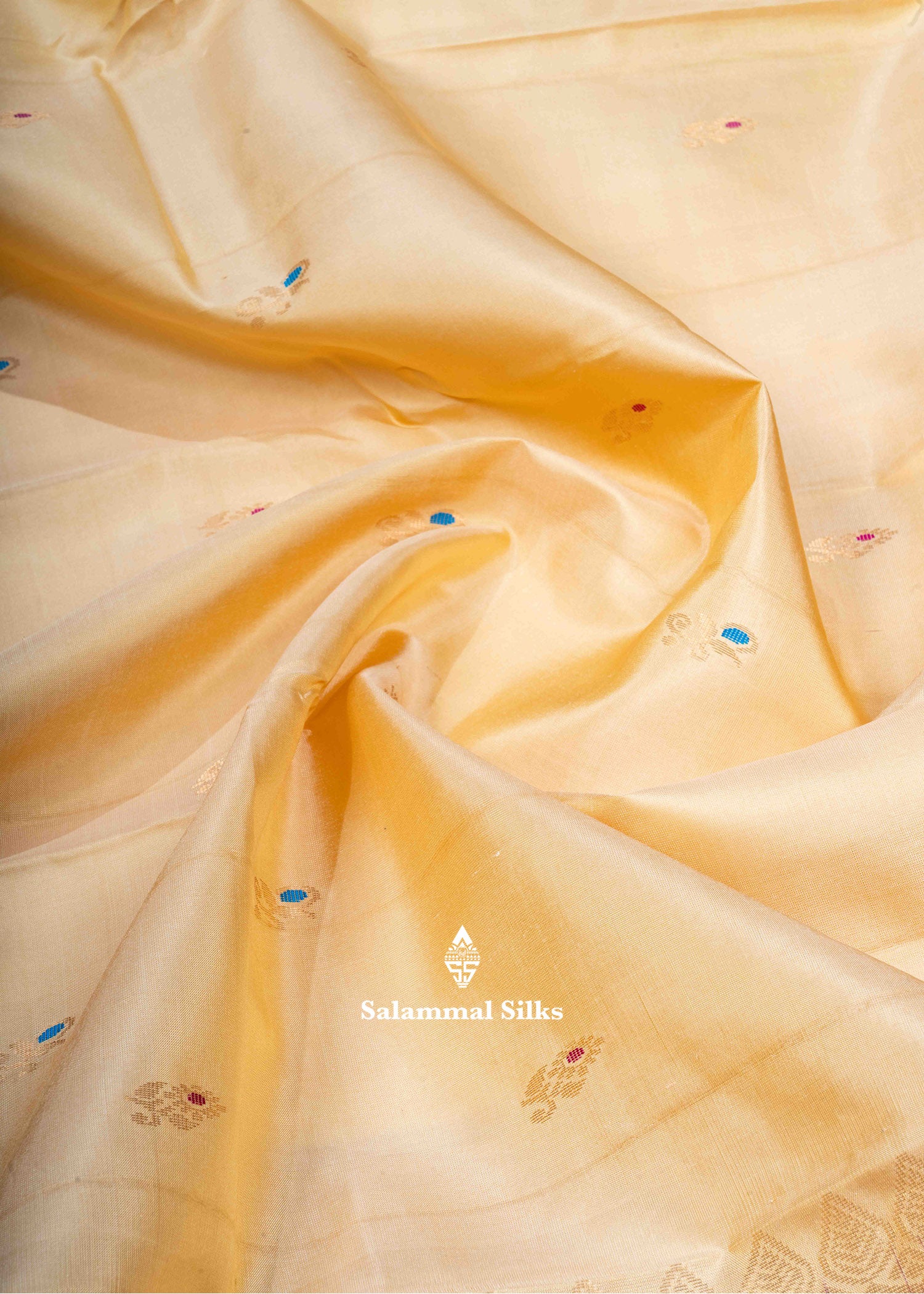 Salammal is known for its handloom sarees. In some sarees, there is cross-weaving between the body and the pallu, which is a sign of pure handloom sarees. This can be seen in Kanchipuram embossed sarees.