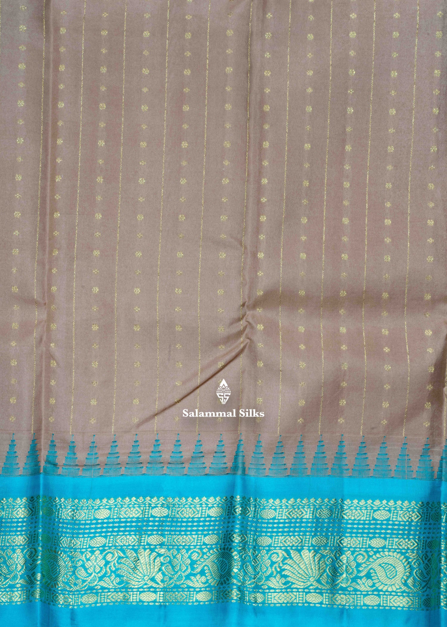 Salammal is known for its handloom sarees. In some sarees, there is cross-weaving between the body and the pallu, which is a sign of pure handloom sarees. This can be seen in Kanchipuram embossed sarees.