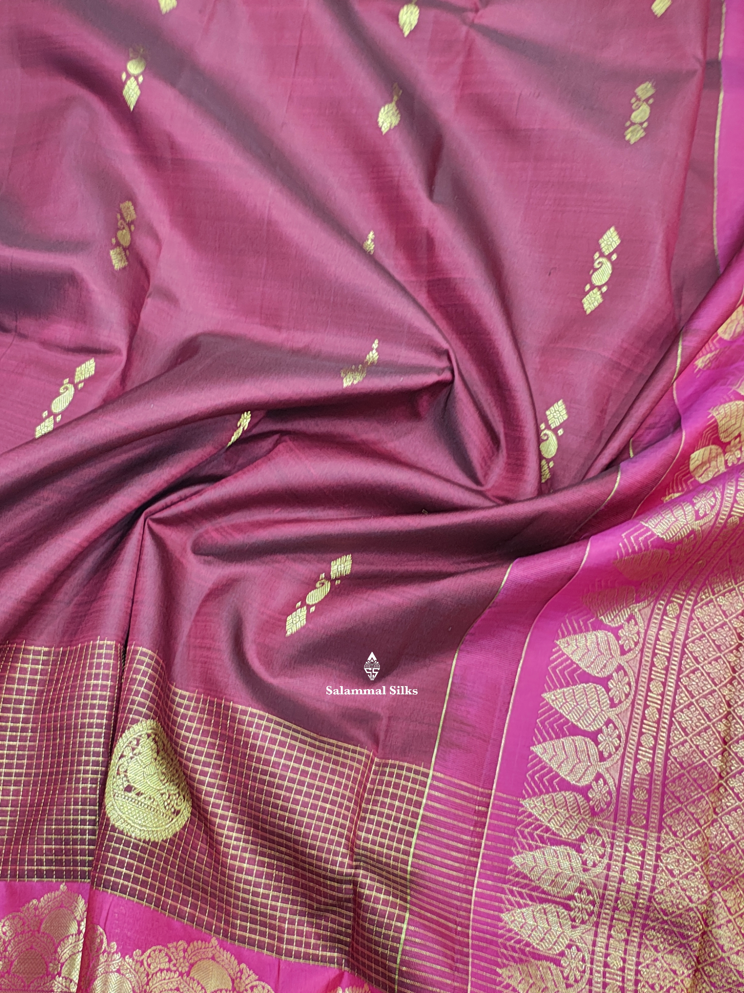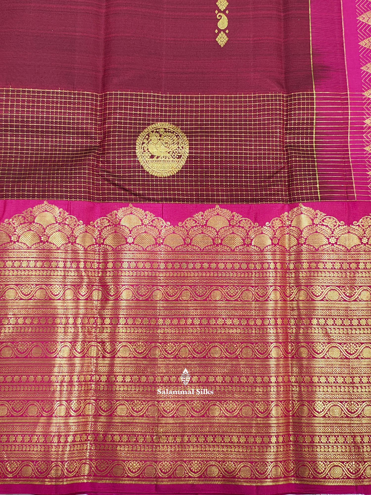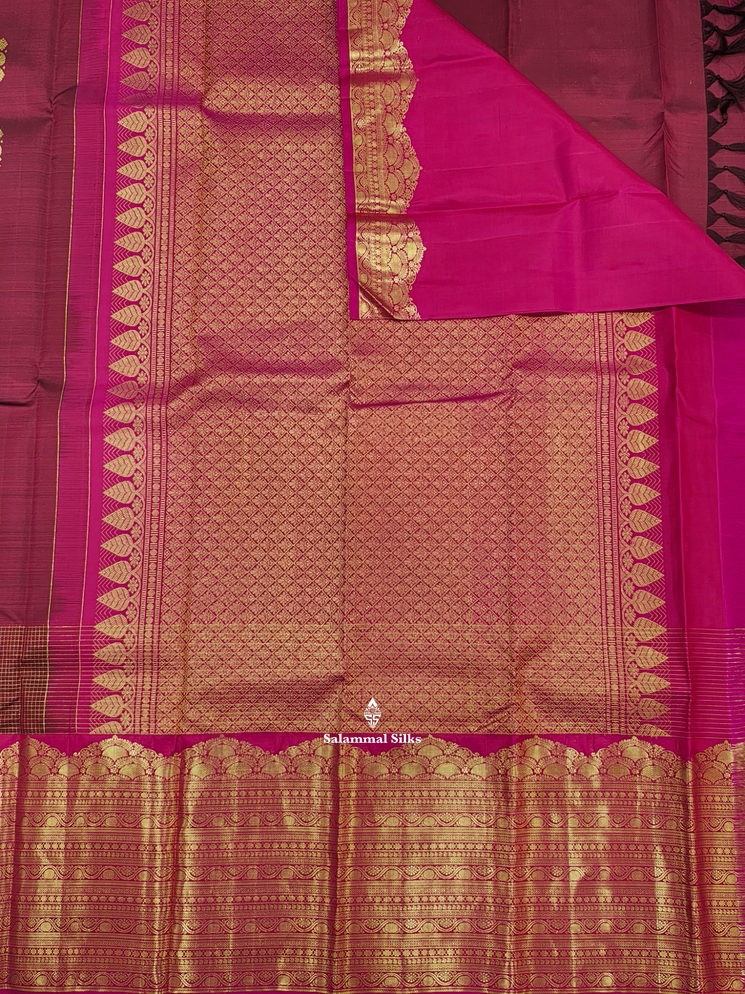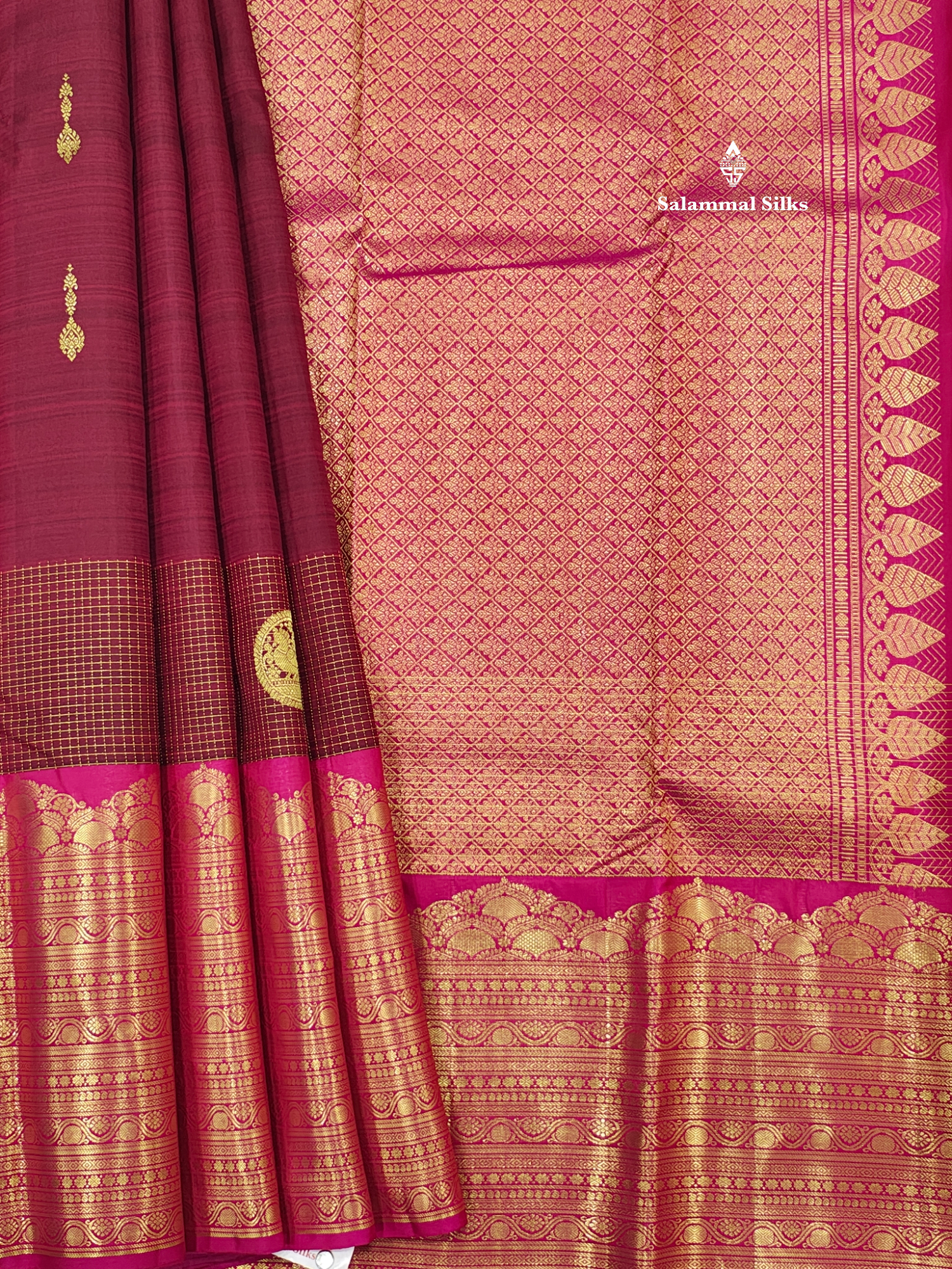 Kanjivaram Traditional Maroon Pure Silk Saree With Magenta Rose Border