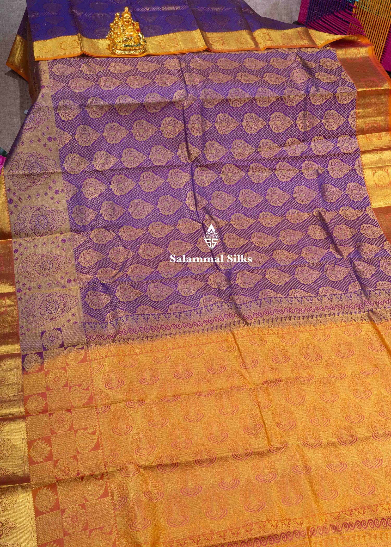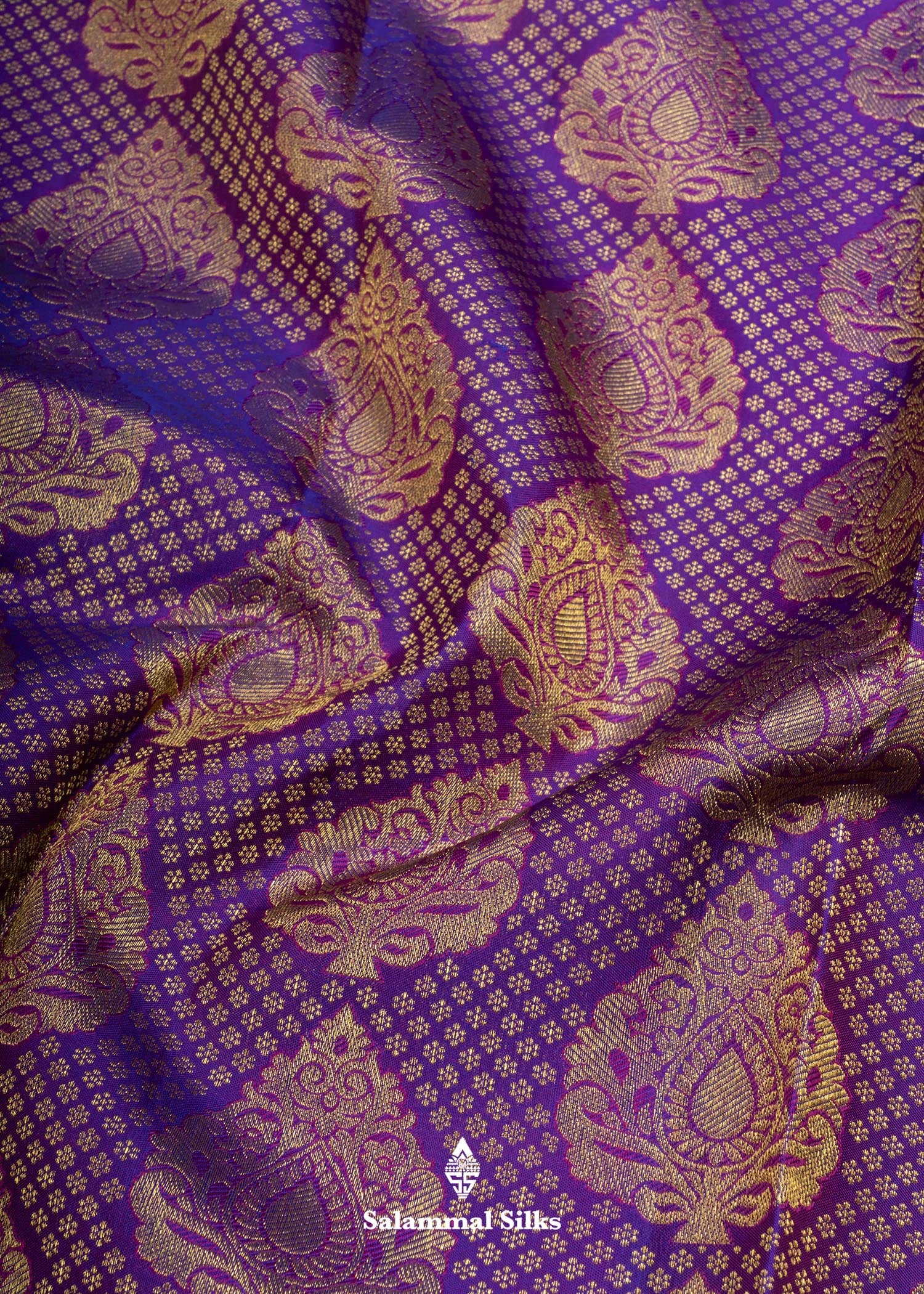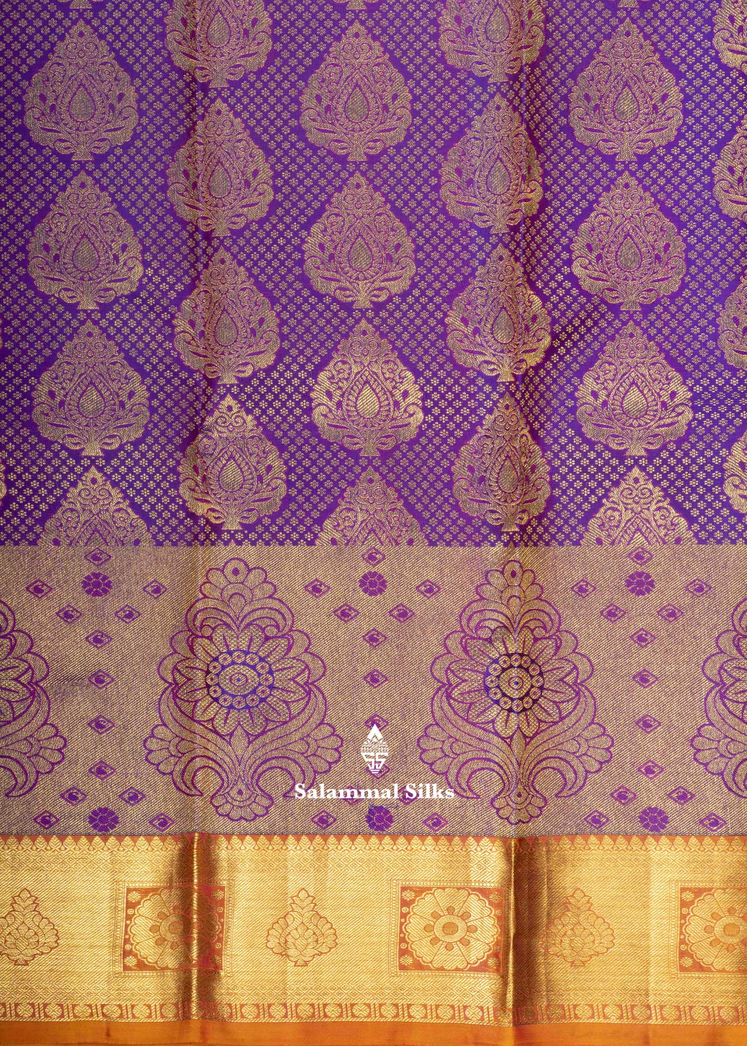 Kanjivaram Violet Pure Silk Jacquard Saree With Mustard Yellow Blouse