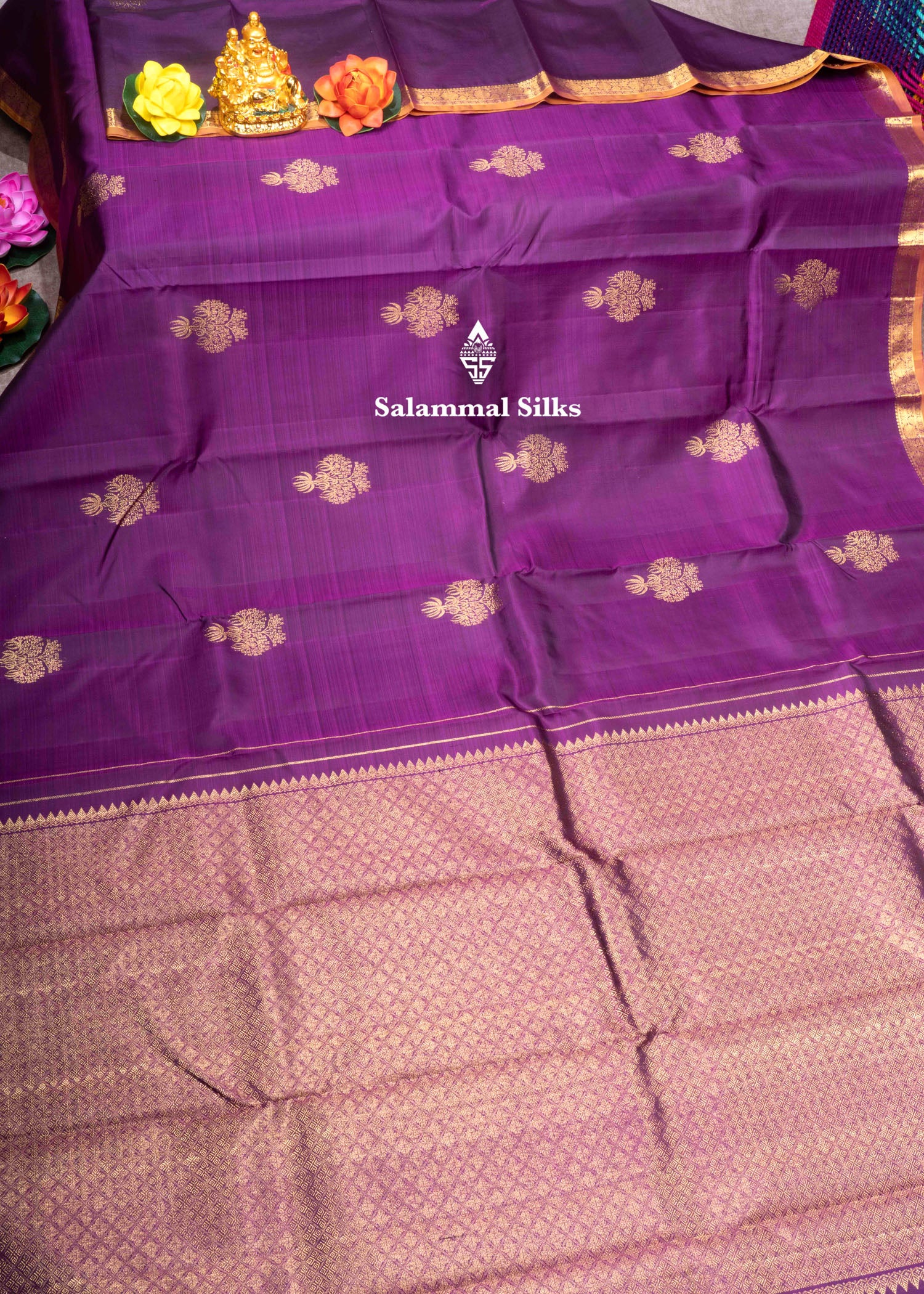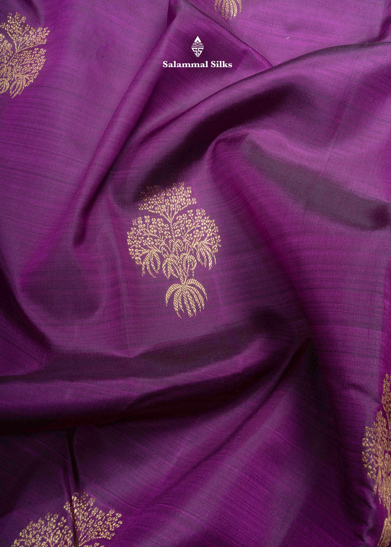 Salammal is known for its handloom sarees. In some sarees, there is cross-weaving between the body and the pallu, which is a sign of pure handloom sarees. This can be seen in Kanchipuram embossed sarees.