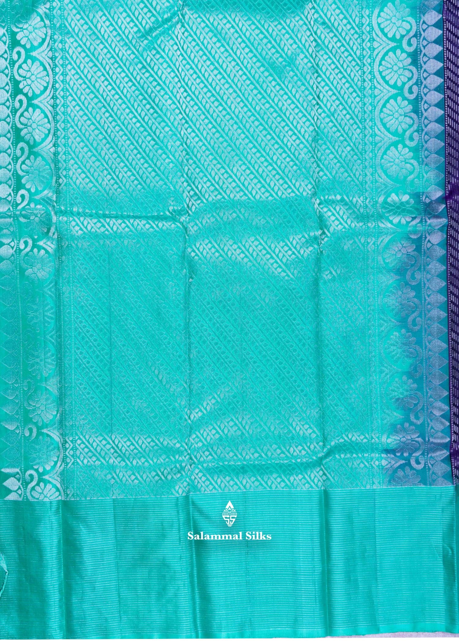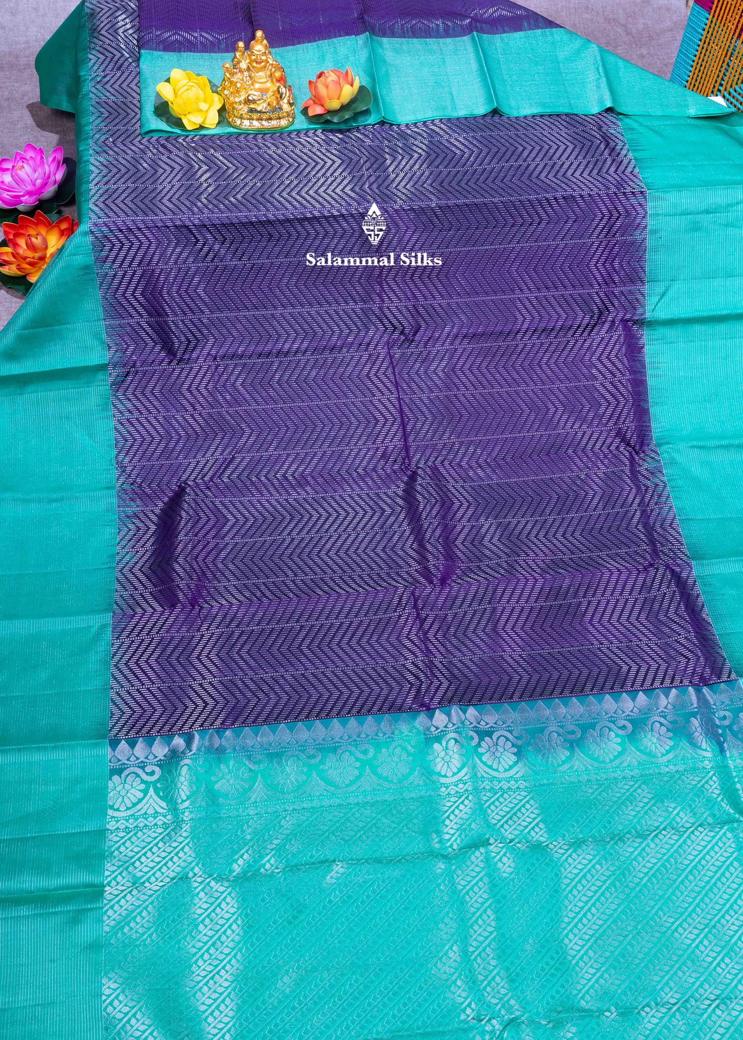 Kanjivaram Violet Pure Silk Saree With Saffire Green Blouse