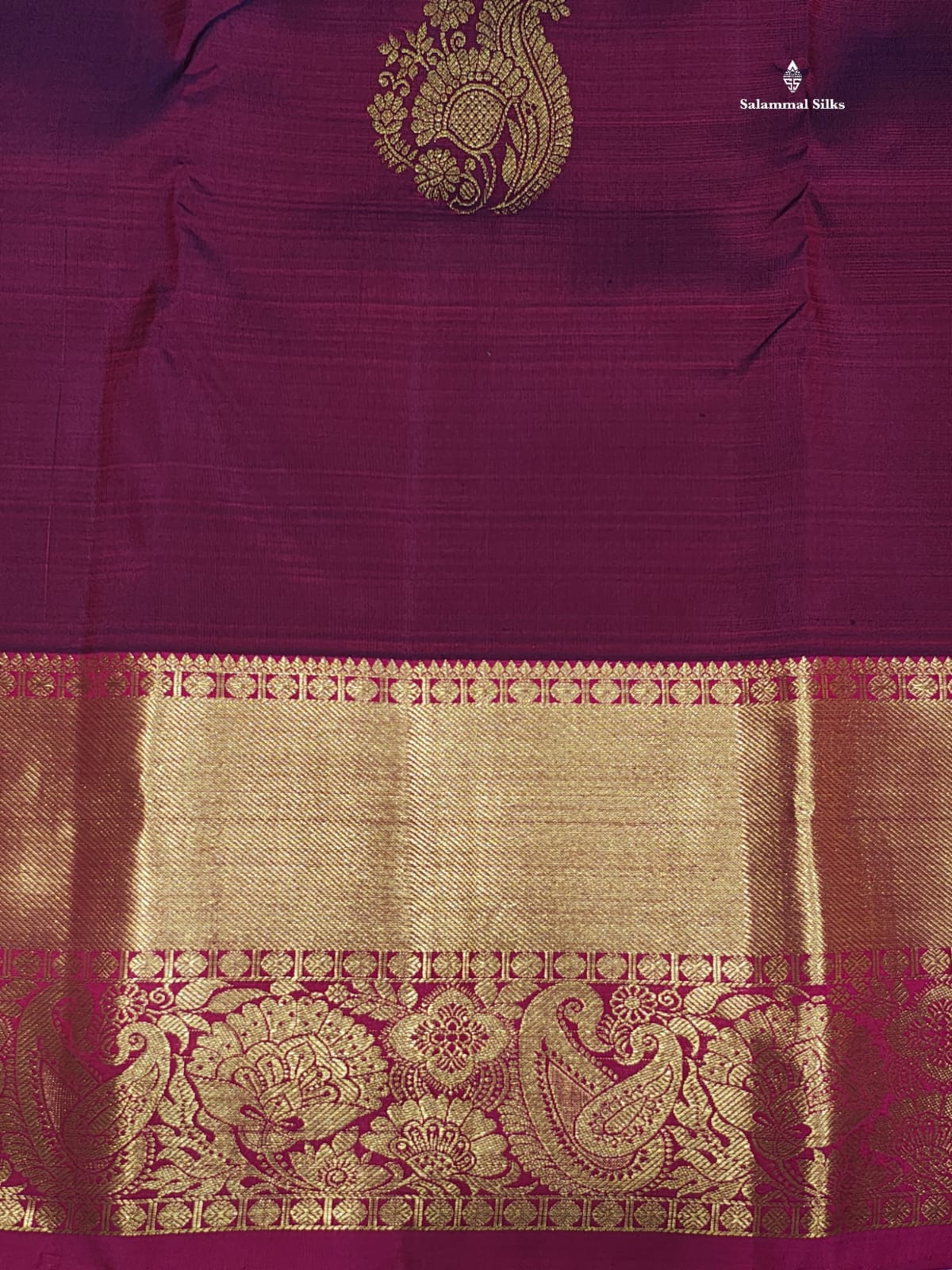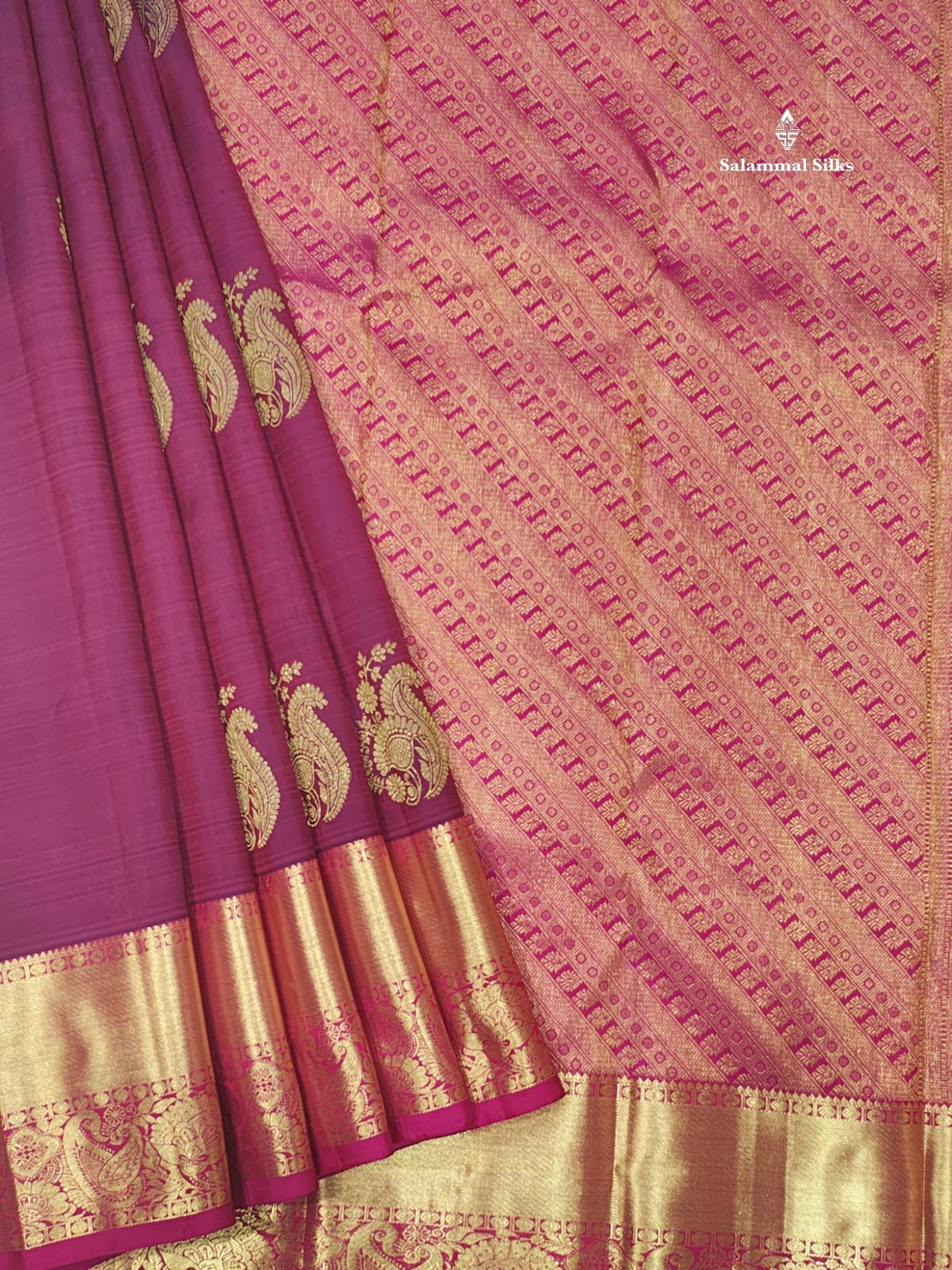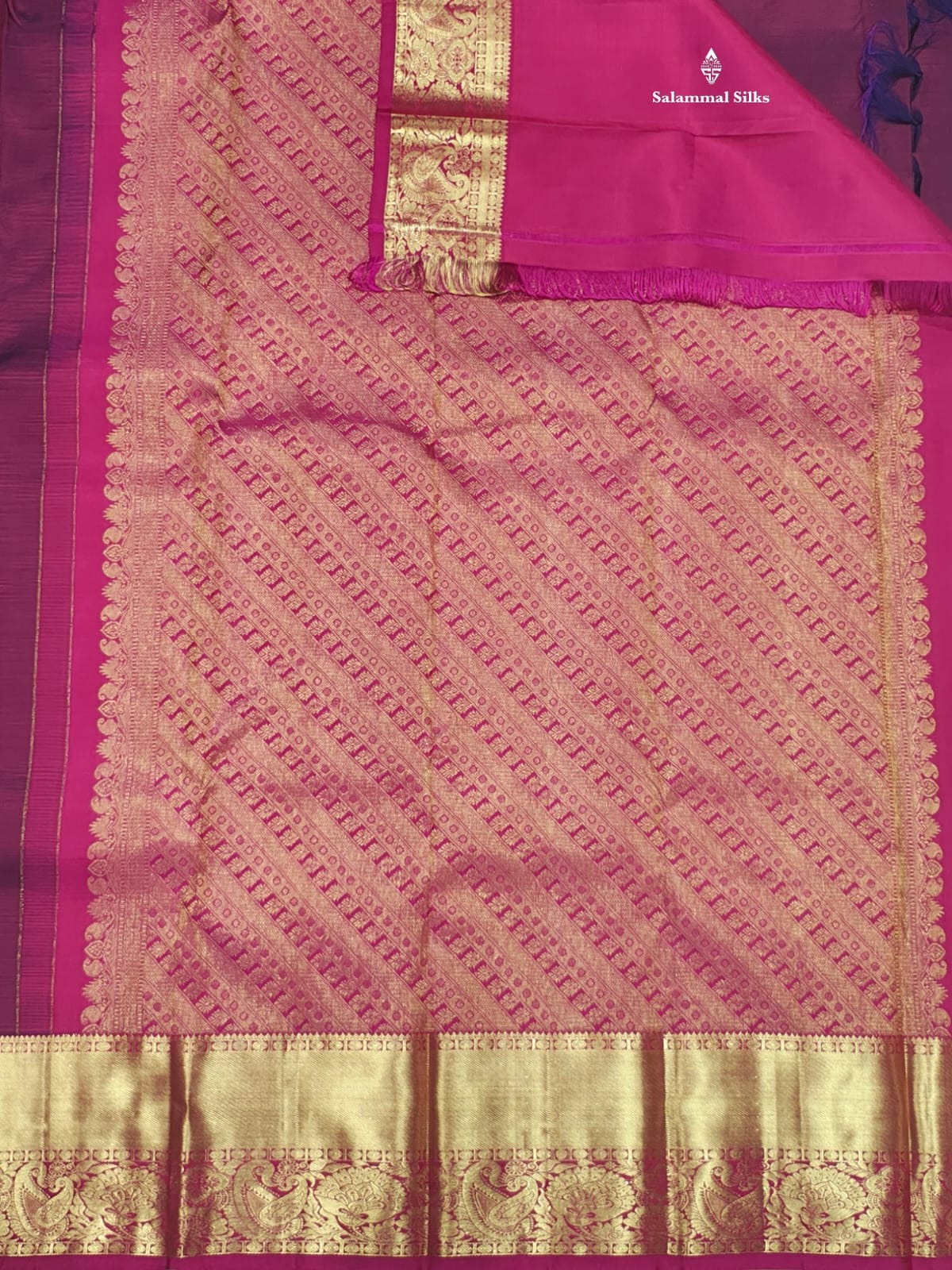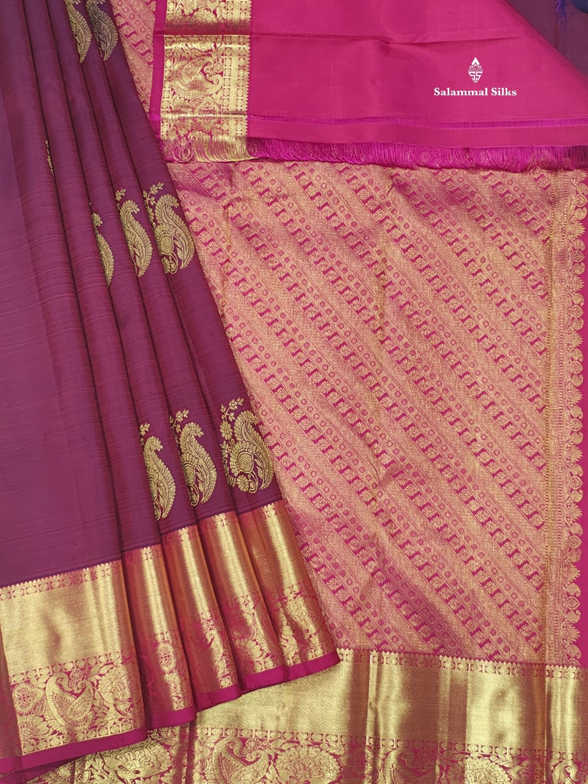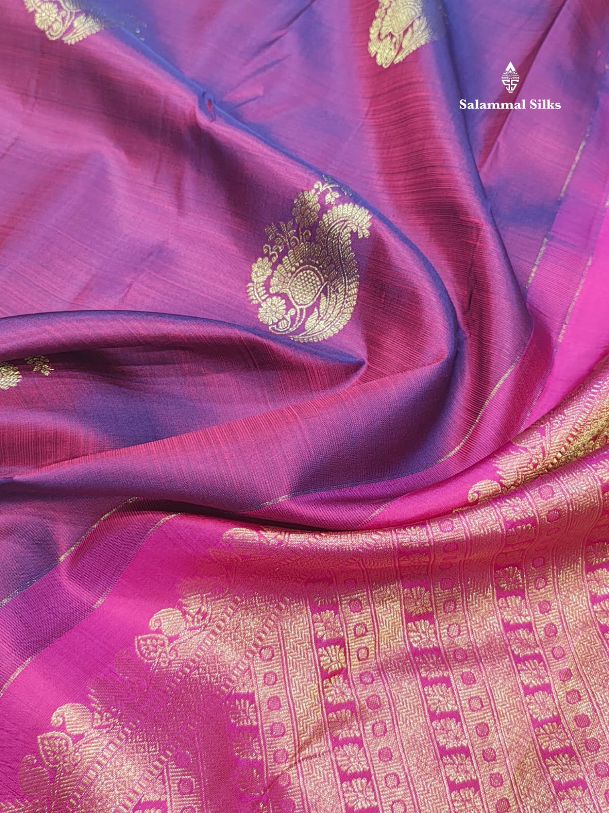 Kanjivaram Violet Pure Silk Saree WithMagenta Rose Border