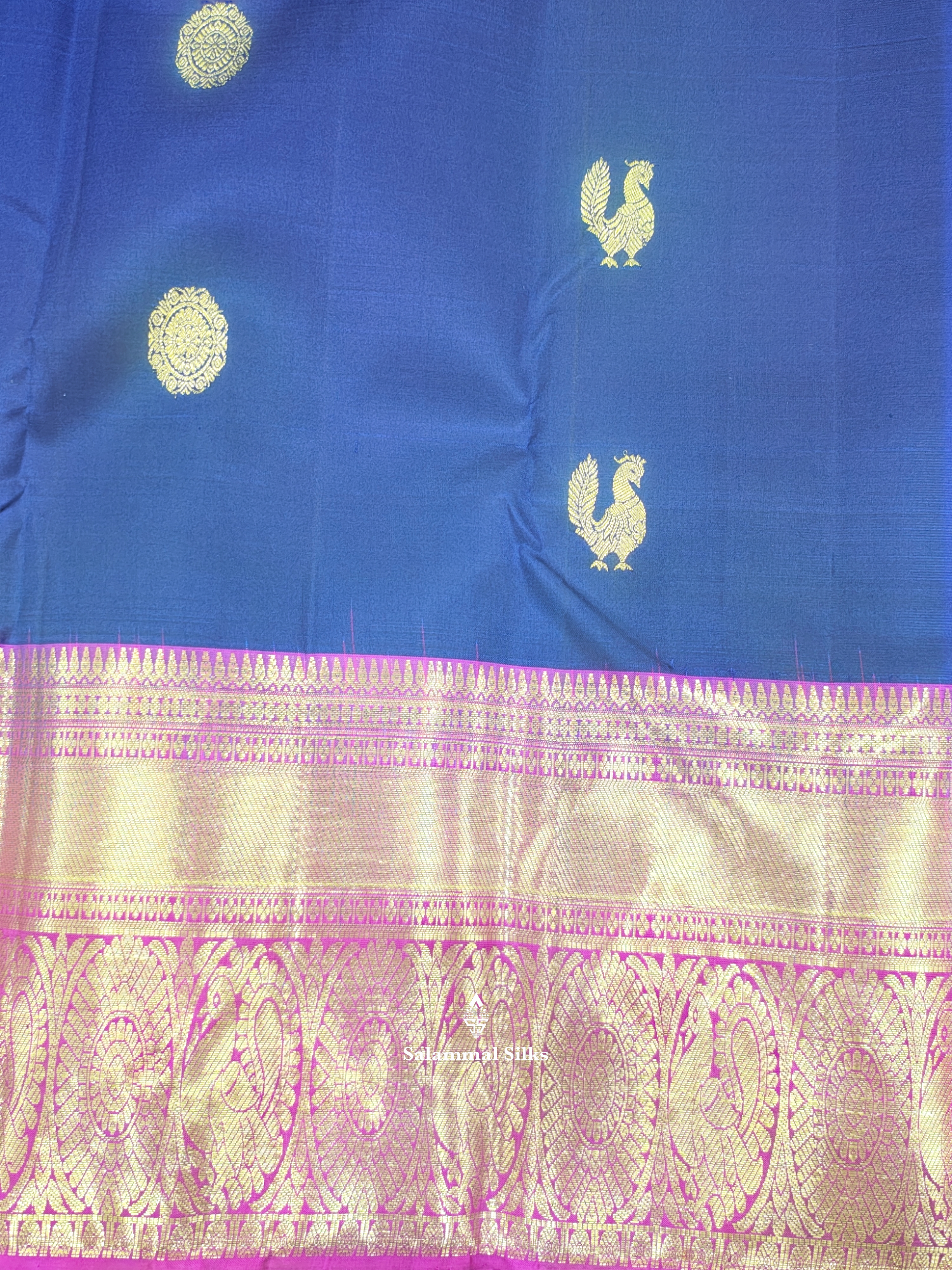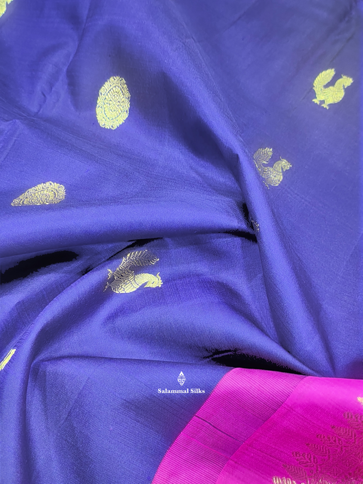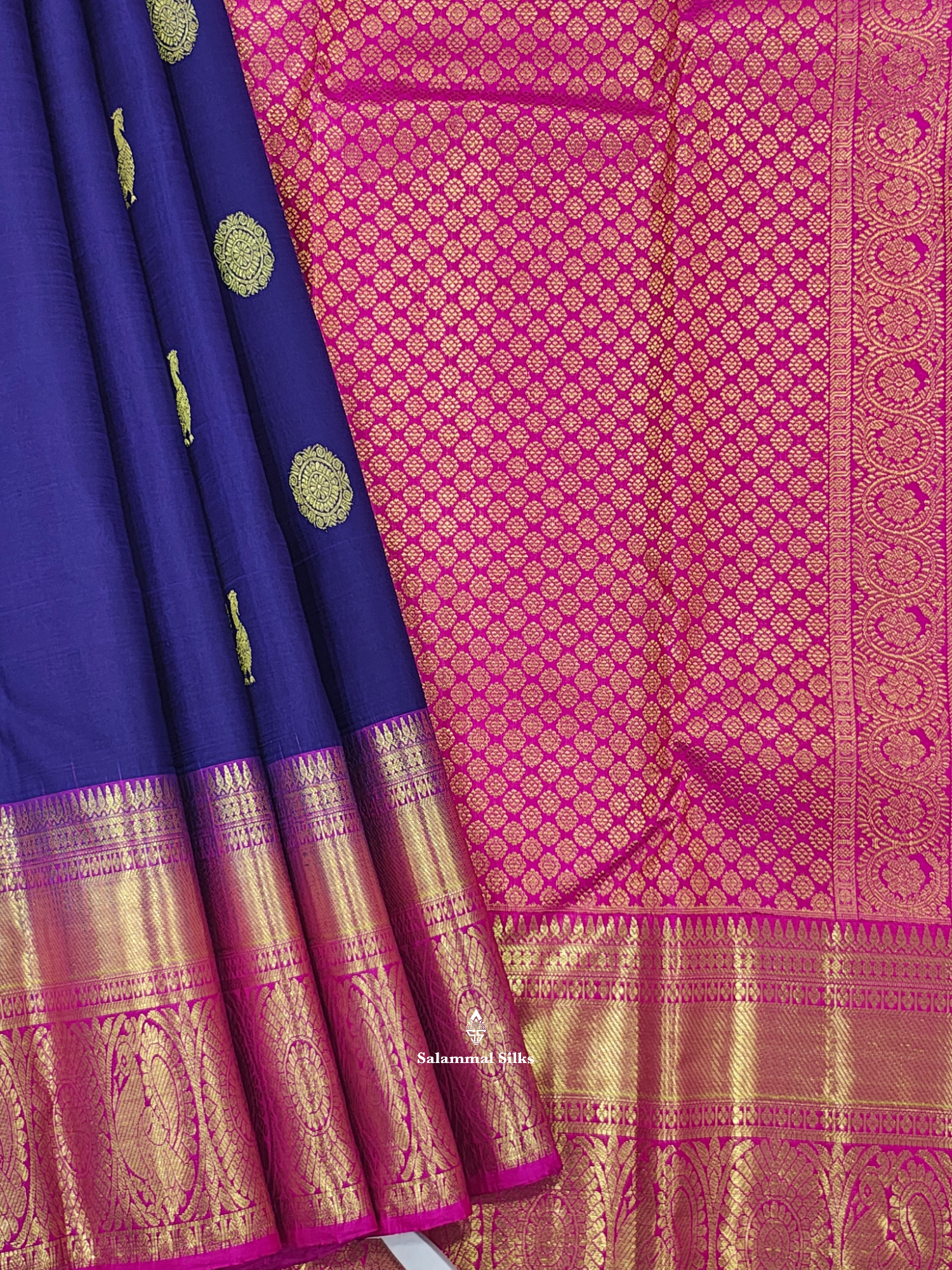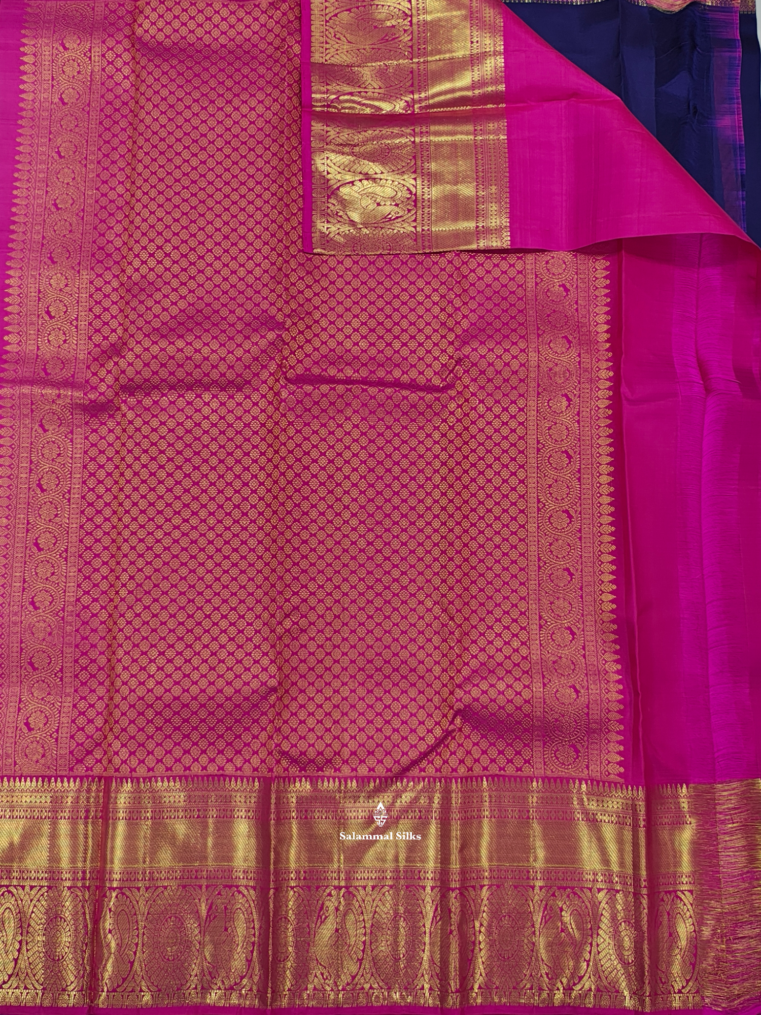 Kanjivaram Violet Traditional Pure Silk Saree With Magenta Rose Border
