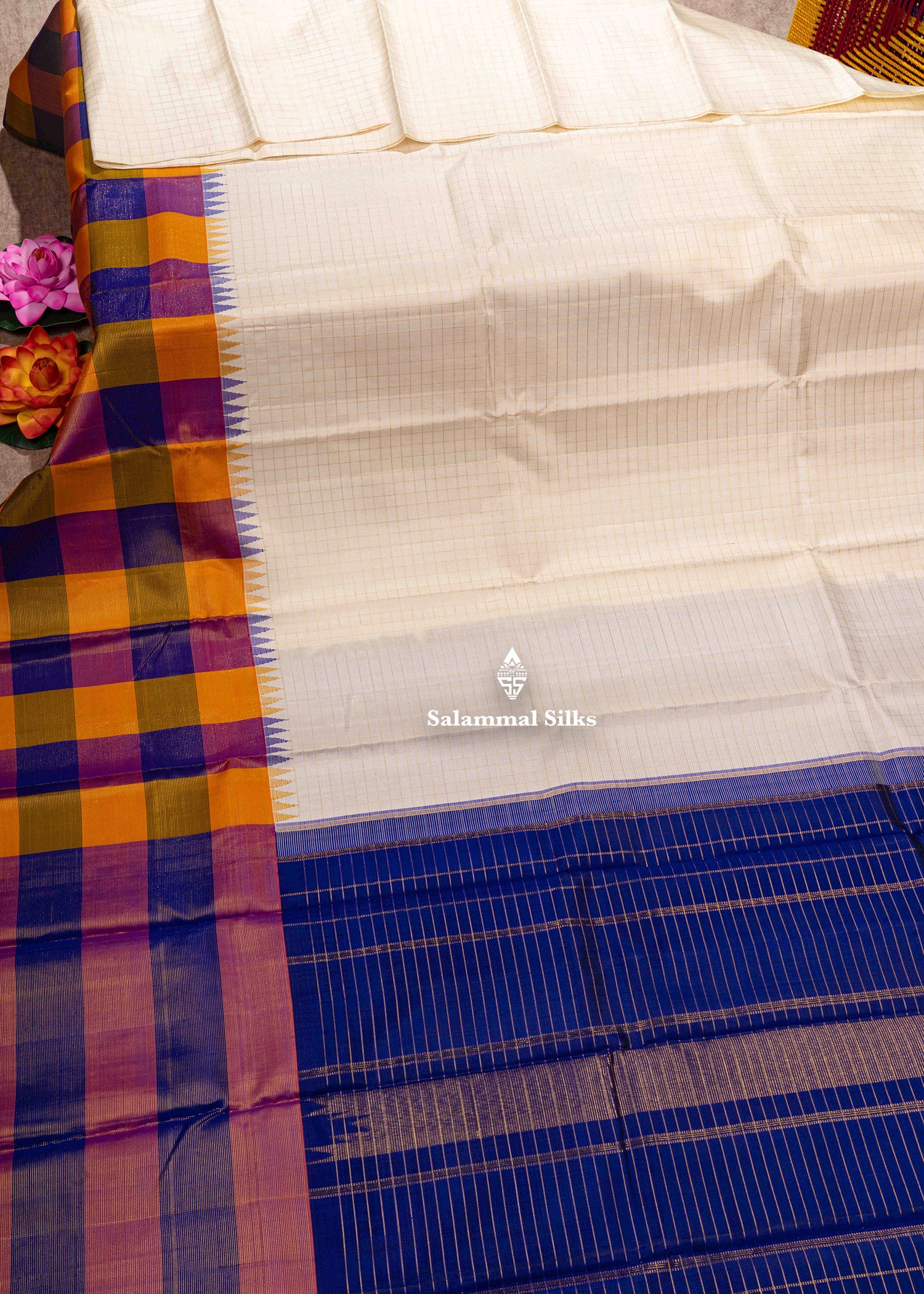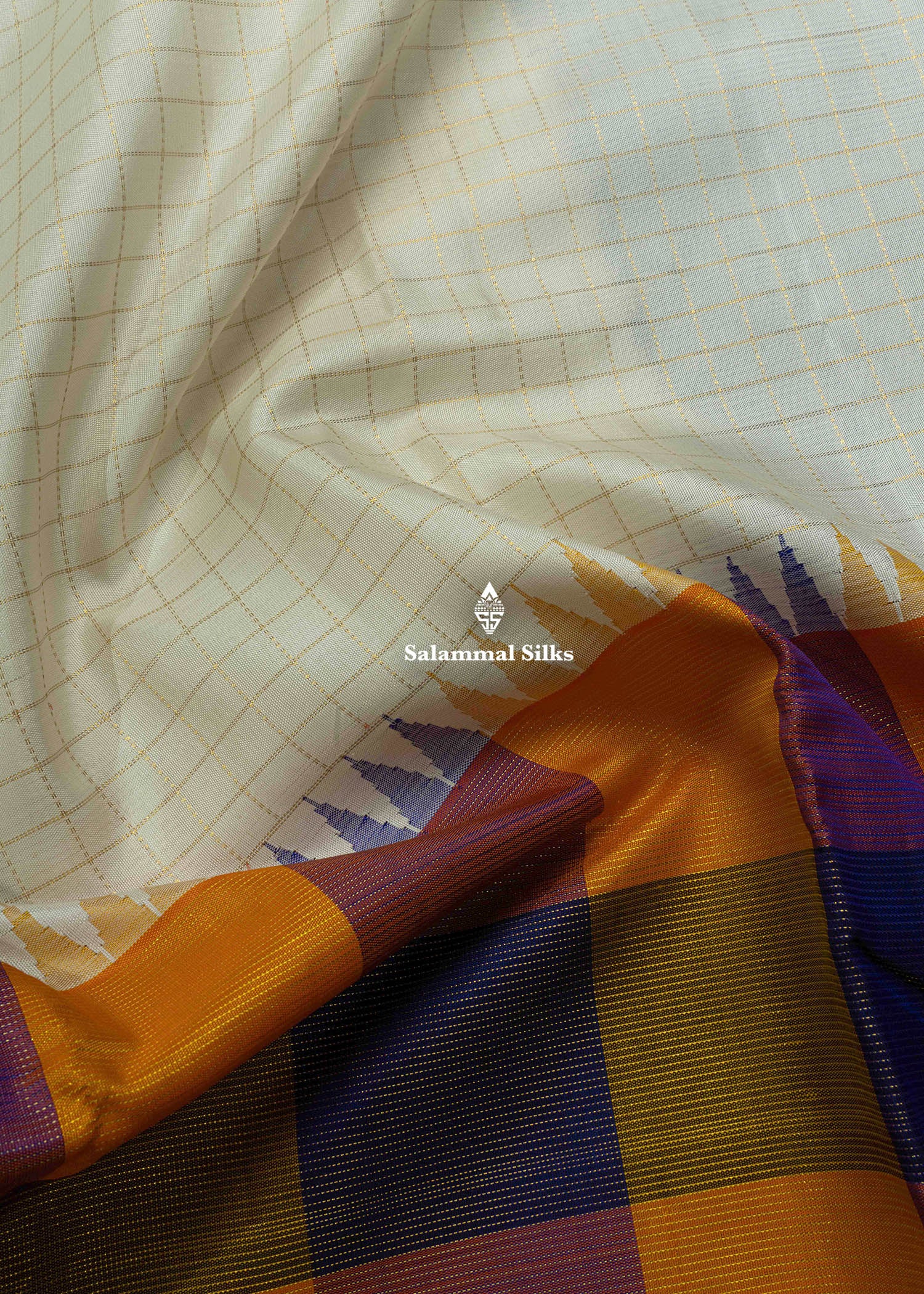 Kanjivaram White Zari Checks Pure Silk Saree With Paalum Pazham Kattam Border