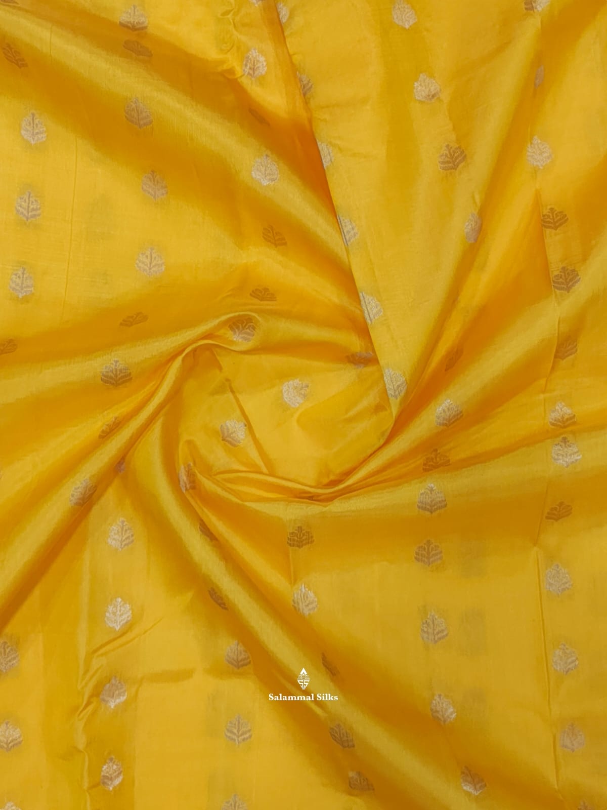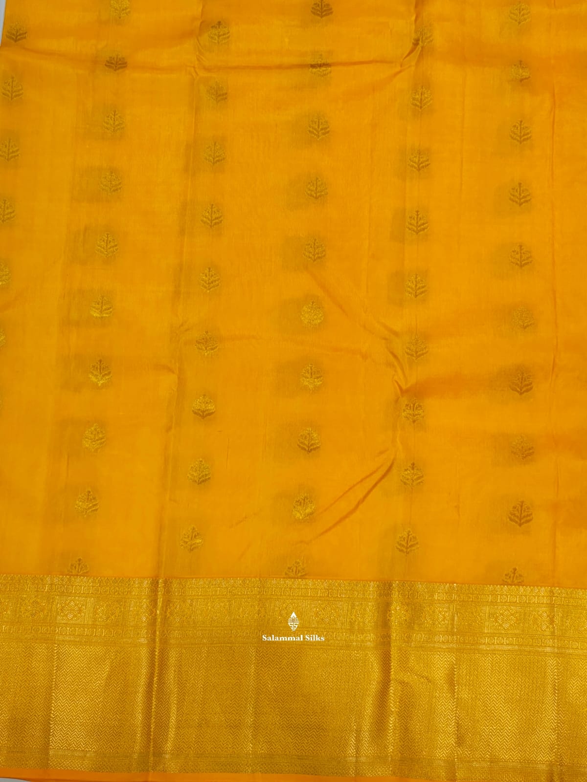 Salammal is known for its handloom sarees. In some sarees, there is cross-weaving between the body and the pallu, which is a sign of pure handloom sarees. This can be seen in Kanchipuram embossed sarees.