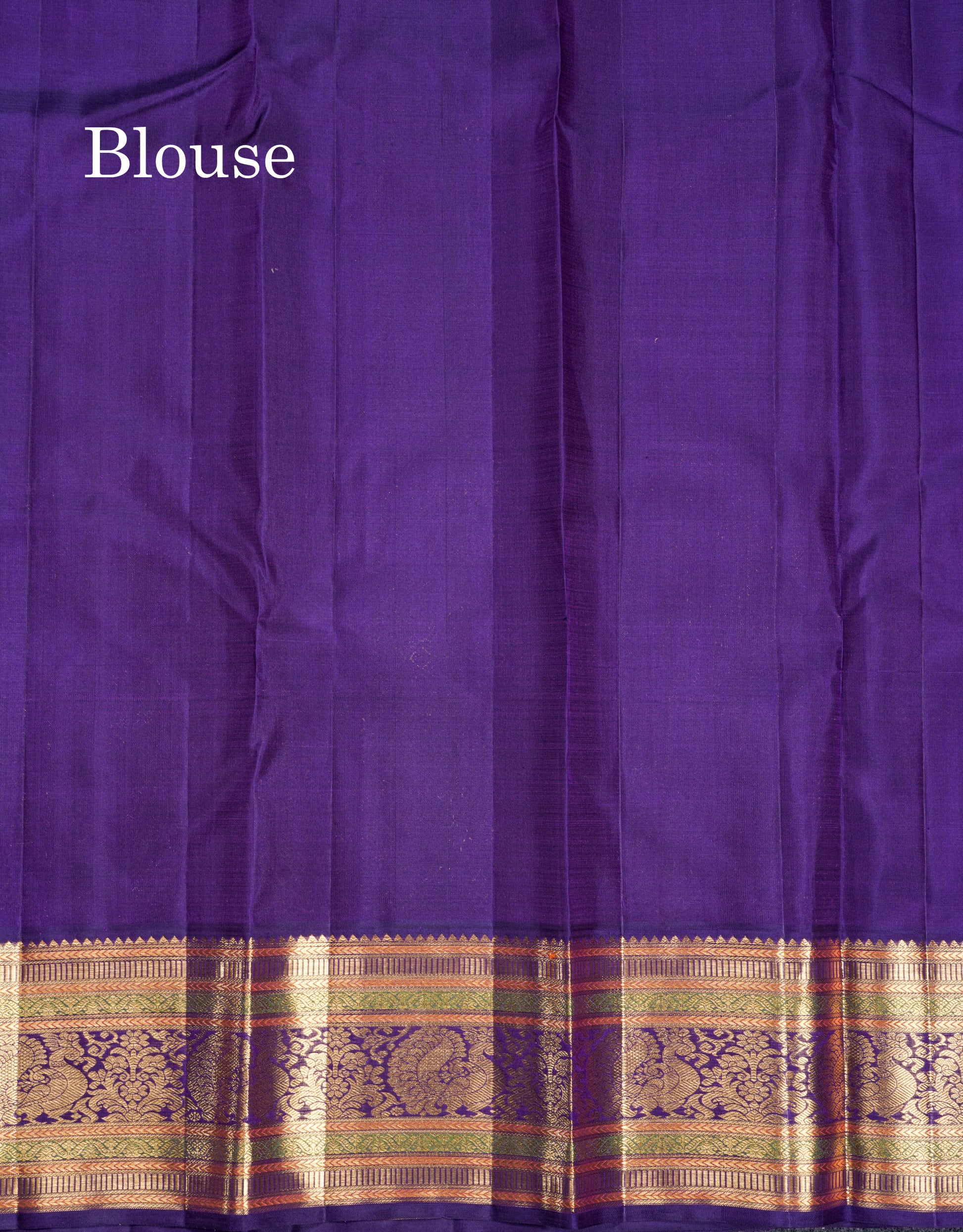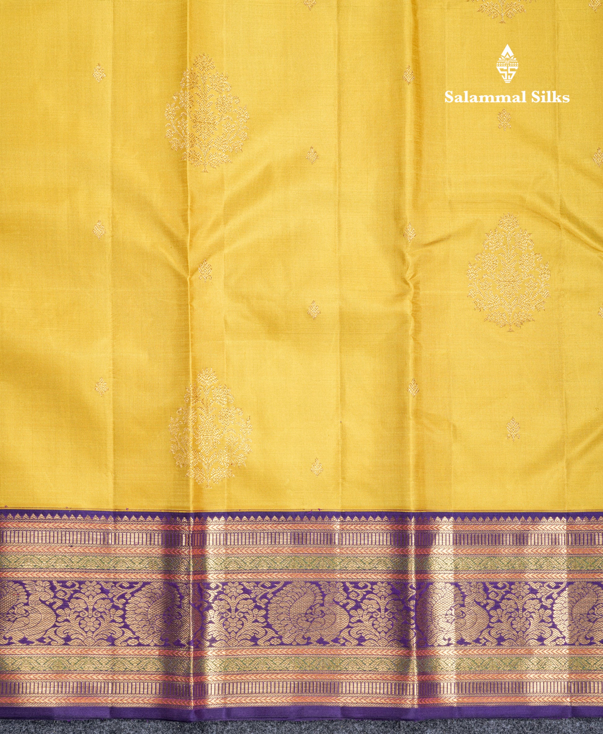 Korvai Mustard Yellow Pure Kanjivaram Silk Saree With Contrast Violet Traditional Border