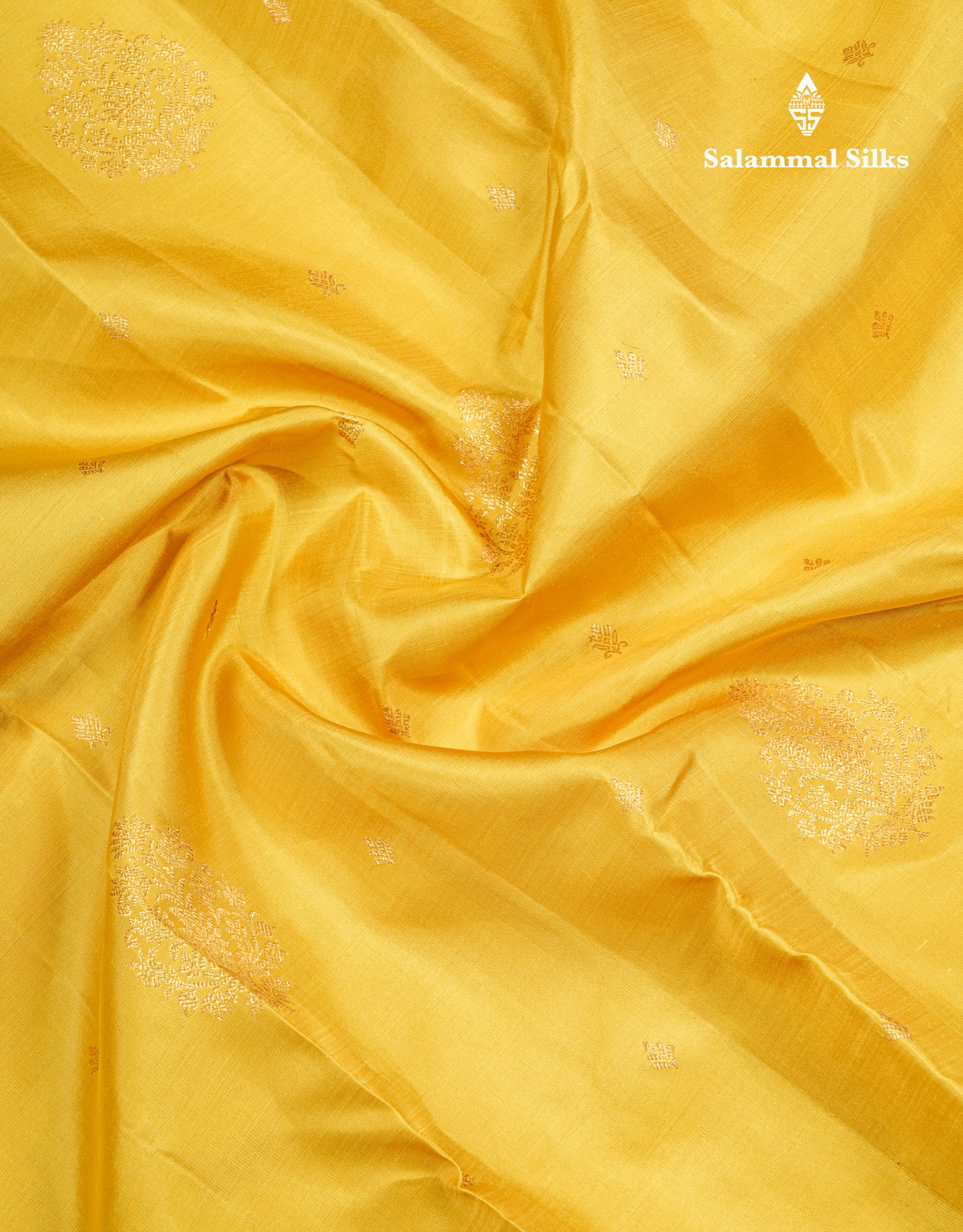 Salammal is known for its handloom sarees. In some sarees, there is cross-weaving between the body and the pallu, which is a sign of pure handloom sarees. This can be seen in Kanchipuram embossed sarees.