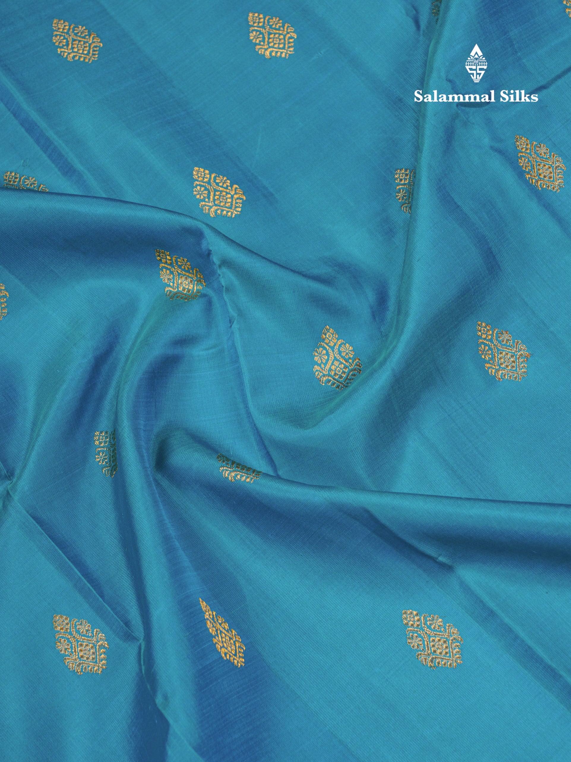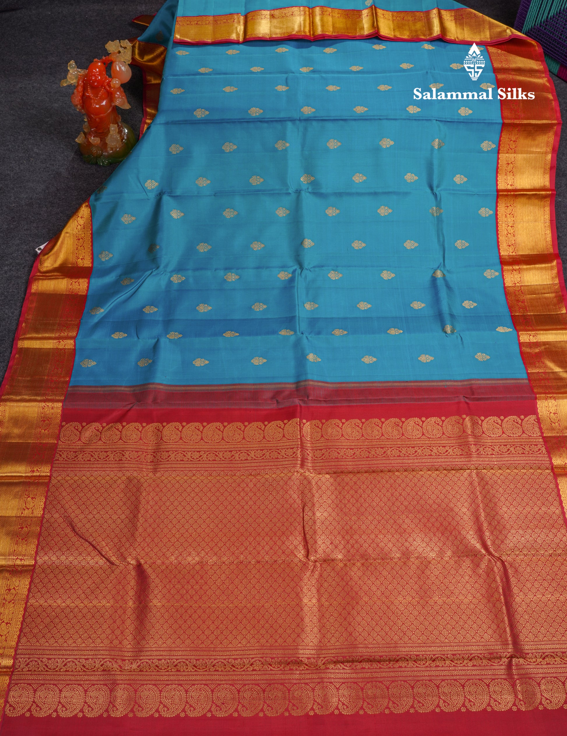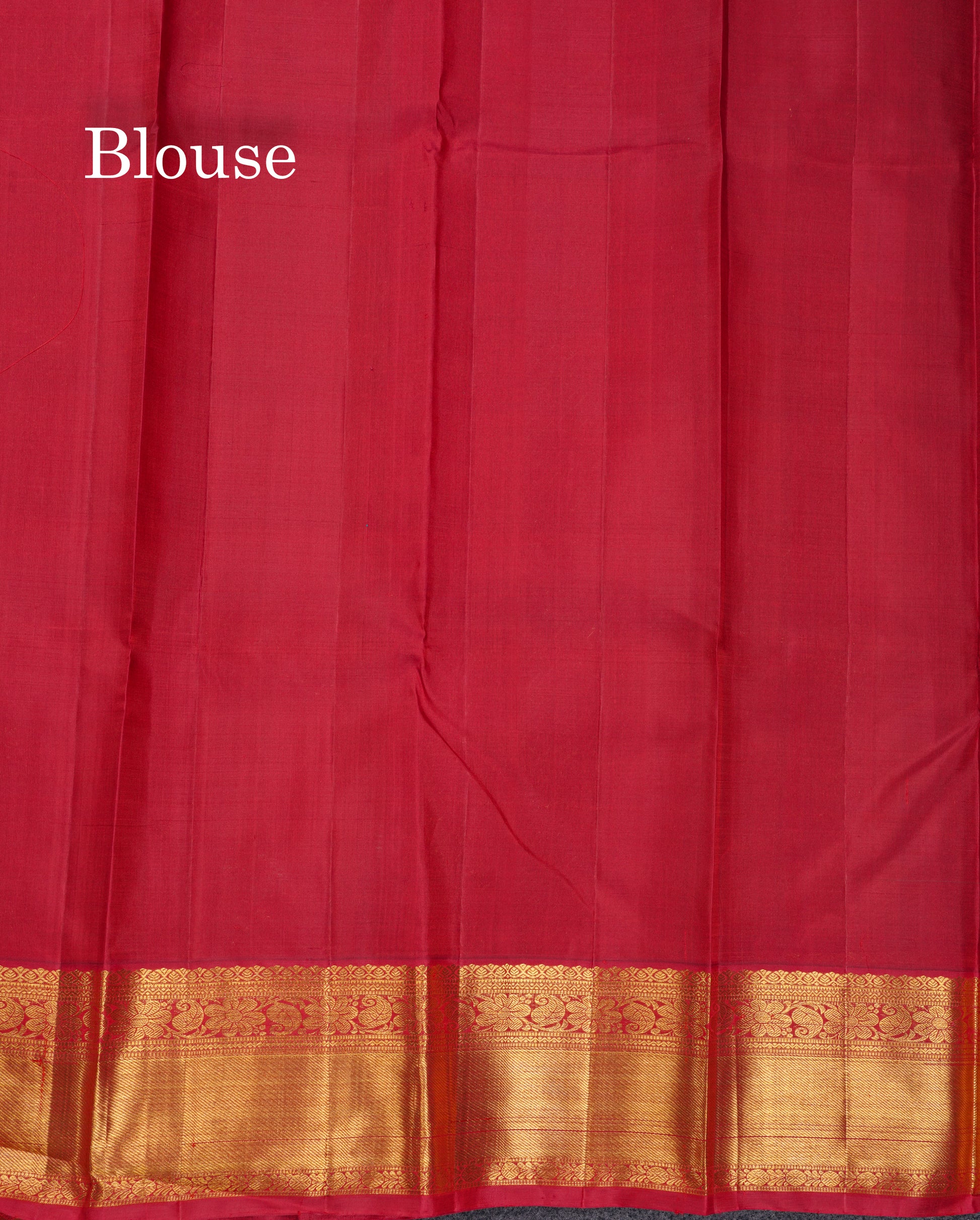 Korvai Ramar Blue Pure Kanjivaram Silk Saree With Contrast Reddish Maroon Border