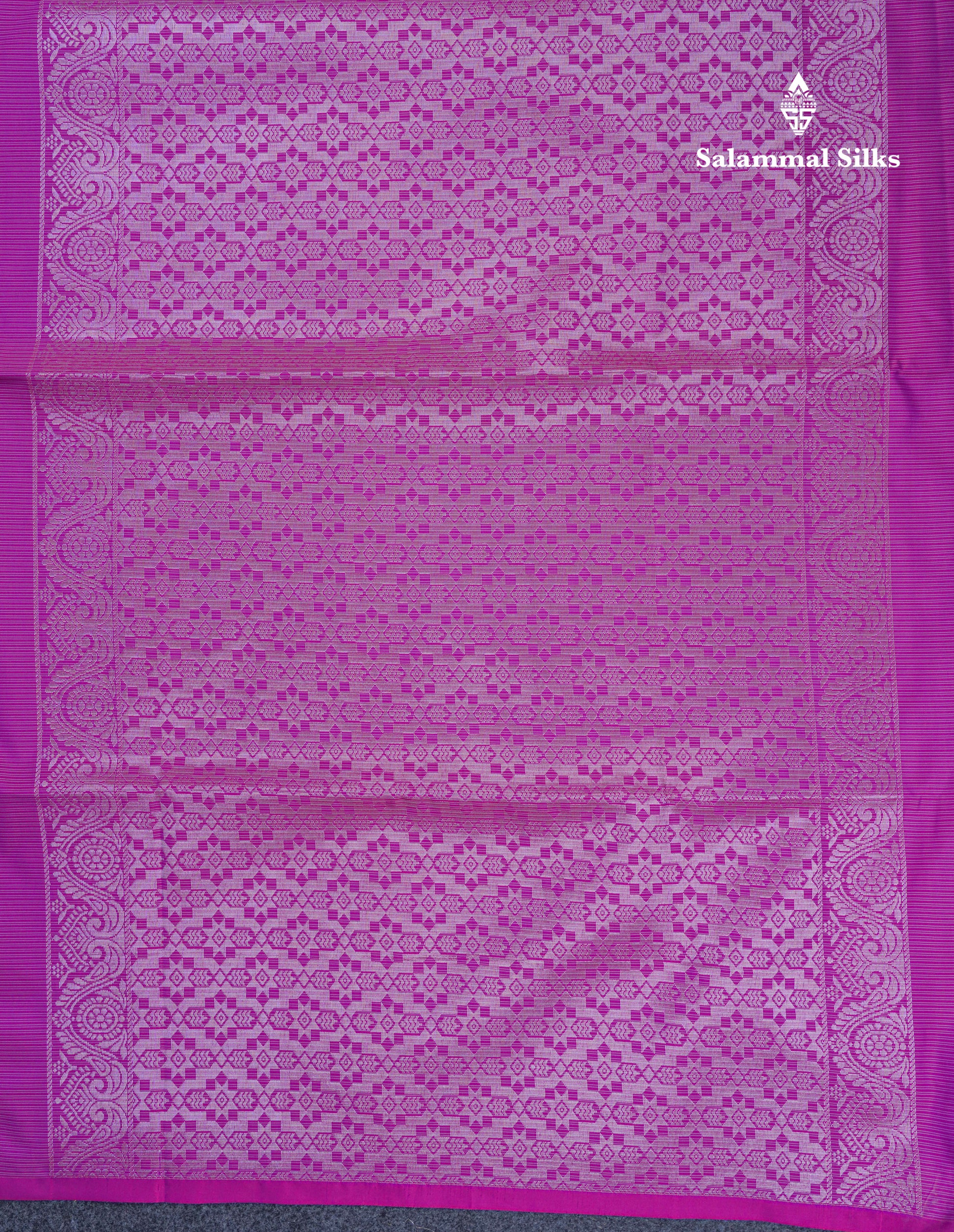 Salammal is known for its handloom sarees. In some sarees, there is cross-weaving between the body and the pallu, which is a sign of pure handloom sarees. This can be seen in Kanchipuram embossed sarees.