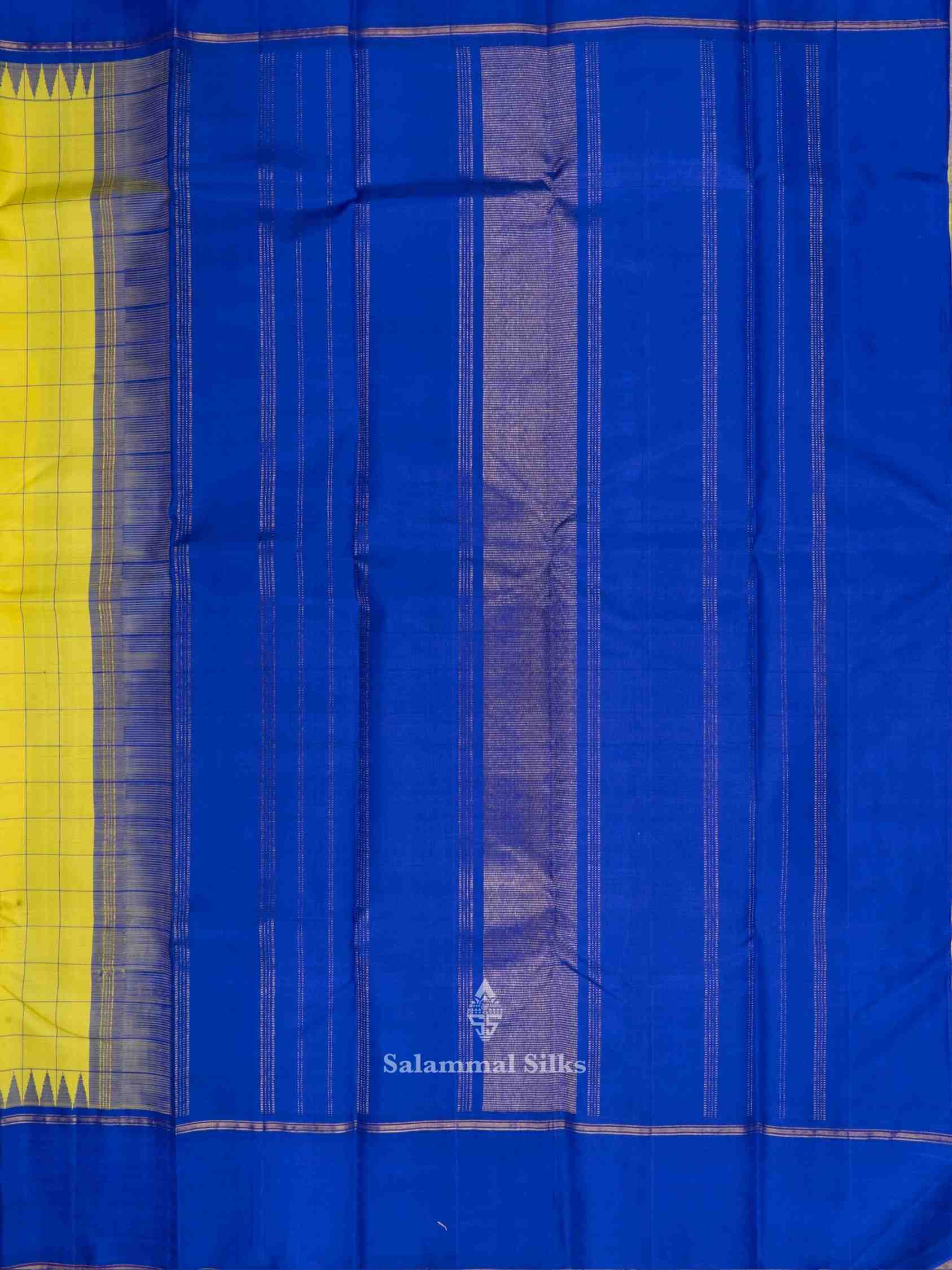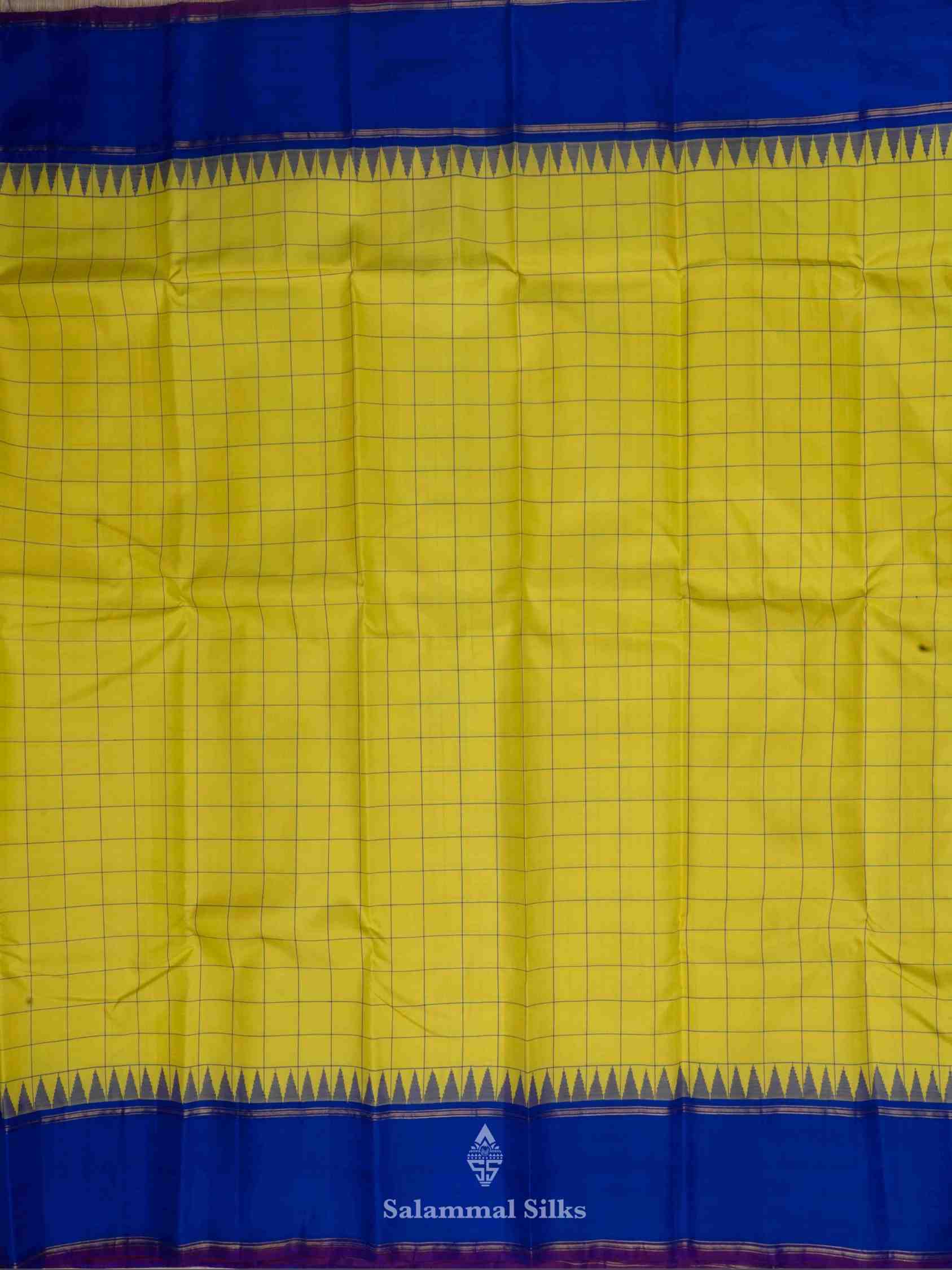 Lemon Yellow Kanjivaram Pure Silk Saree Ink Blue Temple Border with Blouse