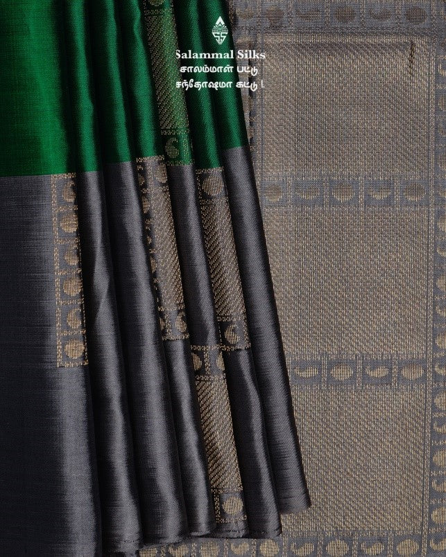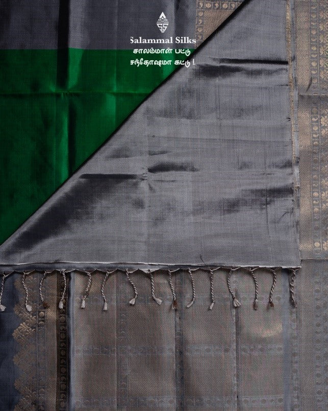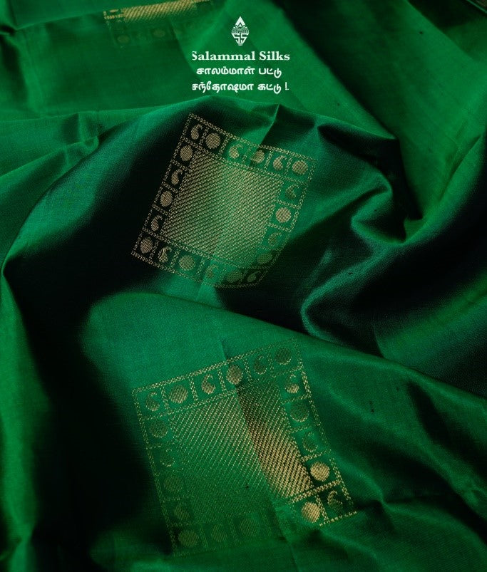 Salammal is known for its handloom sarees. In some sarees, there is cross-weaving between the body and the pallu, which is a sign of pure handloom sarees. This can be seen in Kanchipuram embossed sarees.