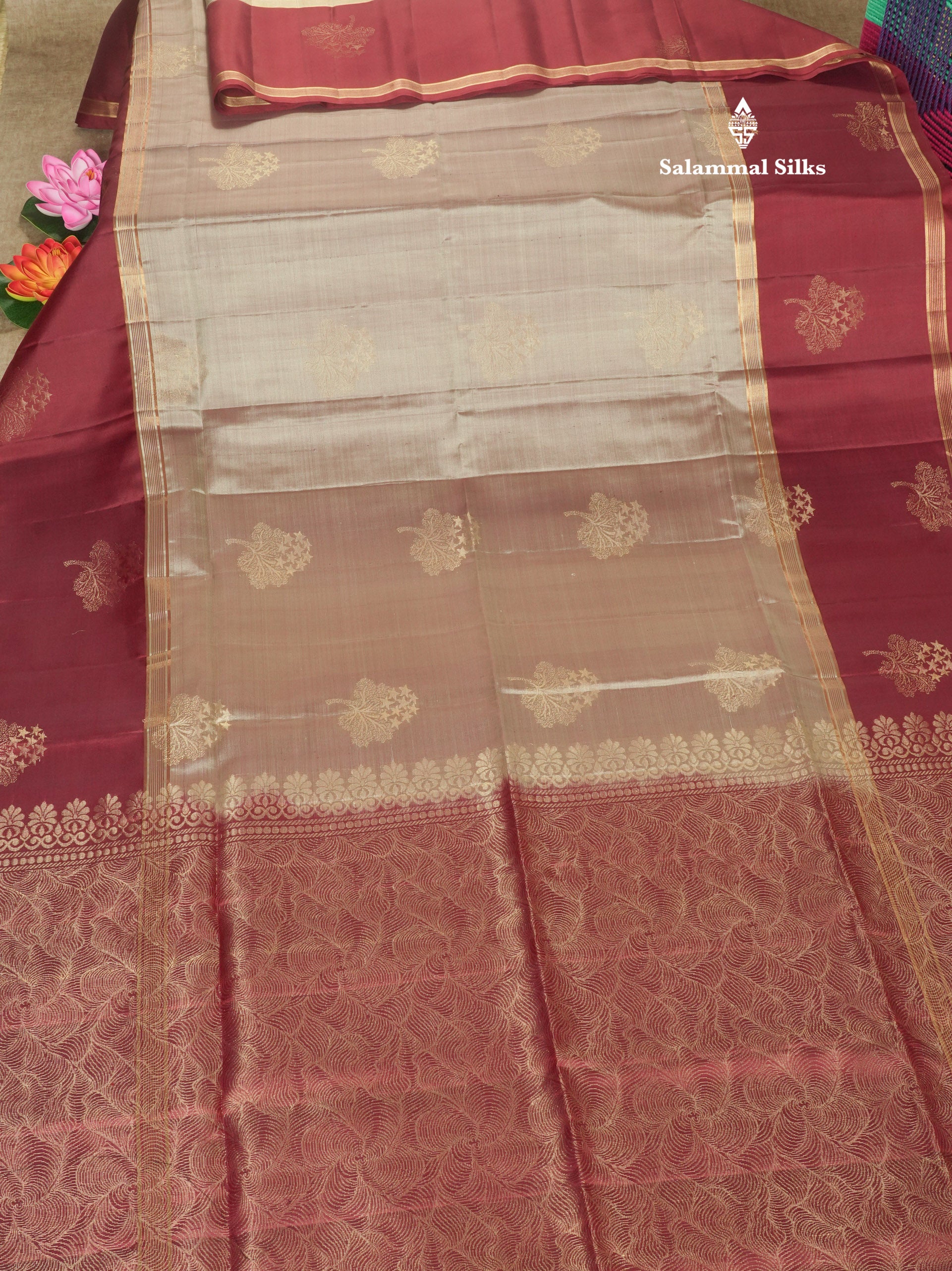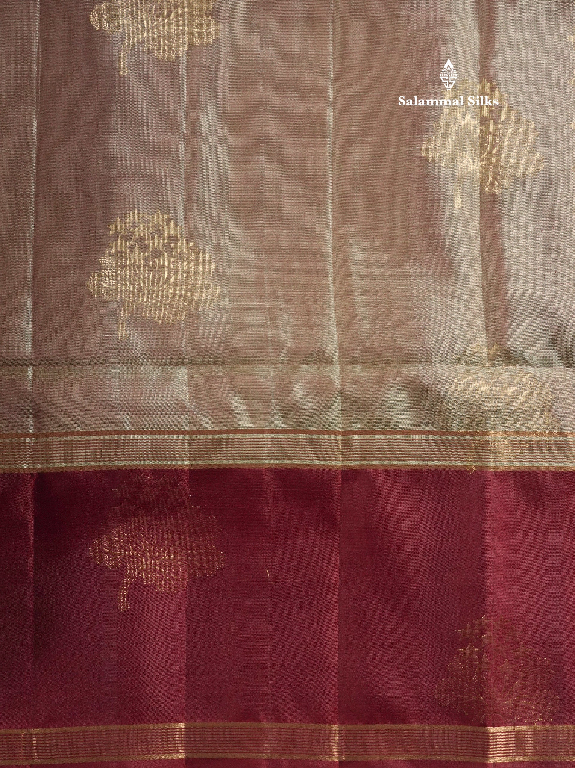 Salammal is known for its handloom sarees. In some sarees, there is cross-weaving between the body and the pallu, which is a sign of pure handloom sarees. This can be seen in Kanchipuram embossed sarees.