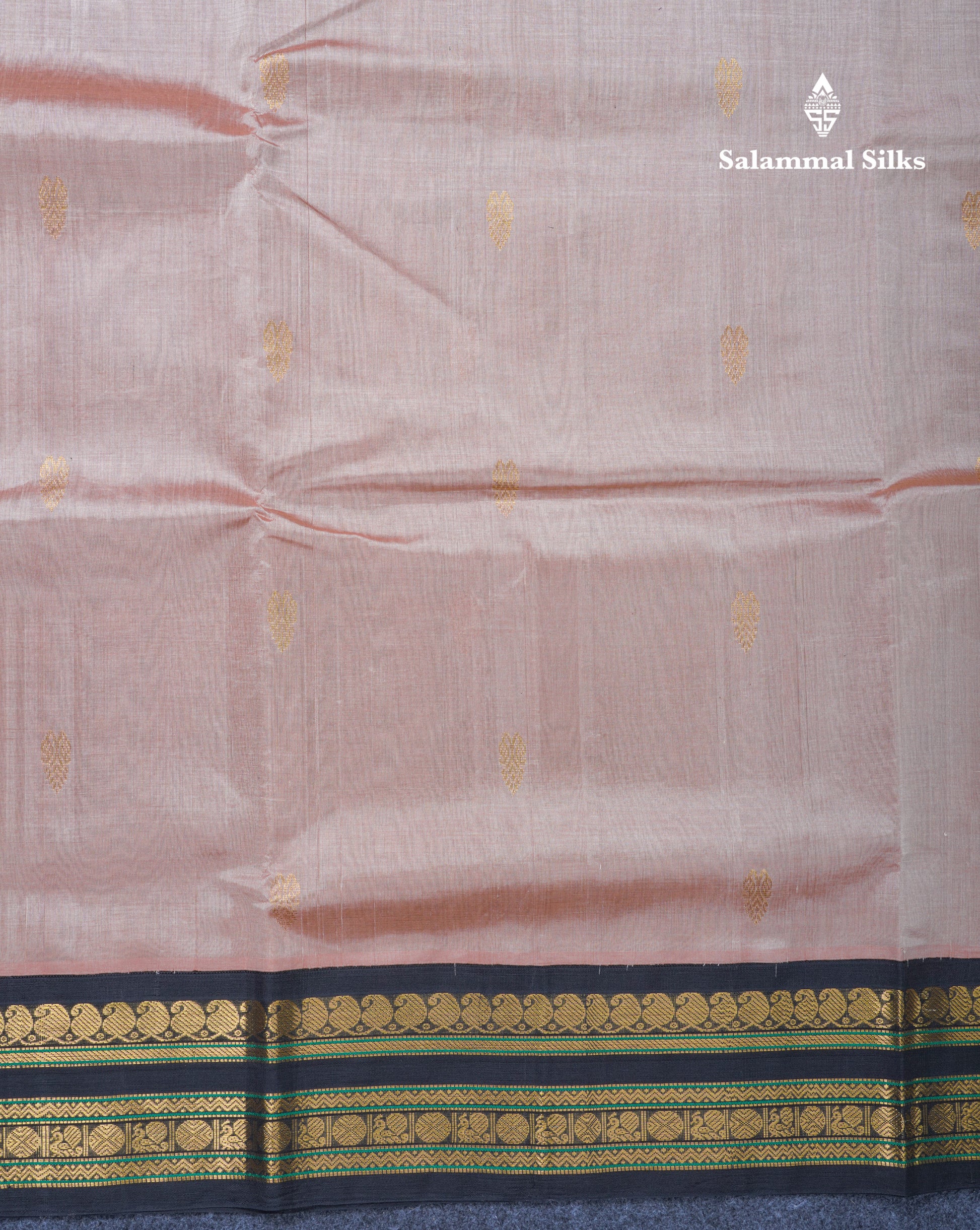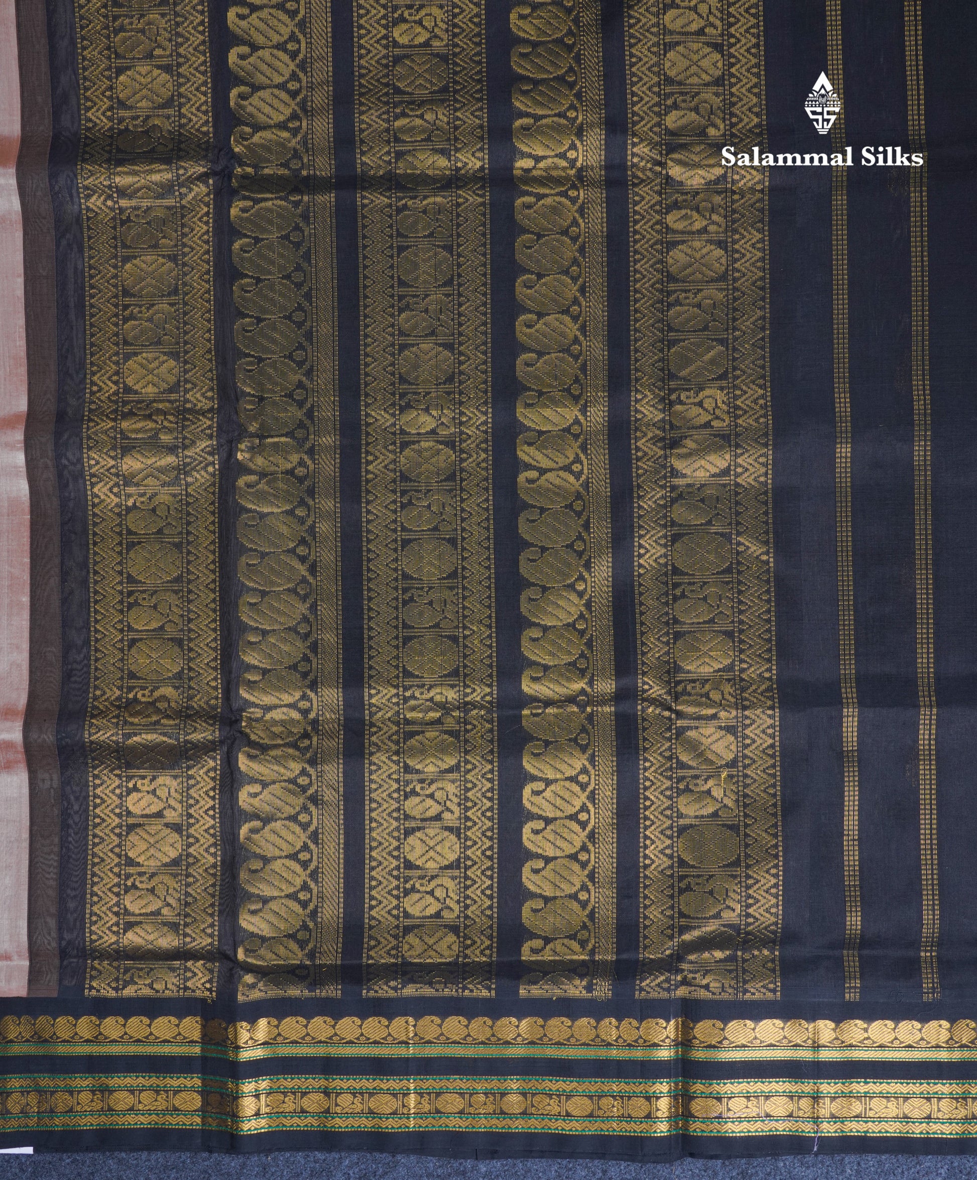 Light Brown Pure Silk Cotton Saree With Contrast Black Traditional Border