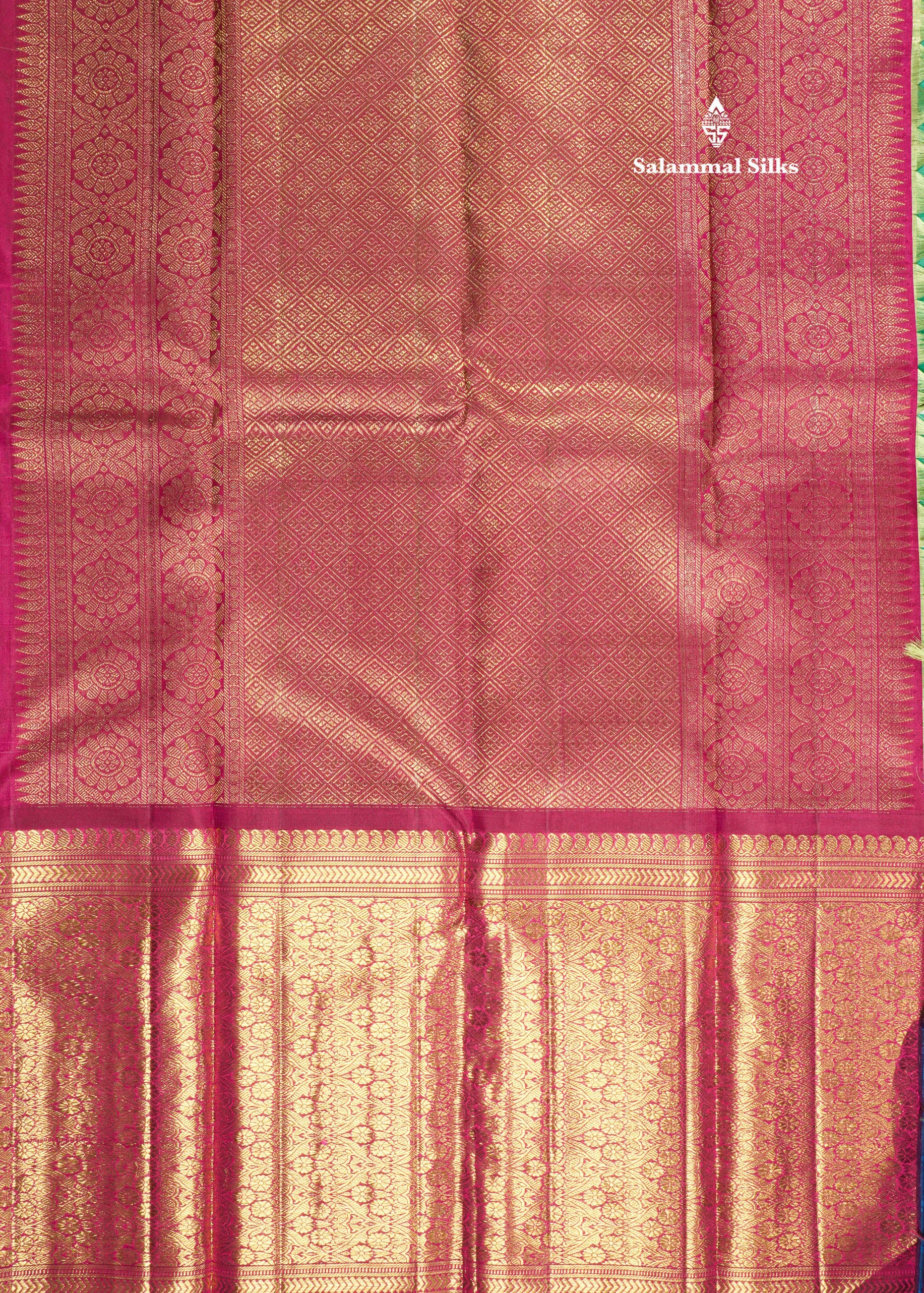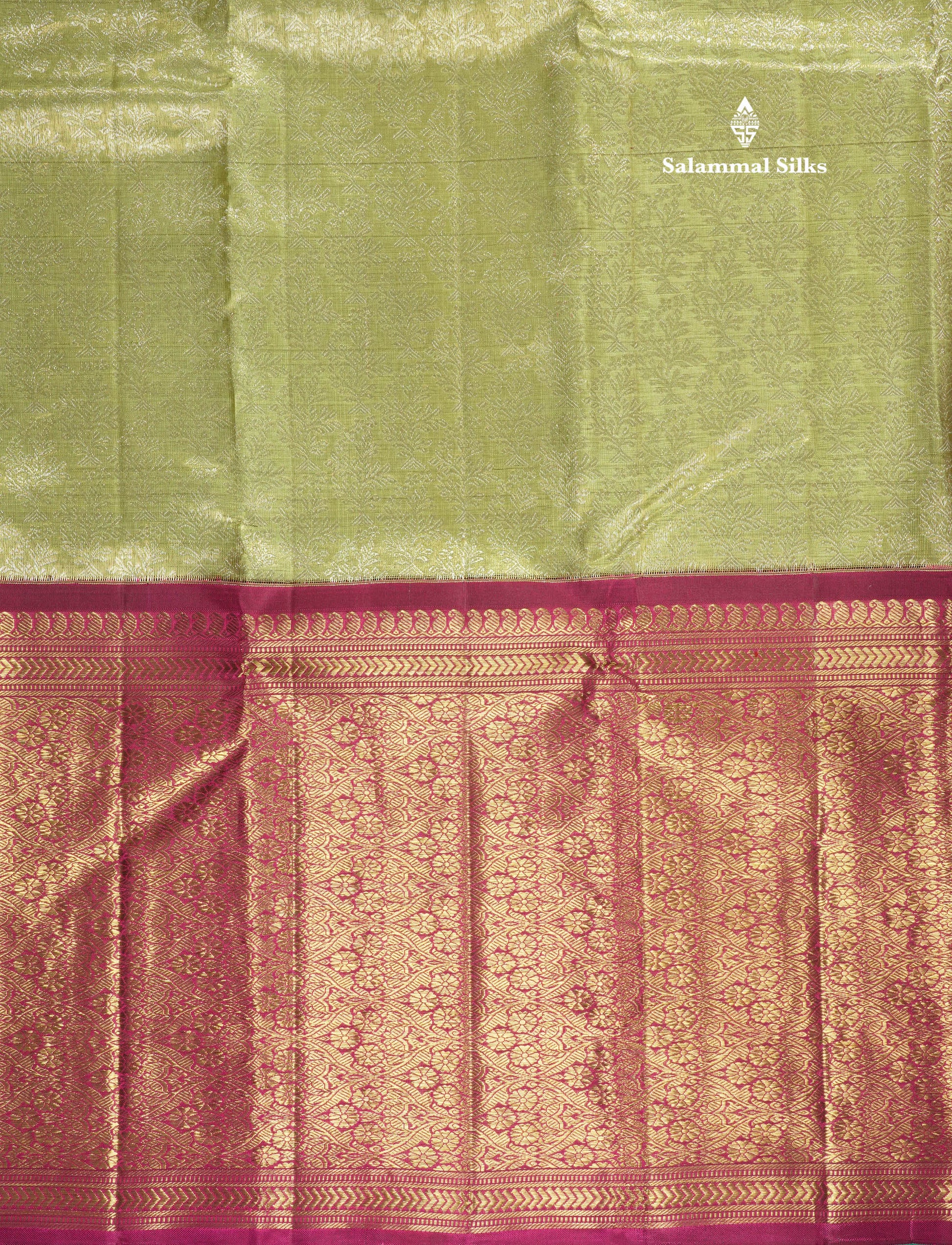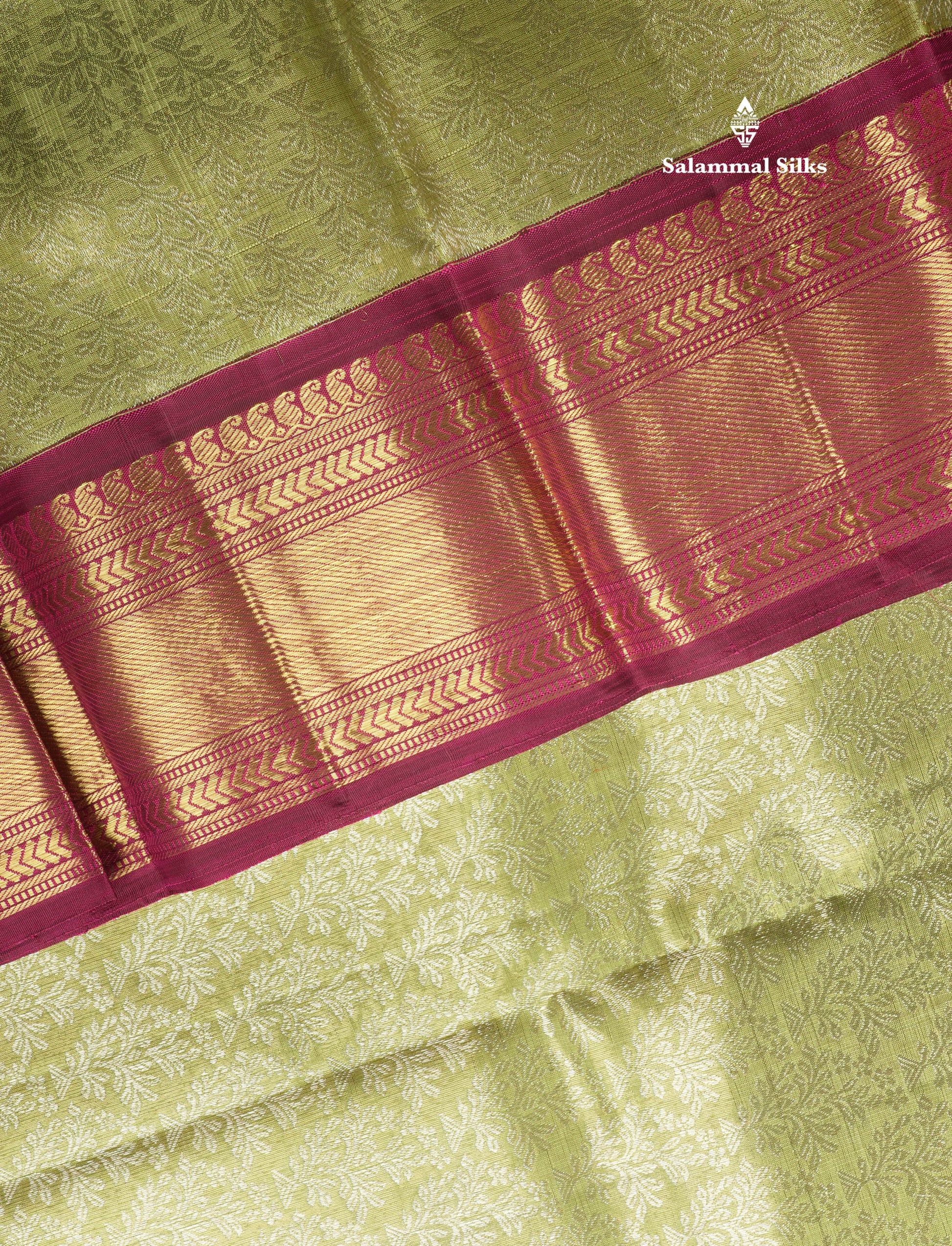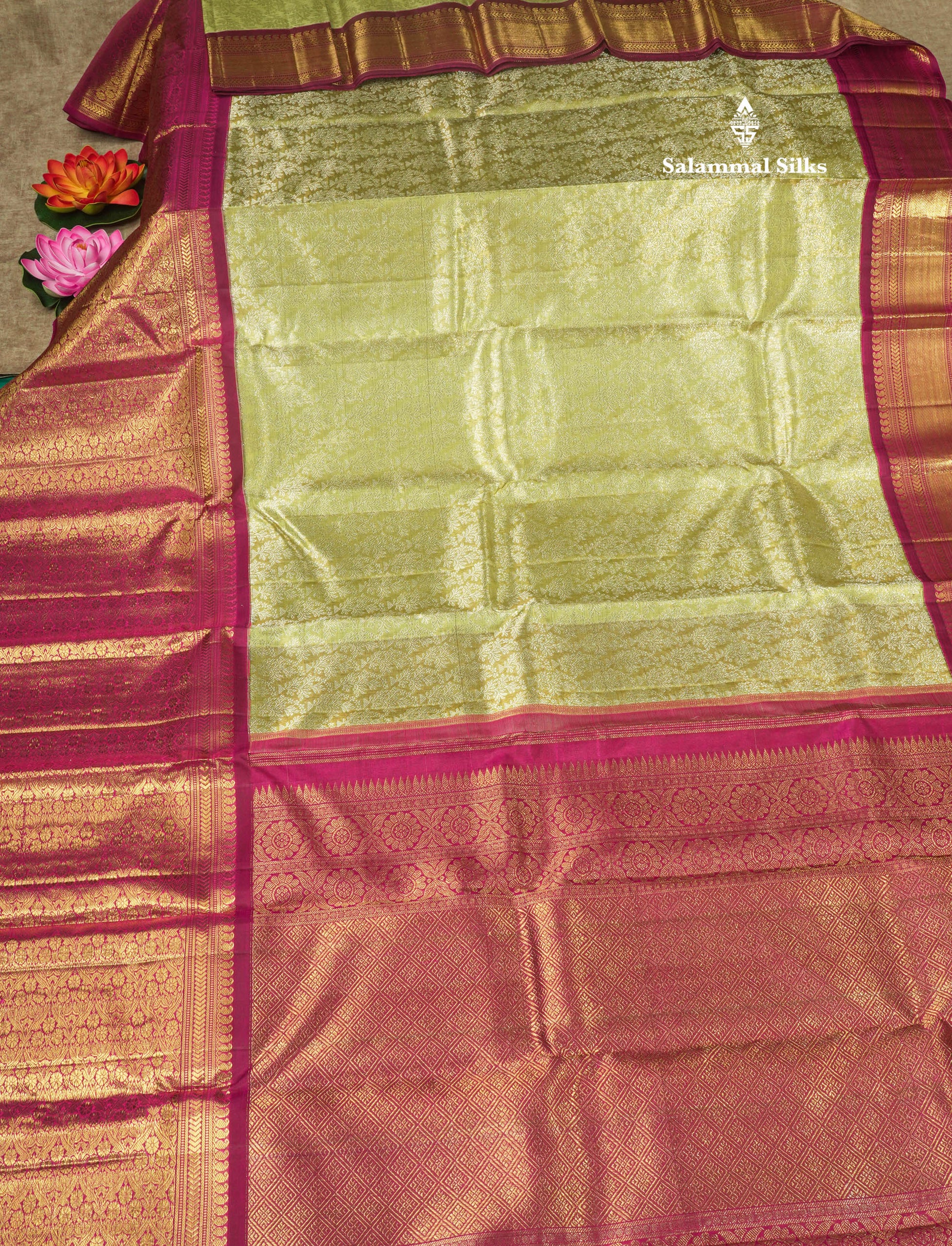 Light Elaichi Green Pure Kanjivaram Silk Saree (2G) Zari With Contrast Long Magenta Border