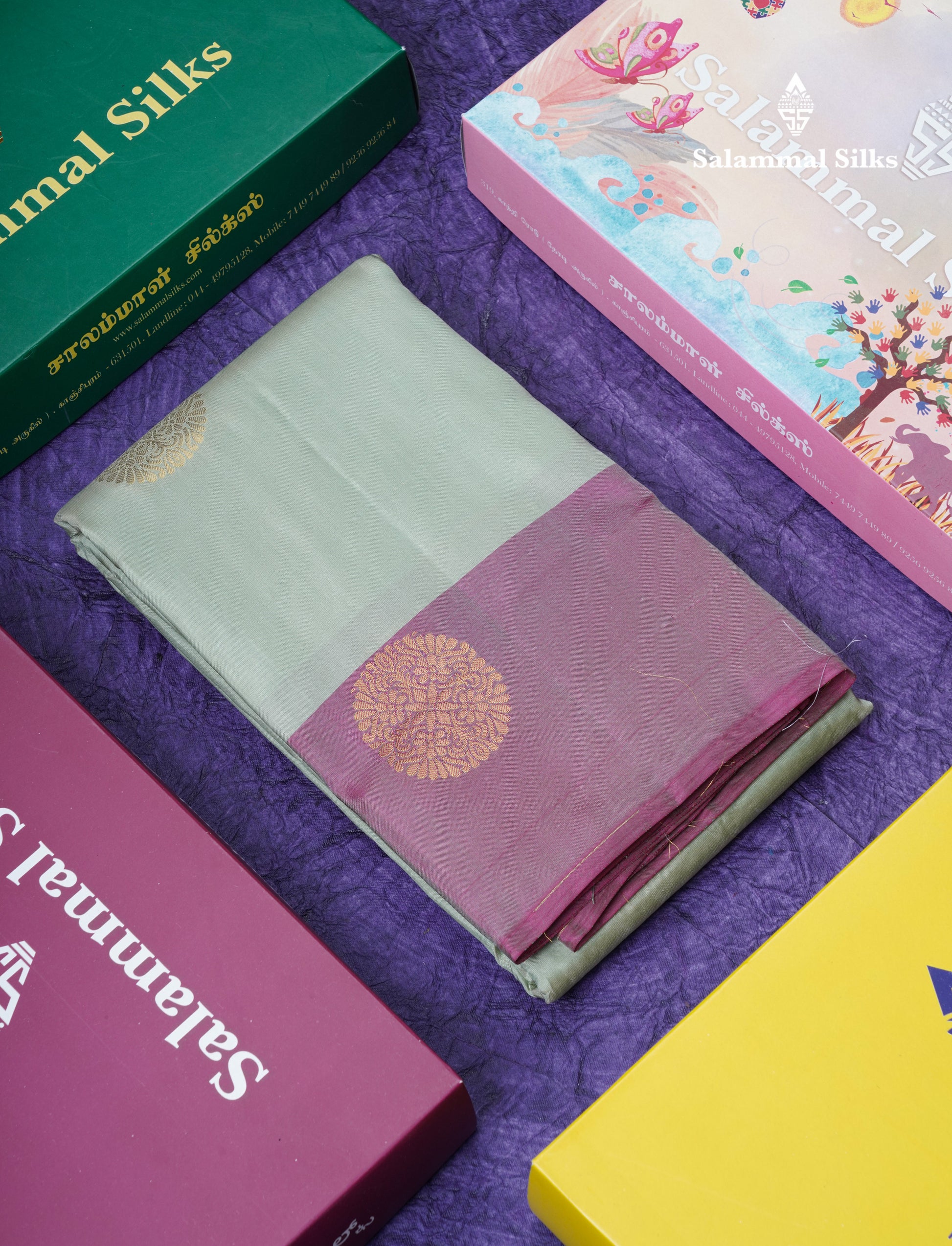 Light Elaichi Green Puremix Silk Saree With Contrast Dual Tone Purple Border