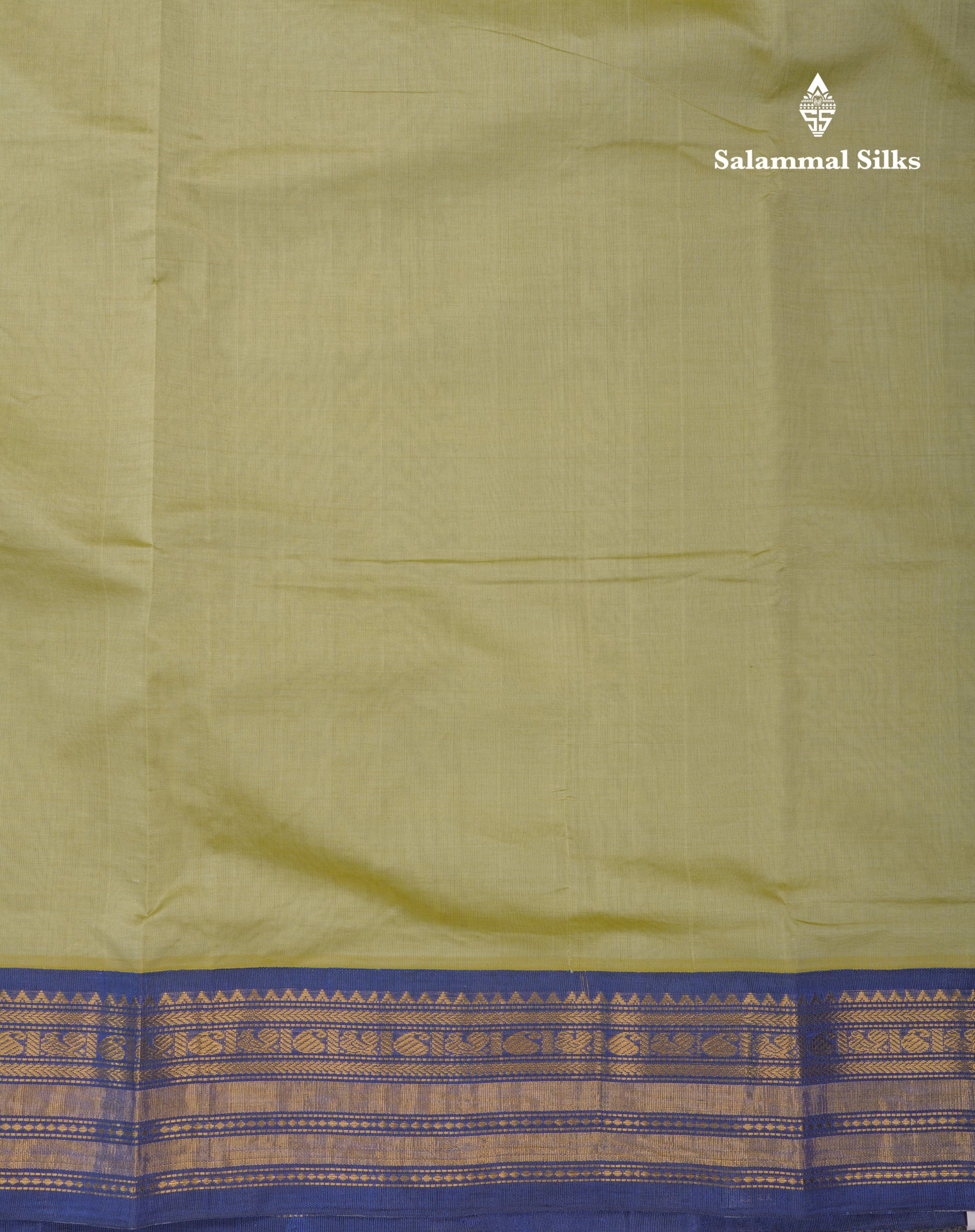 Light Elaichi Green Semi Silk Cotton Saree With Contrast Navy Blue Traditional Border