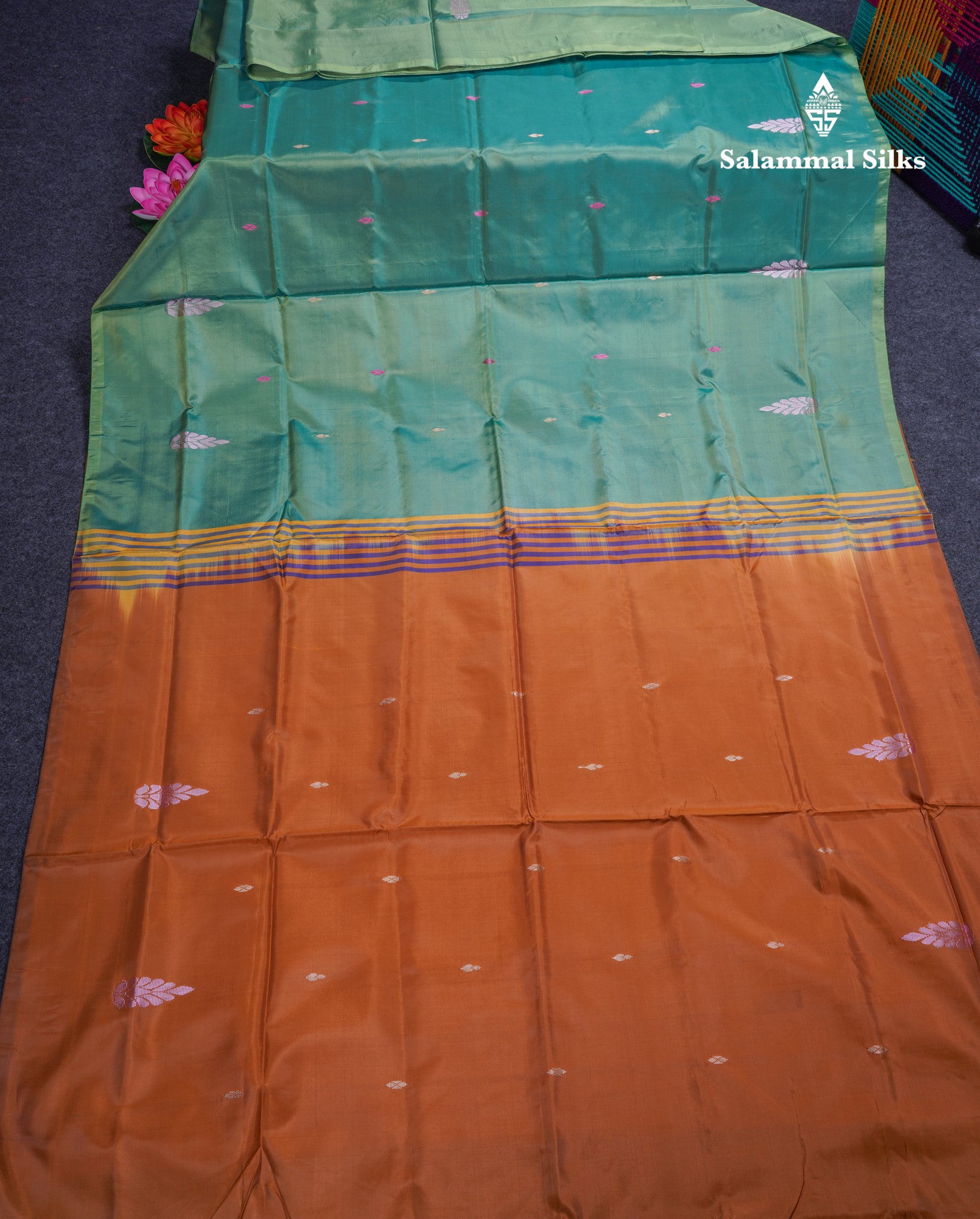 Light Green Banana Pinth Saree (Vaazhainaar Pattu) With Contrast Brown Blouse