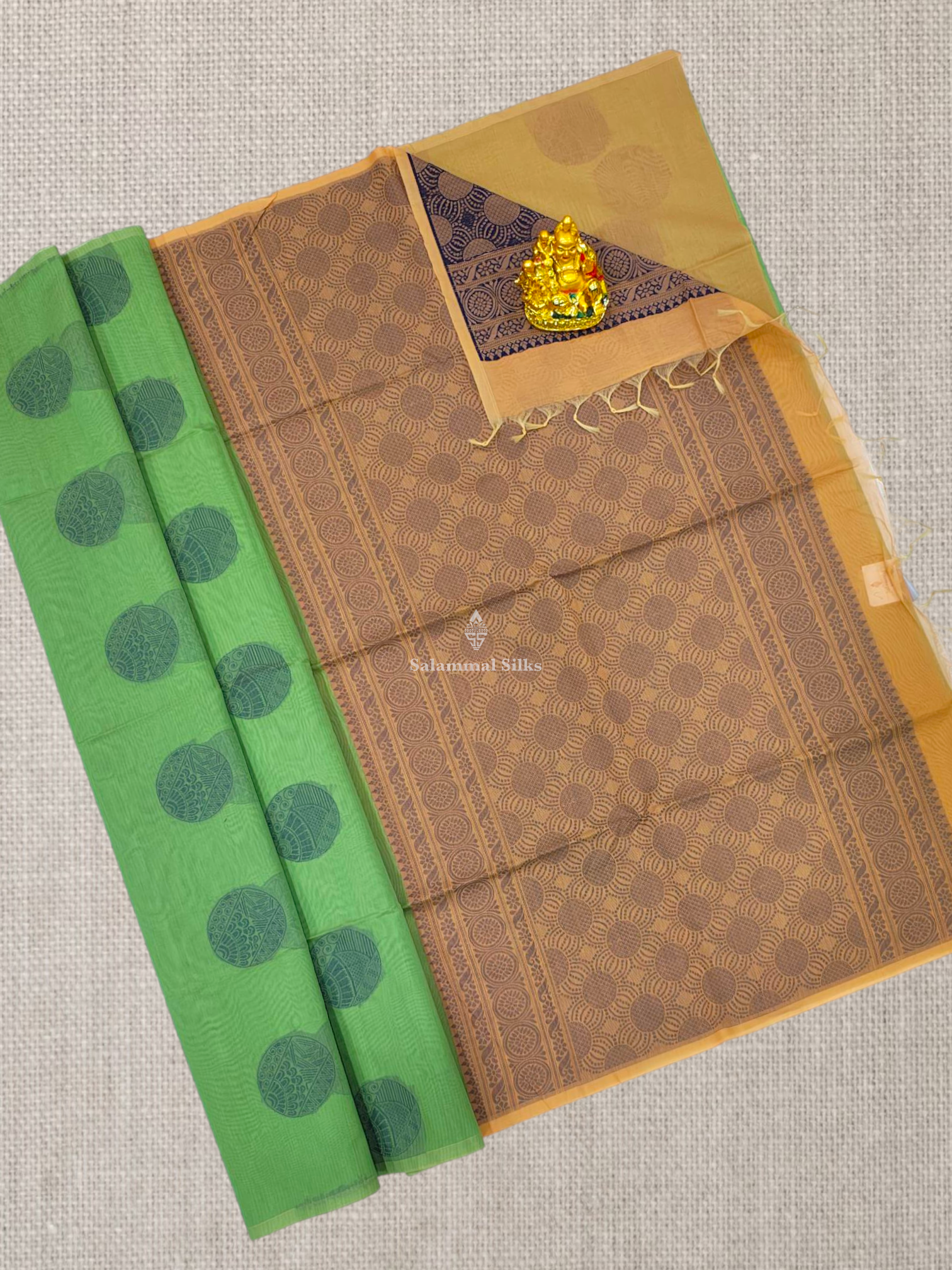 Light Green Beautiful Fancy Kora Cotton Saree With Blouse