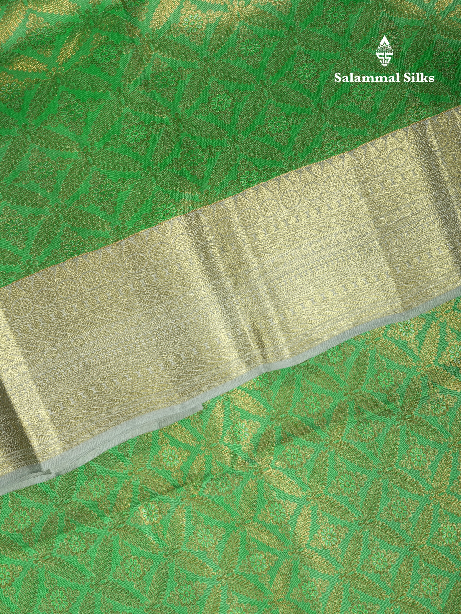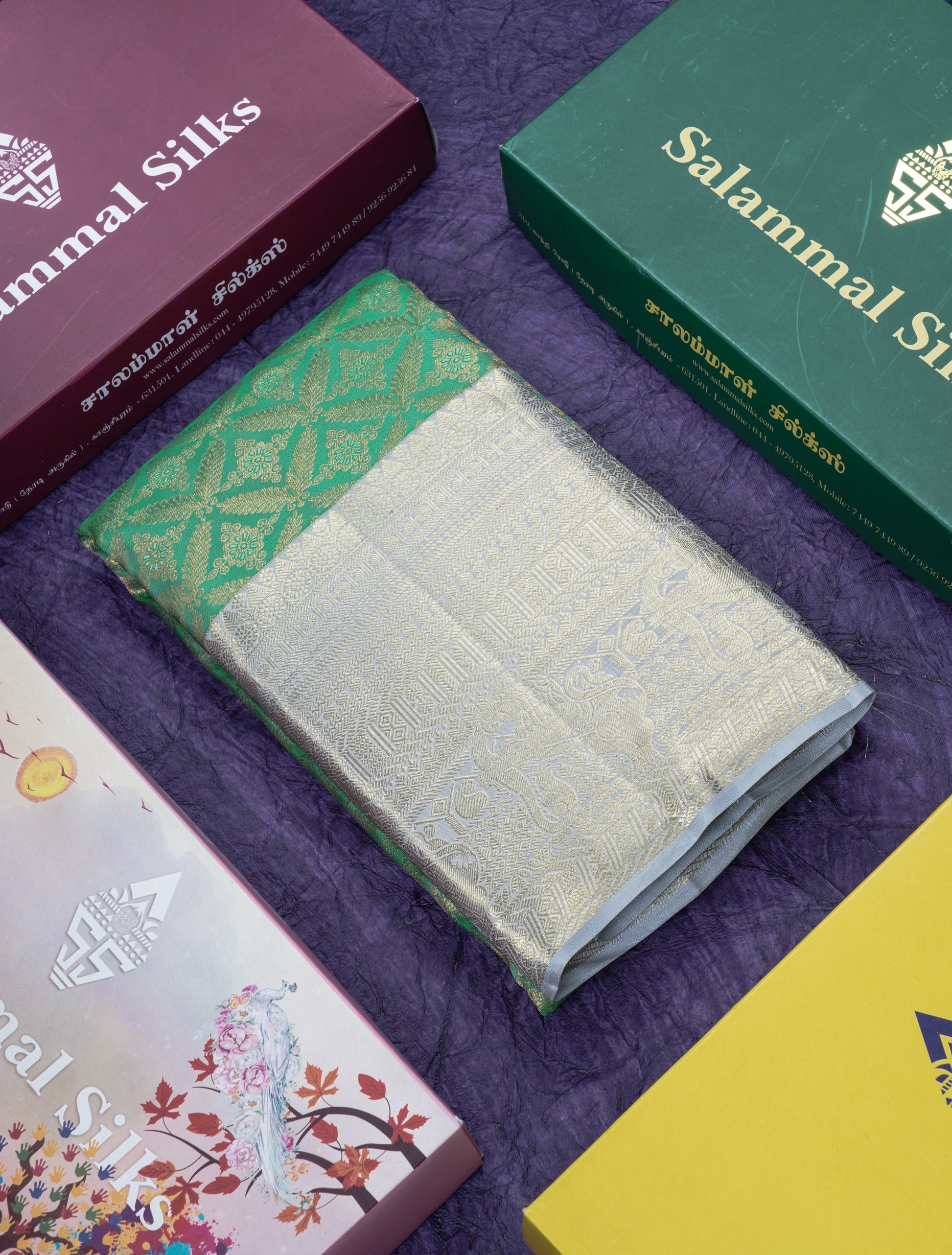 Light Green Bridal Pure Kanjivaram Silk Saree With Contrast Grey Border
