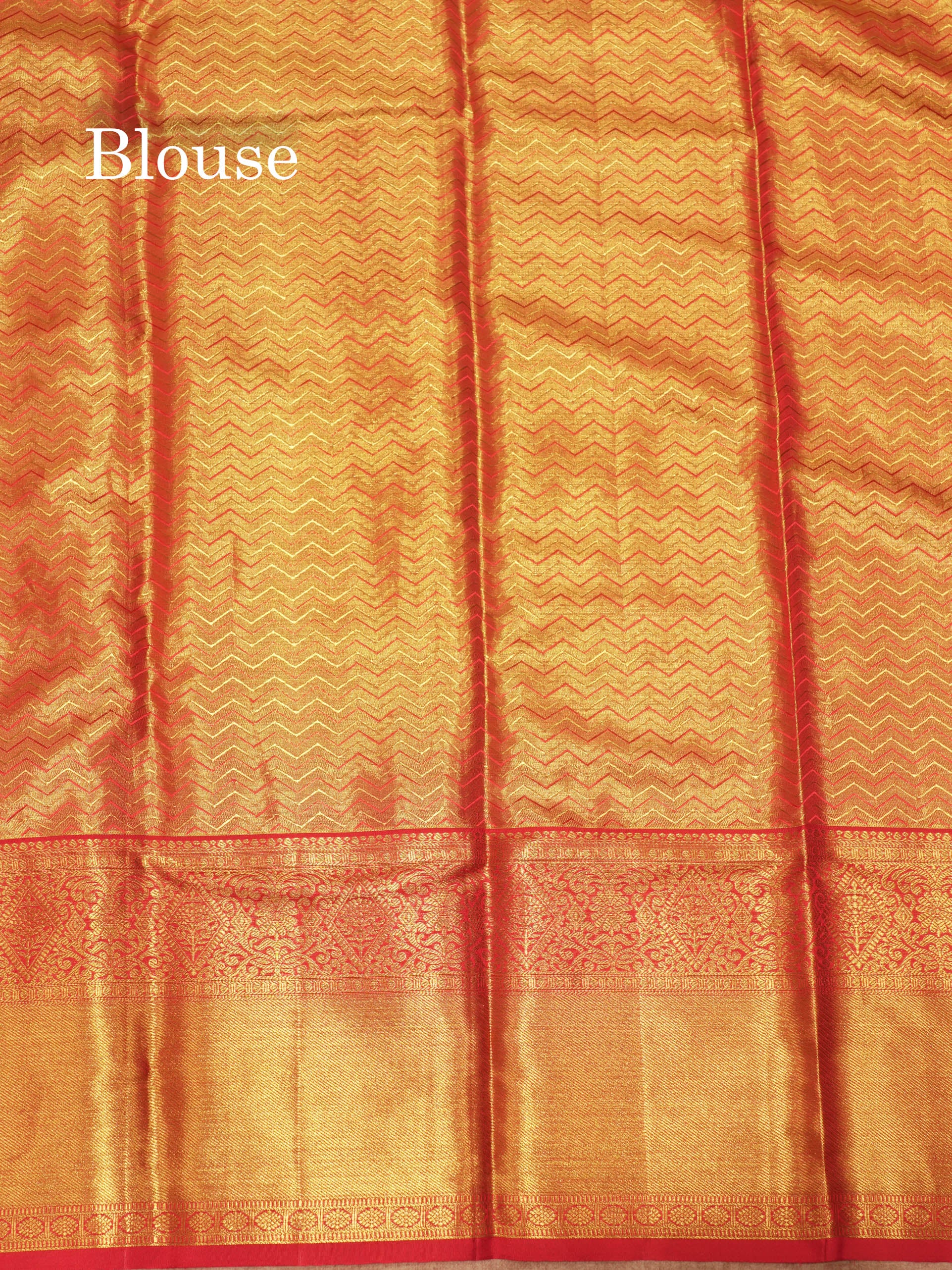 Meenakari work Light Lavender Colour Pure Kanjivaram Tissue Silk Saree With Contrast Red Border