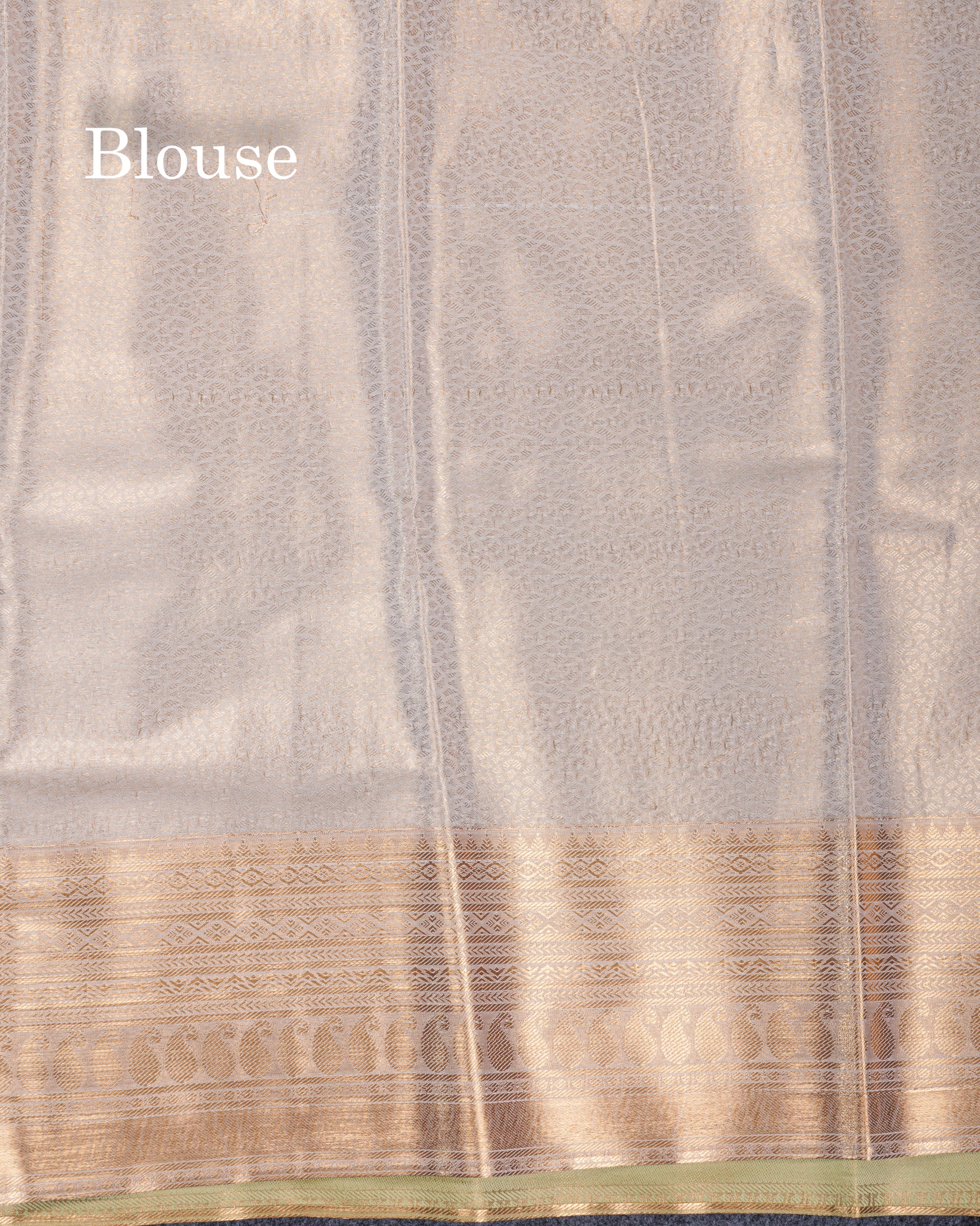 Light Parrot Green Tissue Bridal Semi Silk Saree With Traditional Border