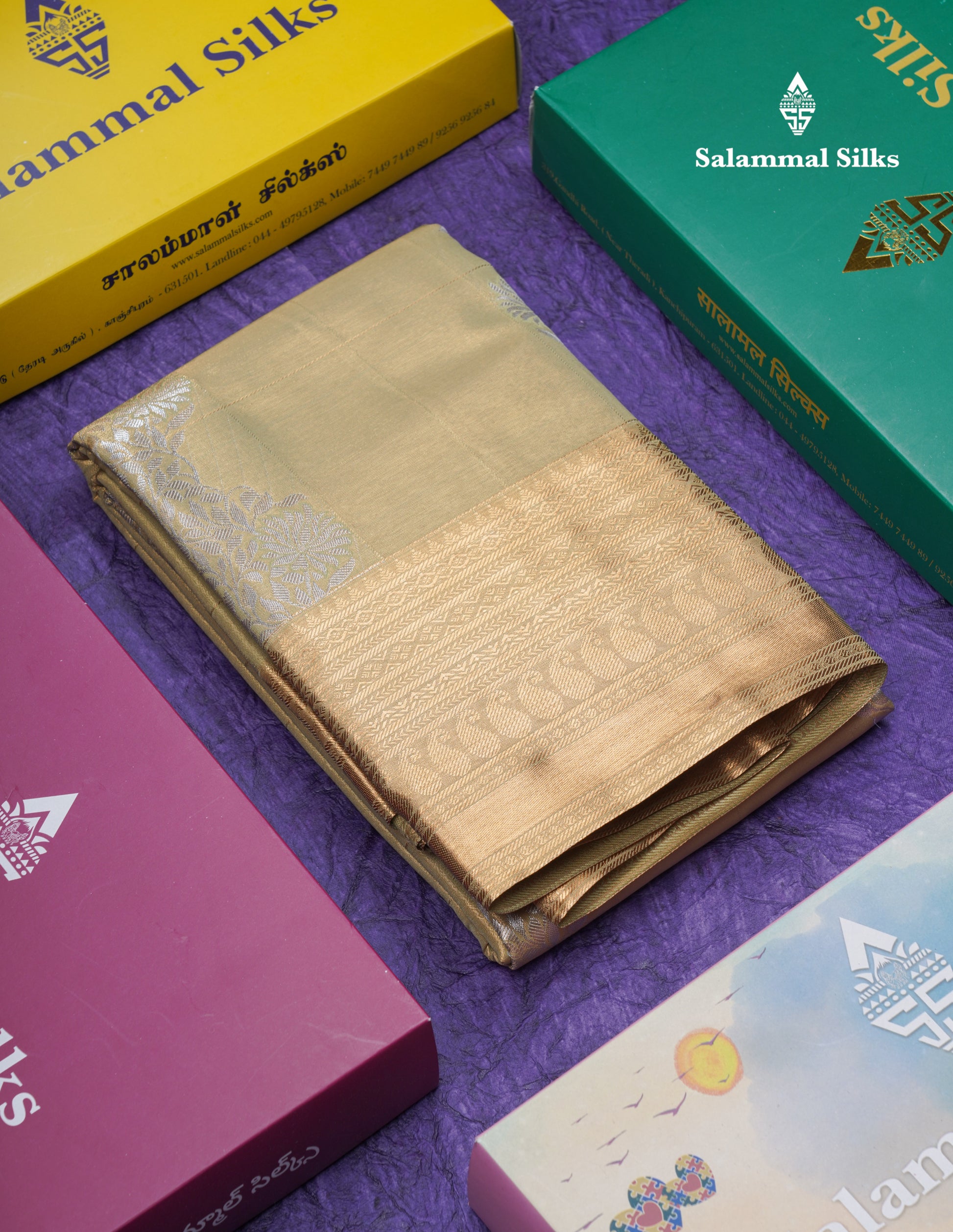 Salammal is known for its handloom sarees. In some sarees, there is cross-weaving between the body and the pallu, which is a sign of pure handloom sarees. This can be seen in Kanchipuram embossed sarees.